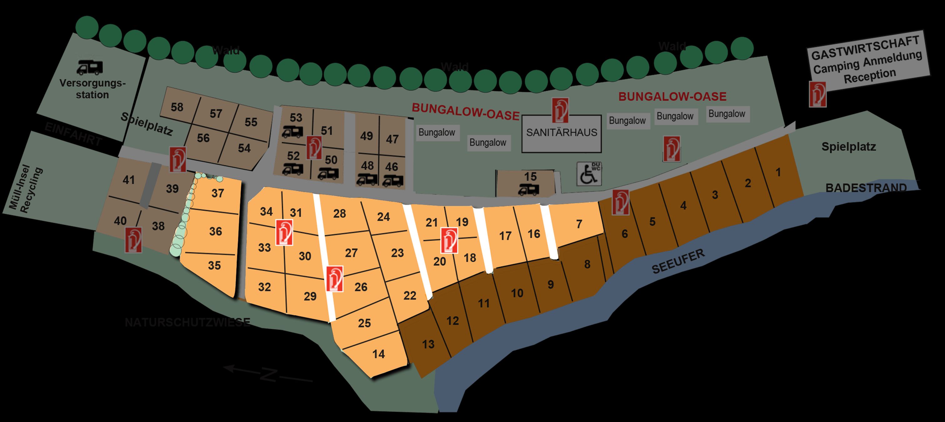 Alle Komfortplätze haben Strom- und Wasseranschluss direkt am Platz.