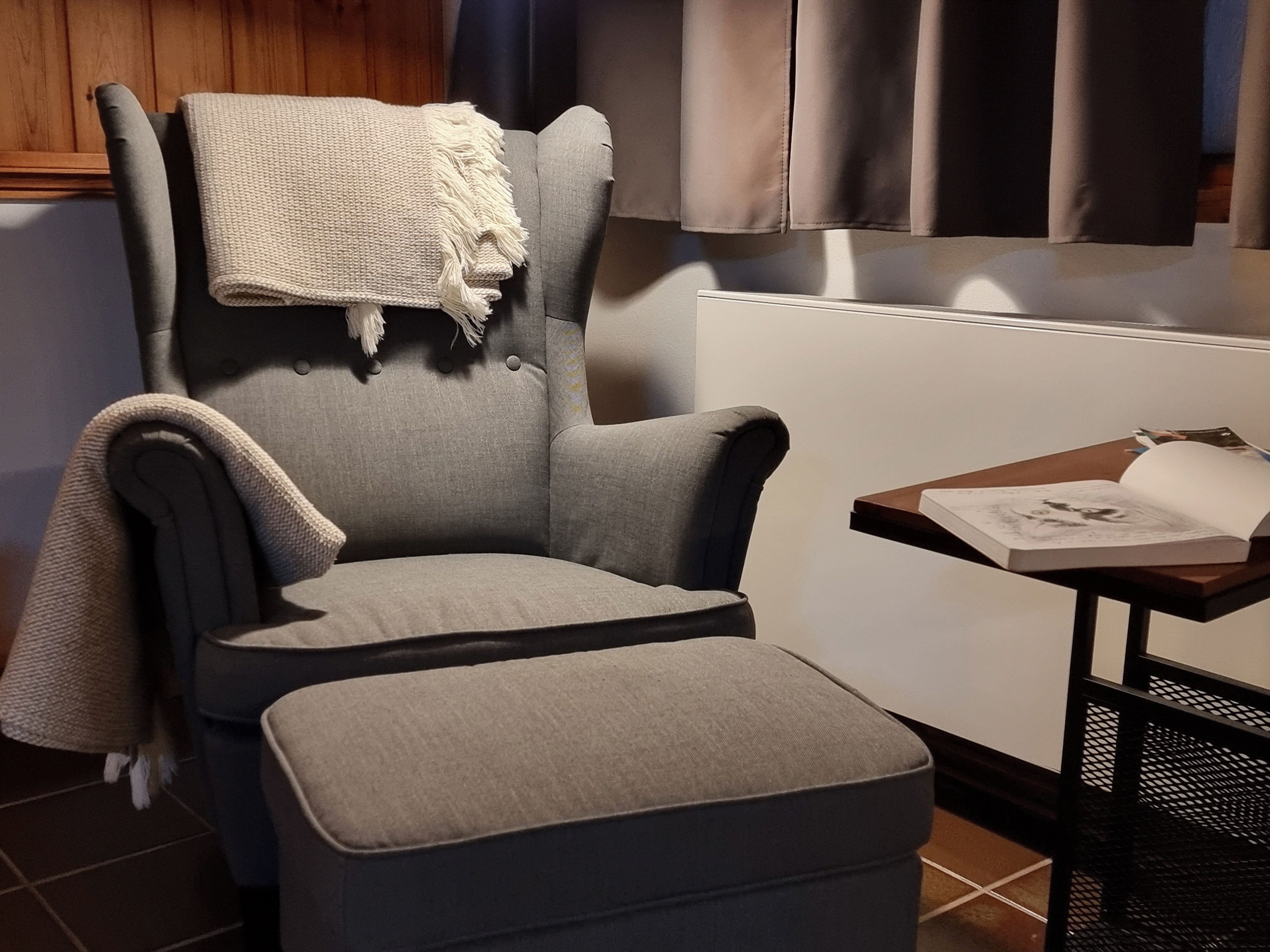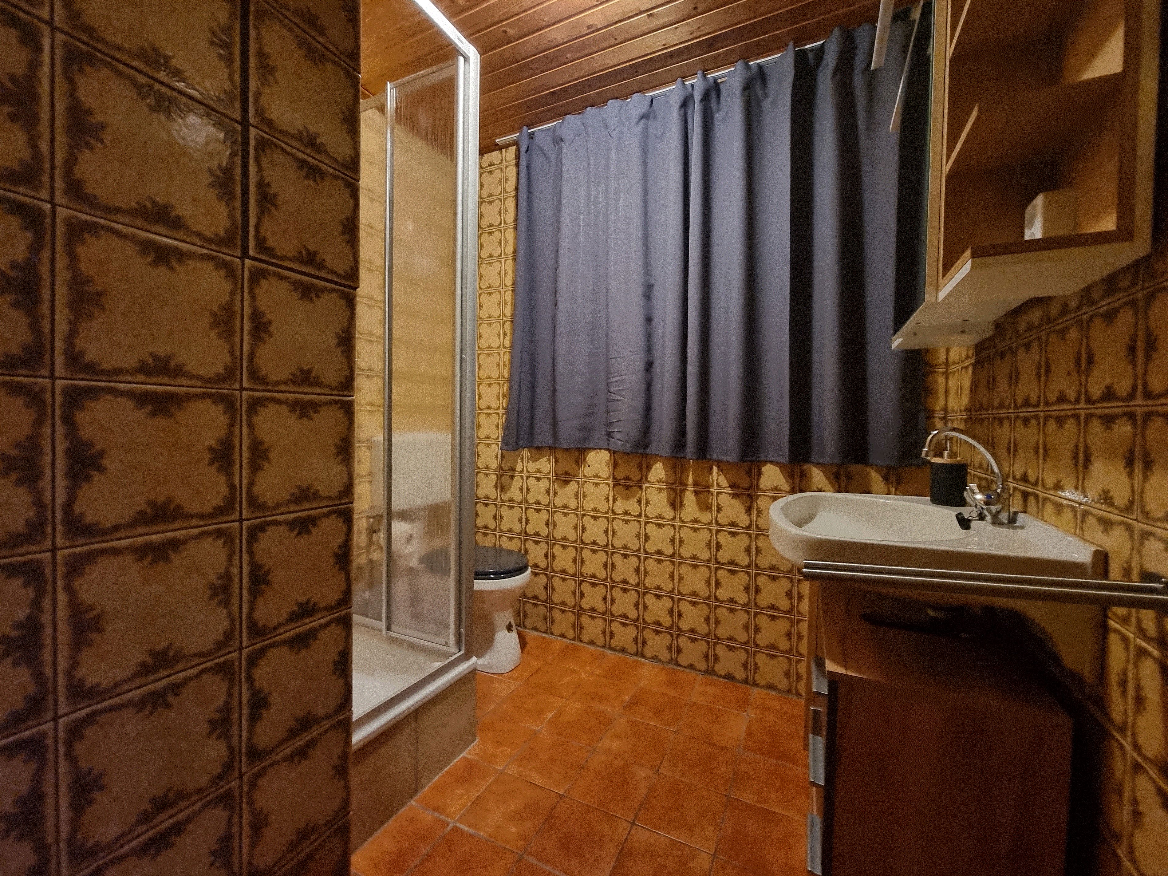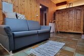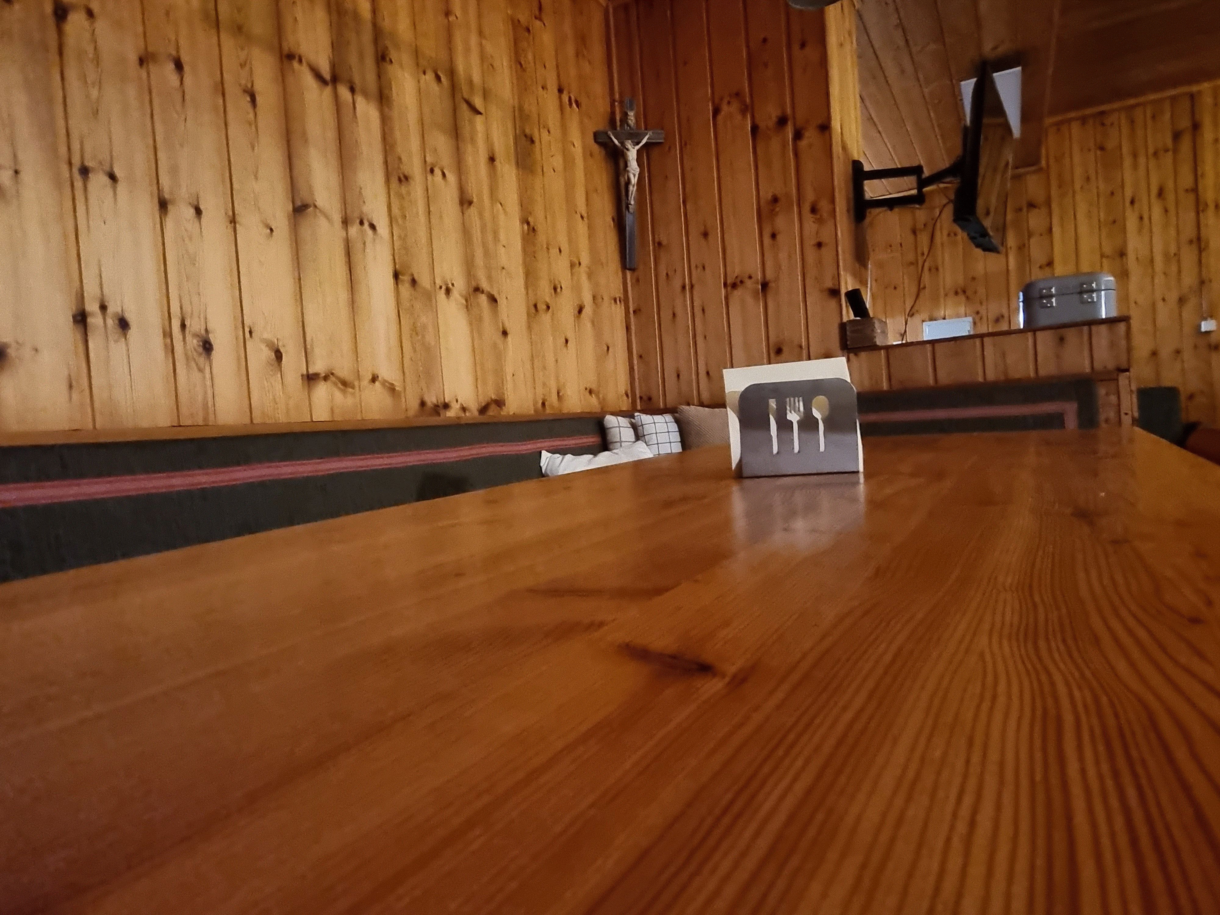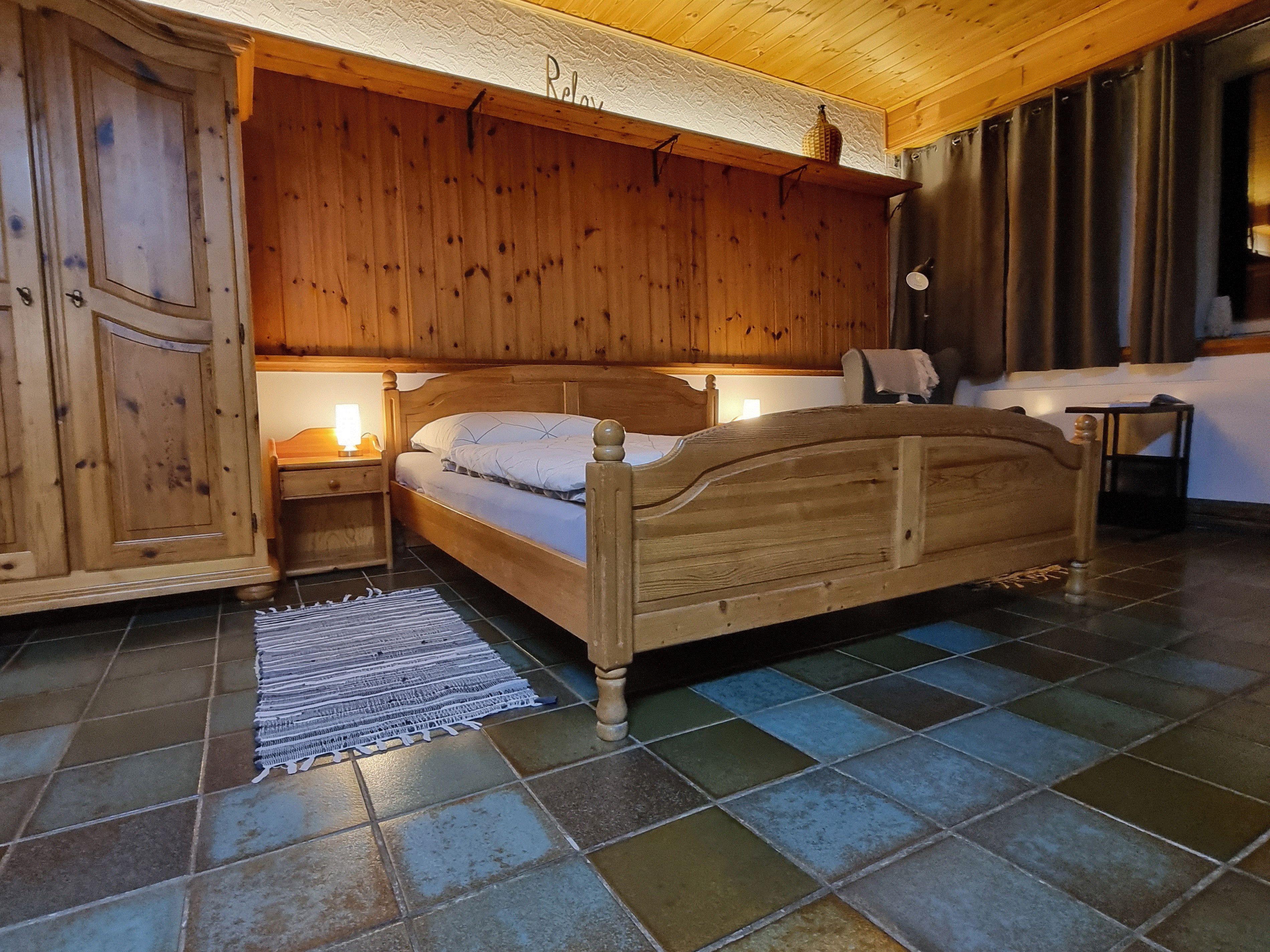 Die Ferienwohnung befindet sich in einem ehemaligen Wirtshaus. Im großen Wirtsraum stehen ein Doppelbett, eine Lederschlafcouch, ein Lesesessel und der alte Stammtisch. Gemütlich und urig, so ist der Raum immer noch, nur findet man nun auch eine moderne Küche und ein neu ausgestattetes Bad vor. Einen Fernseher, einen geräumigen Schrank und einen großzügigen Essbereich gibt es auch. Die Wohnung besitzt eine eigene Terrasse im Grünen. Die Ausstattung ist etwas einfacher gehalten, was sich im günstigen Preis widerspiegelt.