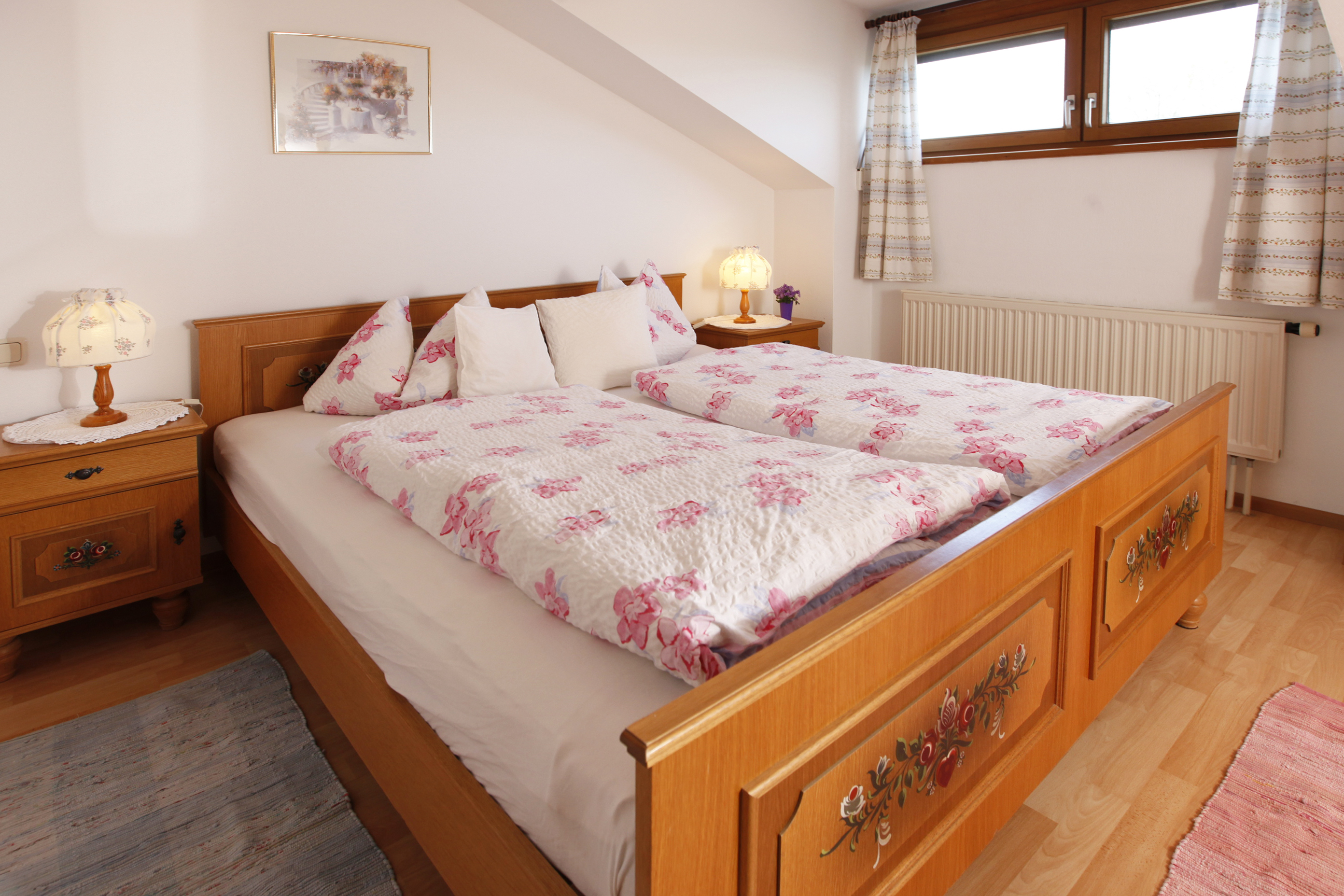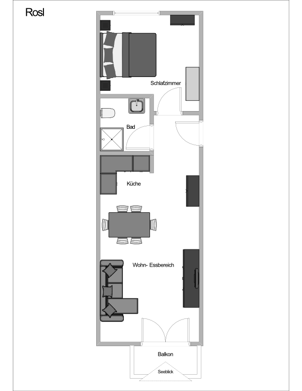 Beschreibung: Bayrisch eingerichtete Ferienwohnung mit ca. 45 qm, 2. Stock, für 2 -3 Personen, großer Balkon zur Südseite mit See- und Bergblick, großzügig ausgestattete Küche mit angrenzendem Wohn-/Essbereich. Badezimmer mit Dusche/WC. Schlafzimmer mit Doppelbett. Die räumliche Aufteilung der Ferienwohnung können Sie dem Grundriss entnehmen.