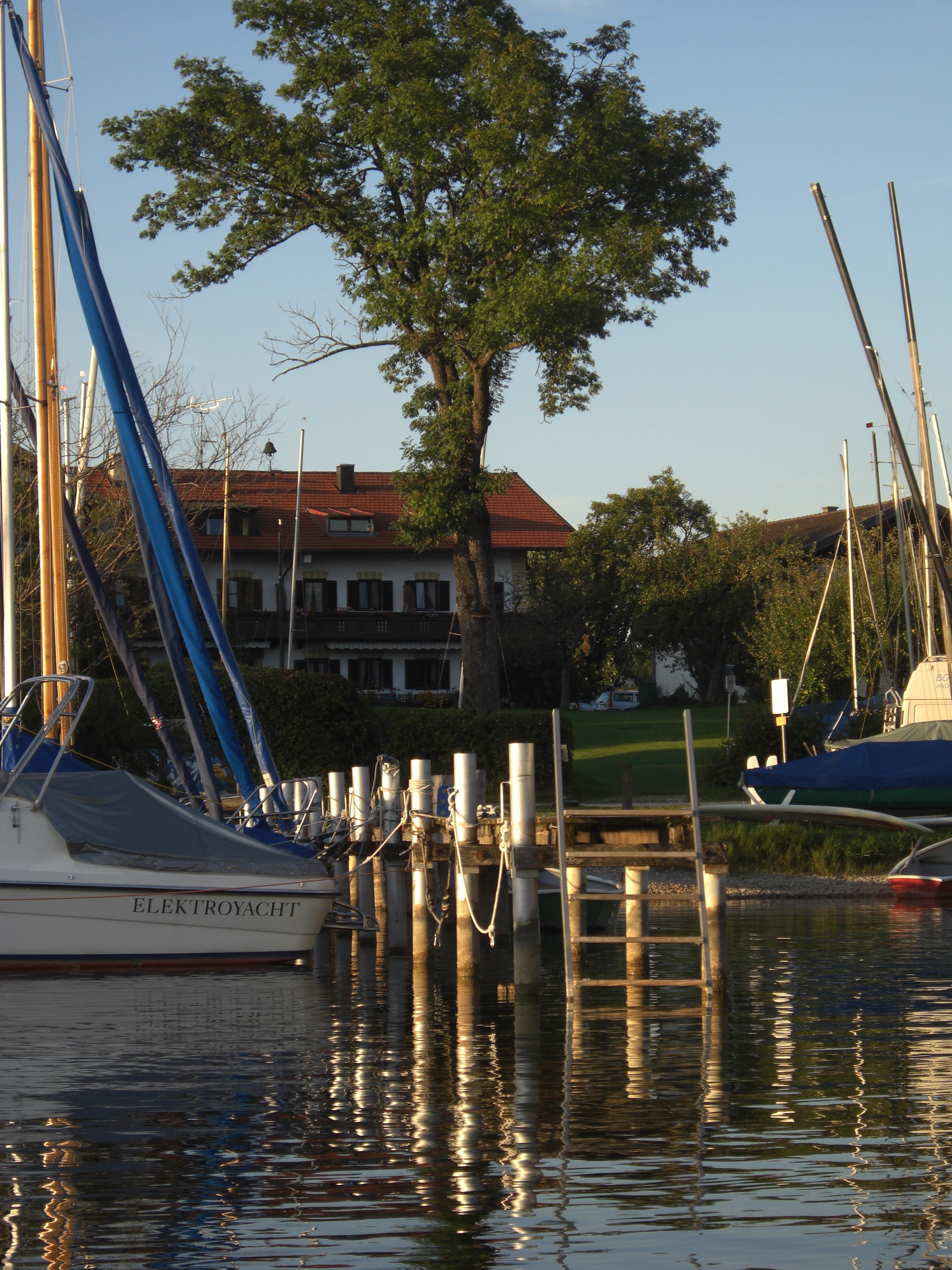 Idyllisch gelegen am Chiemsee Nordufer mit See- und Bergpanorama. Große Liegewiese mit schattenspendenden Bäumen und direktem Seezugang. Hauseigener Boots- und Badesteg. Auf Anfrage Landliegeplätze für slipbare Schiffe während des Aufenthalts.
