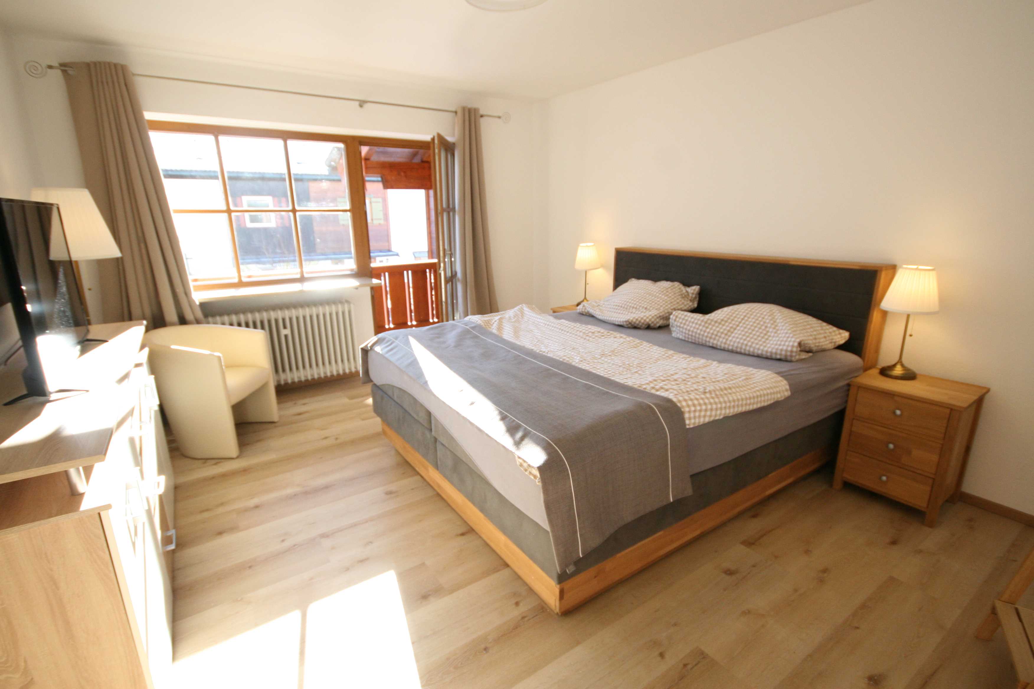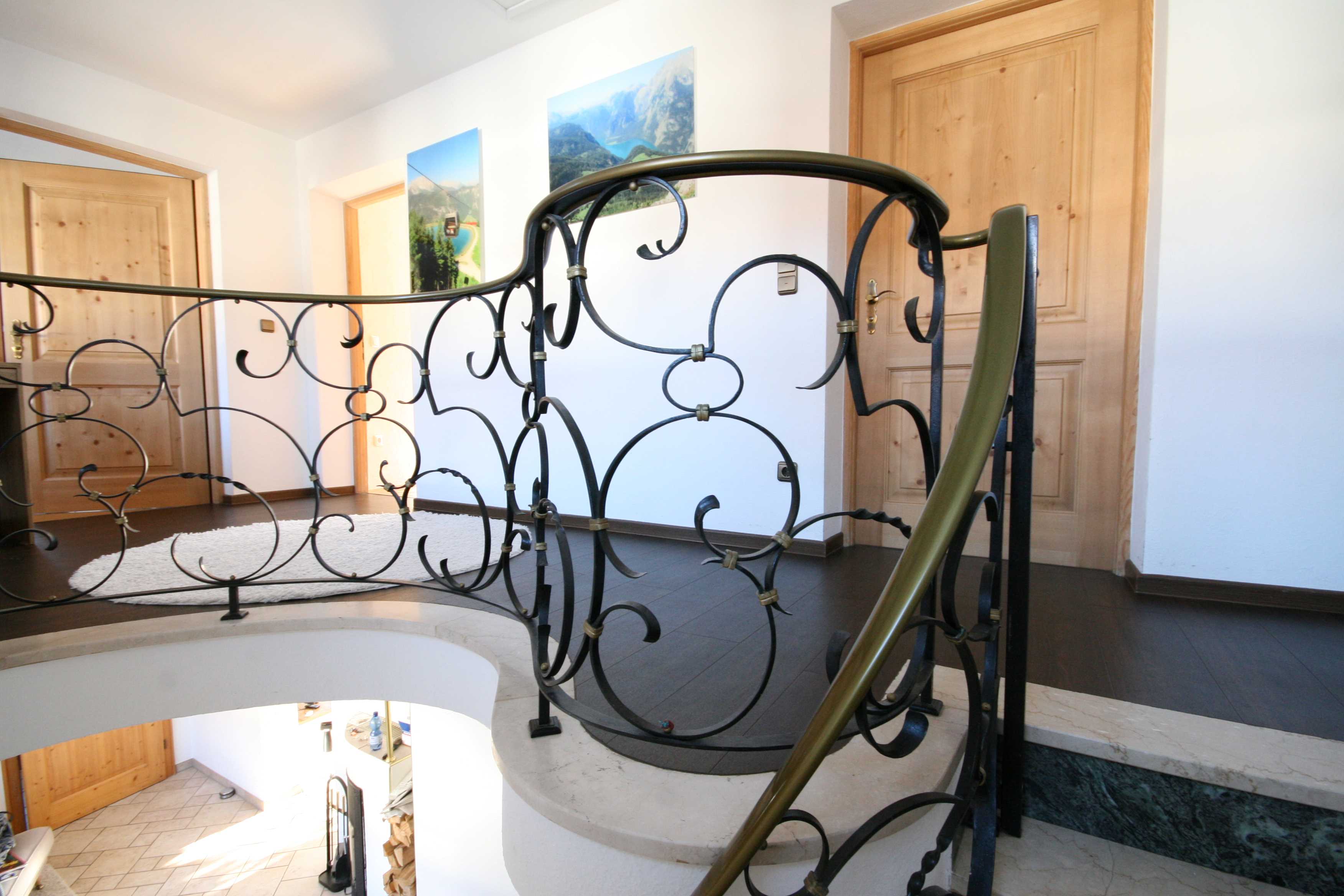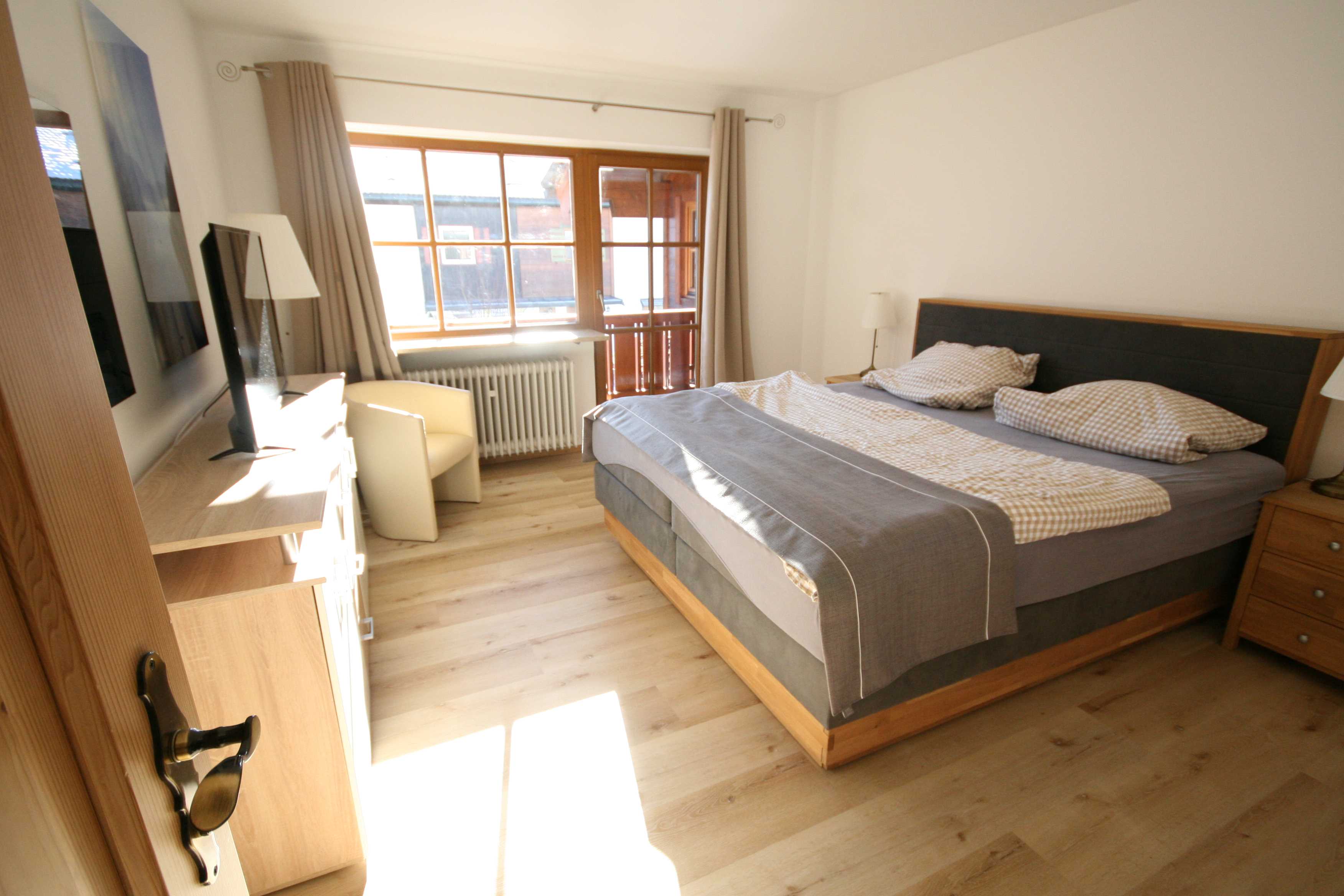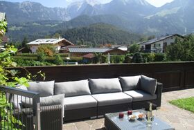 Drei von vier Schlafzimmern sind mit hochwertigen Boxspringbetten ausgestattet, sämtliche Schlafräume verfügen über Balkonzugang. Im Erdgeschoss führt über den Wohn- und Essbereich ein Zugang zu der großen Sonnenterrasse mit Blick auf das Bergpanorama Kehlstein/ Jenner/ Hohes Brett/ Hoher Göll. Im Sommer lädt eine große Loungegarnitur und Sitz- sowie Essmöbel zum Verweilen und Grillen ein. Eine Sonnenmarkise- und Schirm sorgen für genug Beschattung.