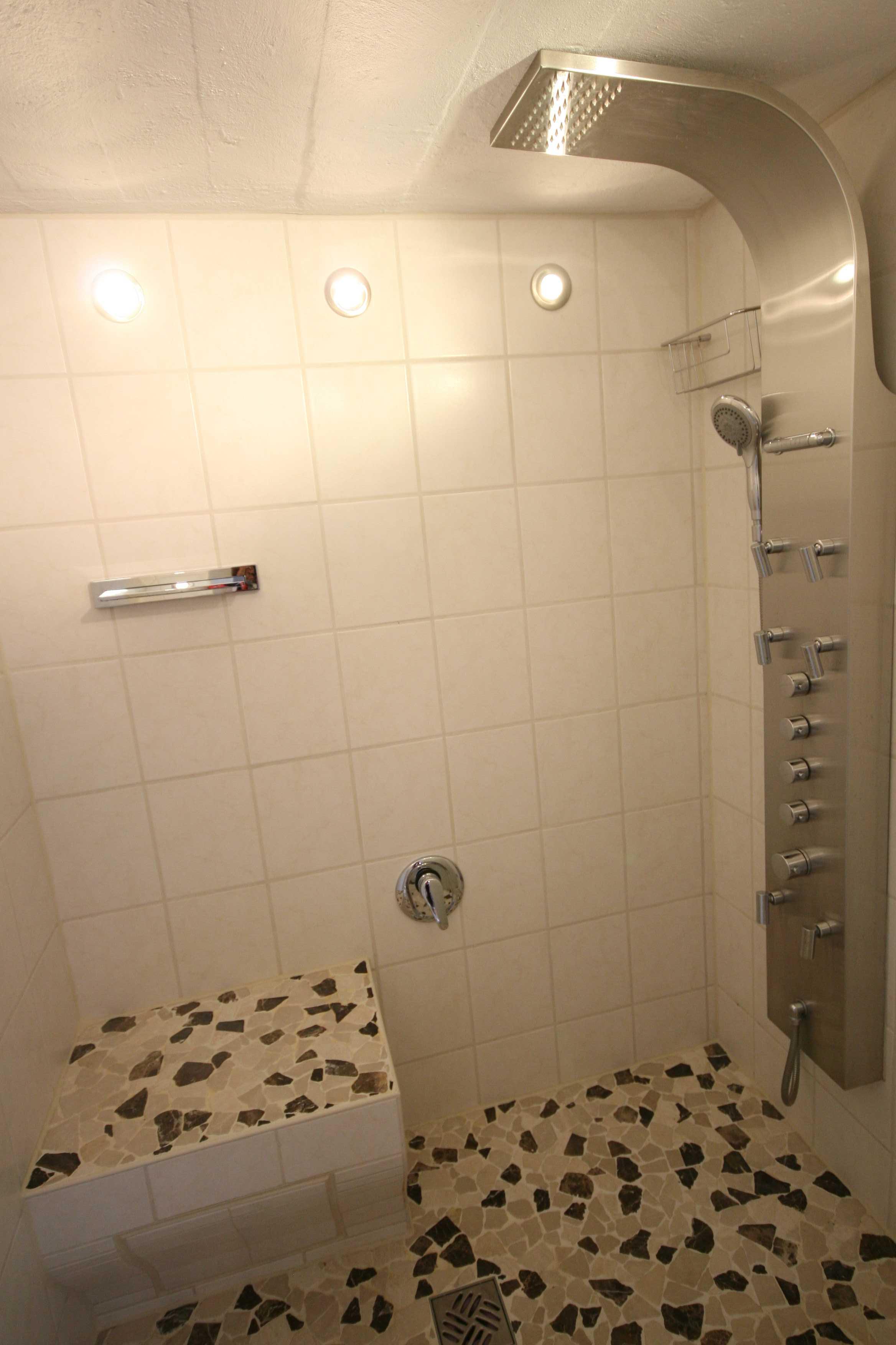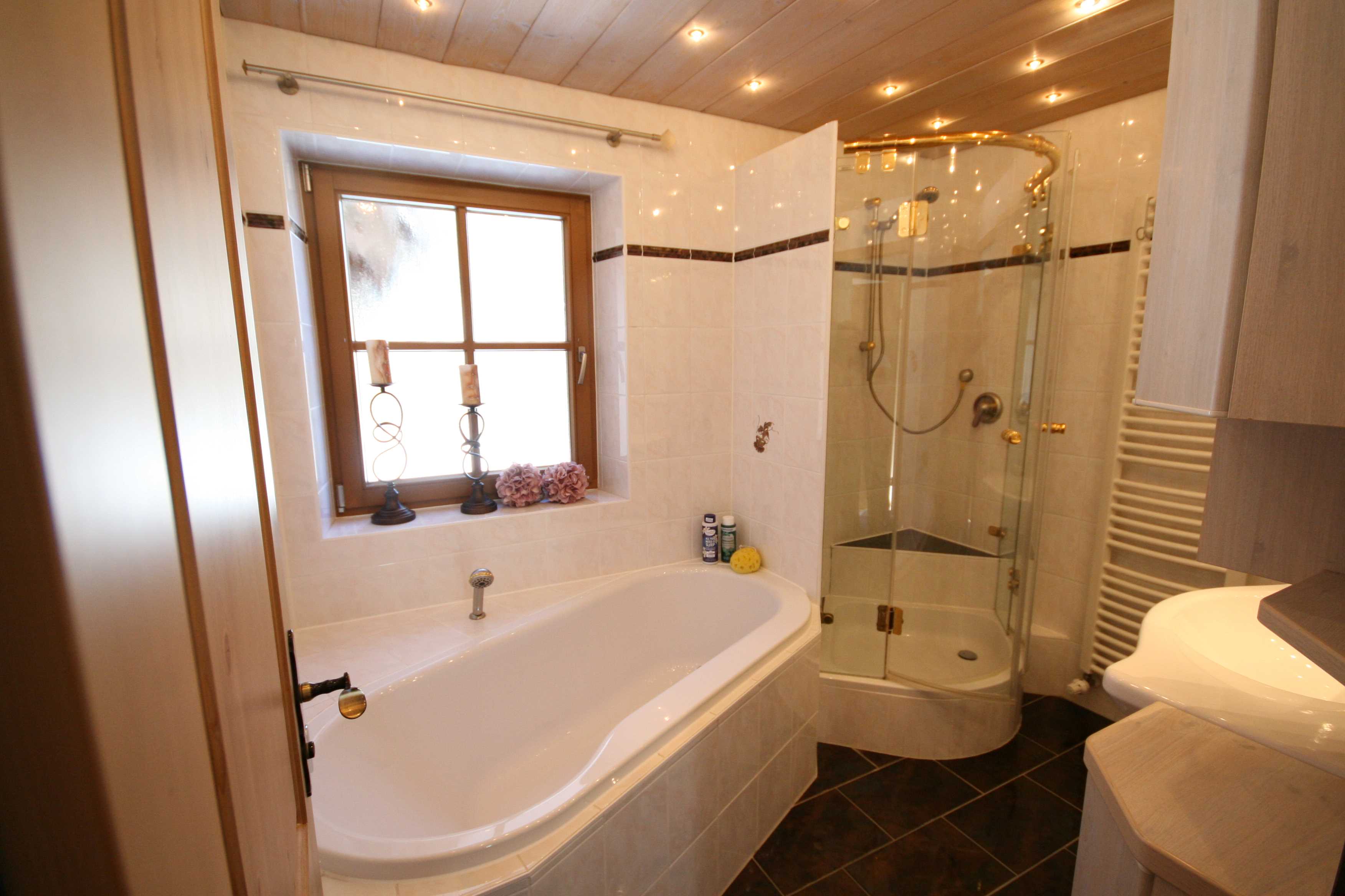Die Alpenoase verfügt über einen großzügigen Sauna- und Ruhebereich mit Schwalldusche und Tageslichtfenster.