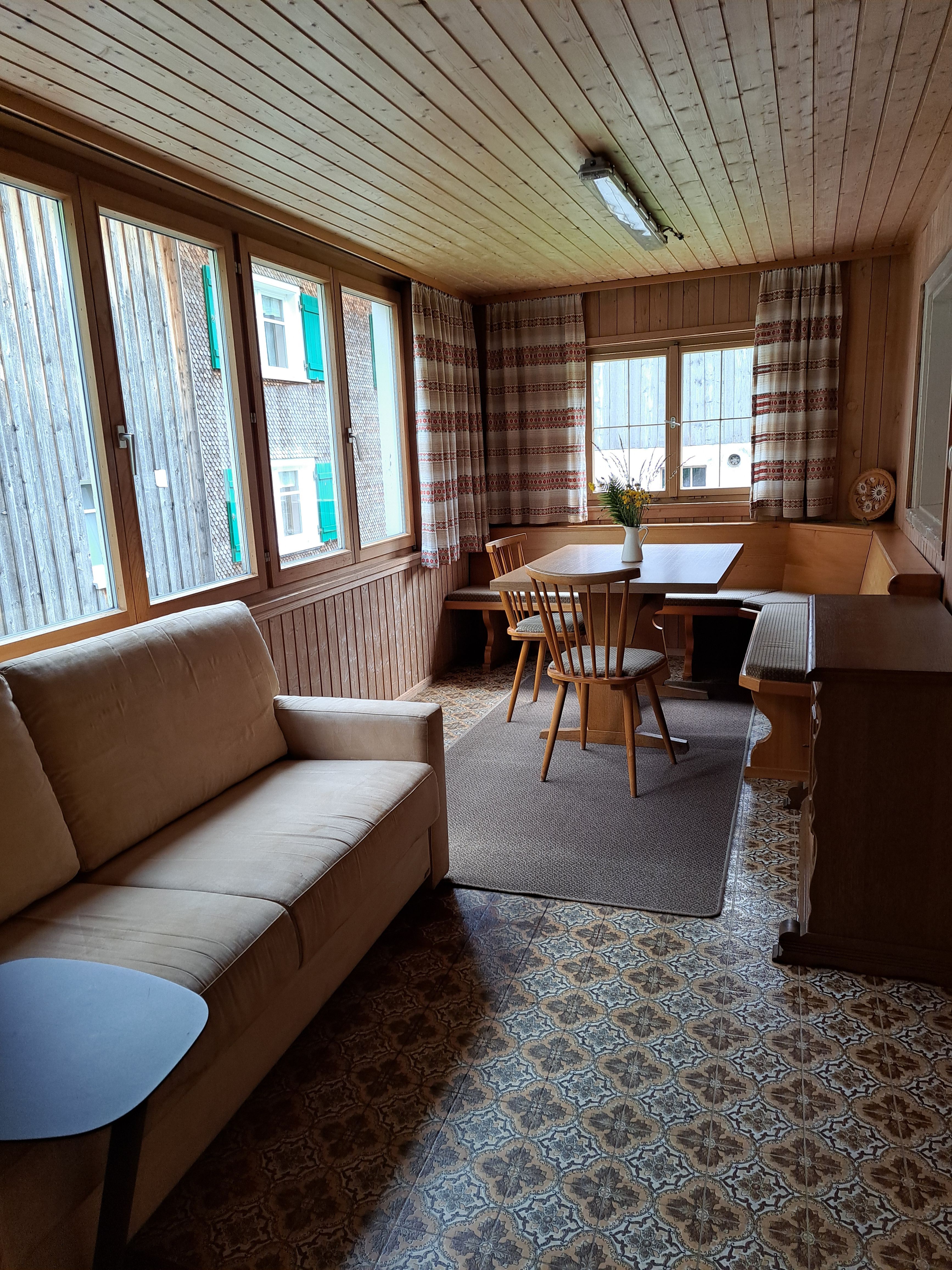 Genießt den rustikalen Charme eines traditionellen Bregenzerwälderhauses kombiniert mit zeitgemäßer Ausstattung: zwei Badezimmer, TV, WLAN und viel Platz zum Entspannen.