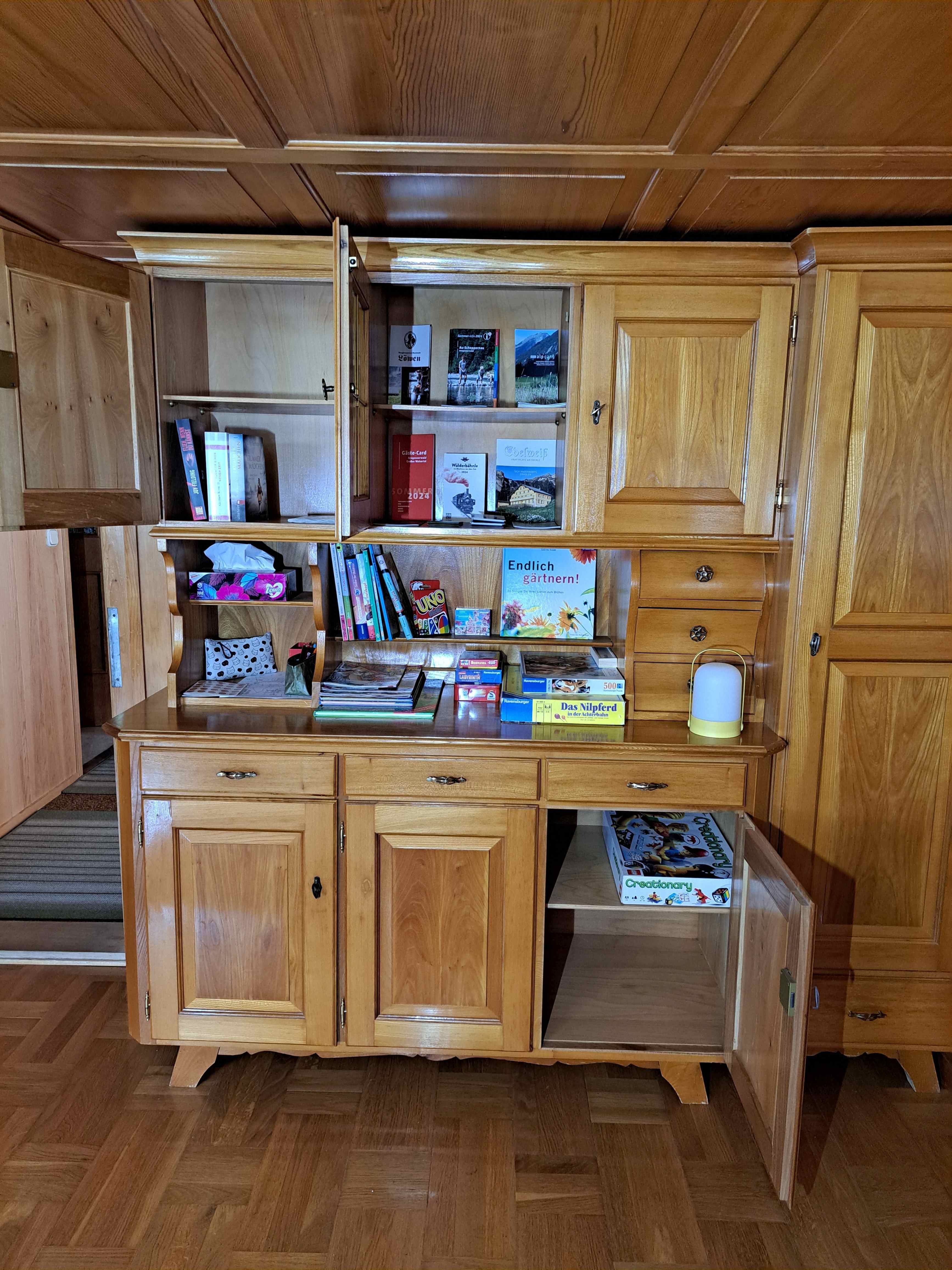Für Unterhaltung ist gesorgt: Brettspiele, Bücher und Zeitschriften für Groß & Klein warten auf euch für entspannte Stunden im Haus.