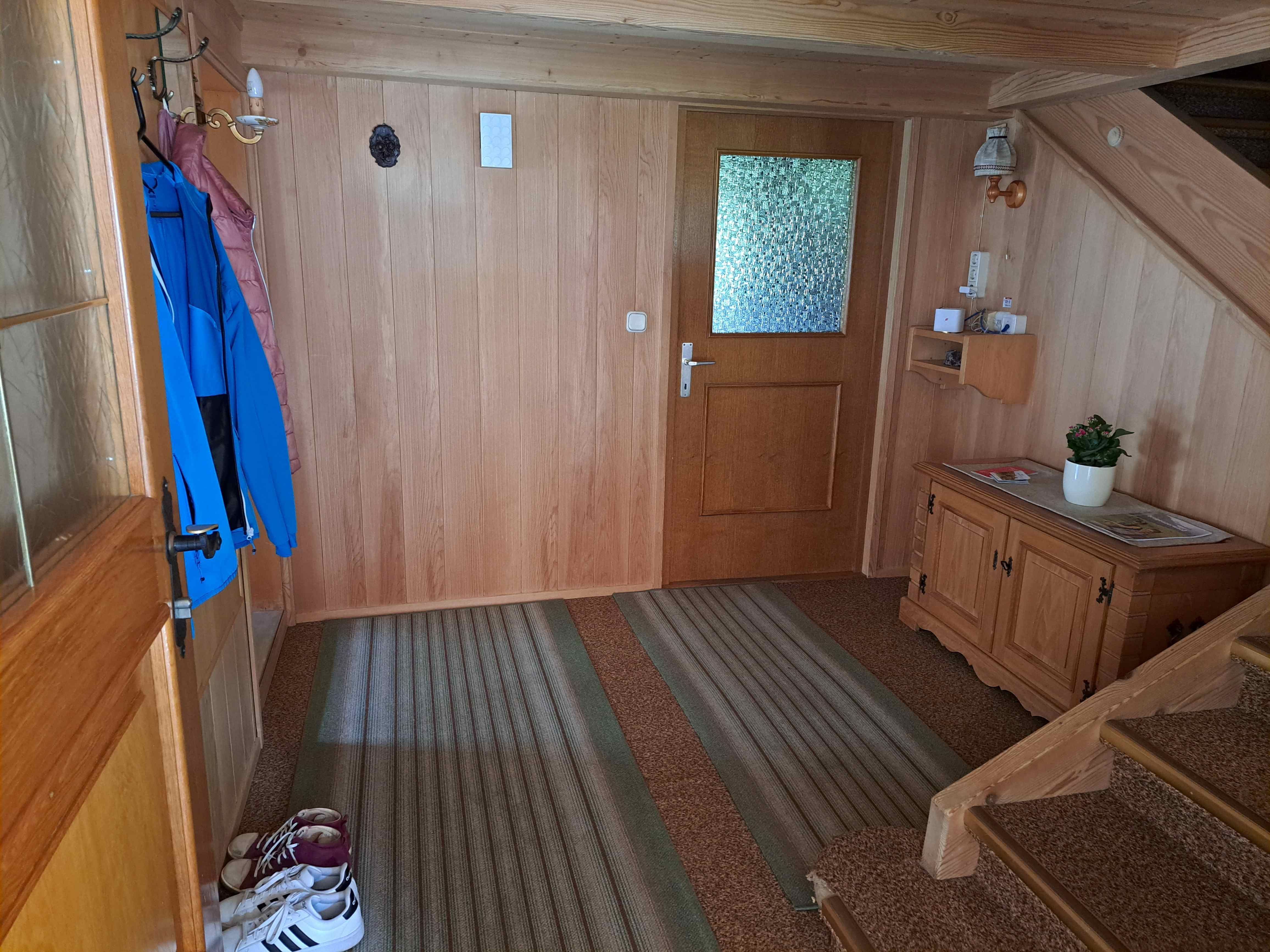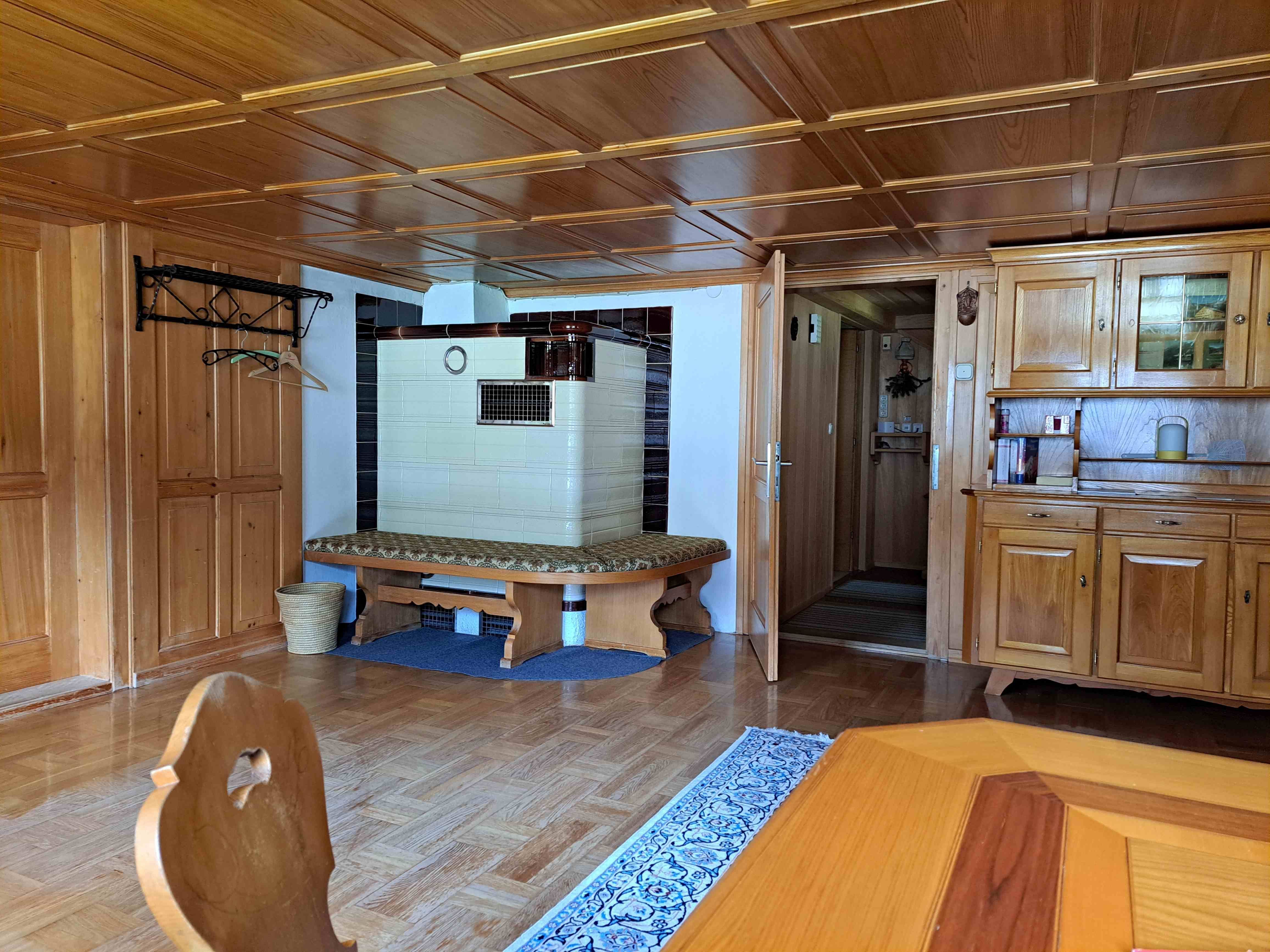 Das Haus verfügt über fünf Schlafzimmer, zwei Badezimmer und ein gemütliches Wohnzimmer mit traditionellem Kachelofen. In jedem Schlafzimmer sorgt ein eigener Elektro-Ofen für wohlige Wärme.