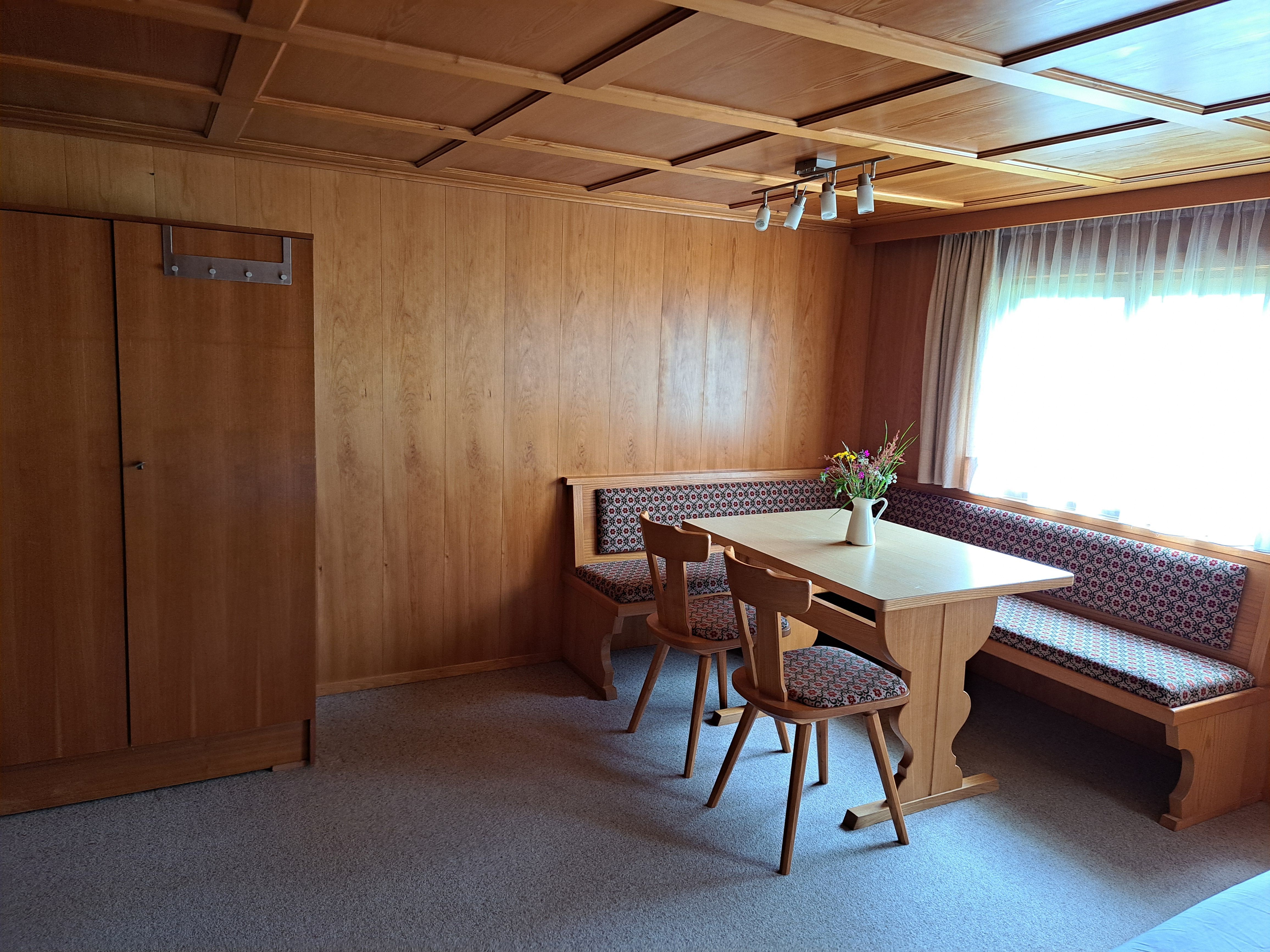 Unser liebevoll erhaltenes Holzhaus bietet Platz für bis zu 9 Personen und ist ideal für Familien oder Gruppen, die eine authentische alpine Atmosphäre mit modernem Komfort suchen.