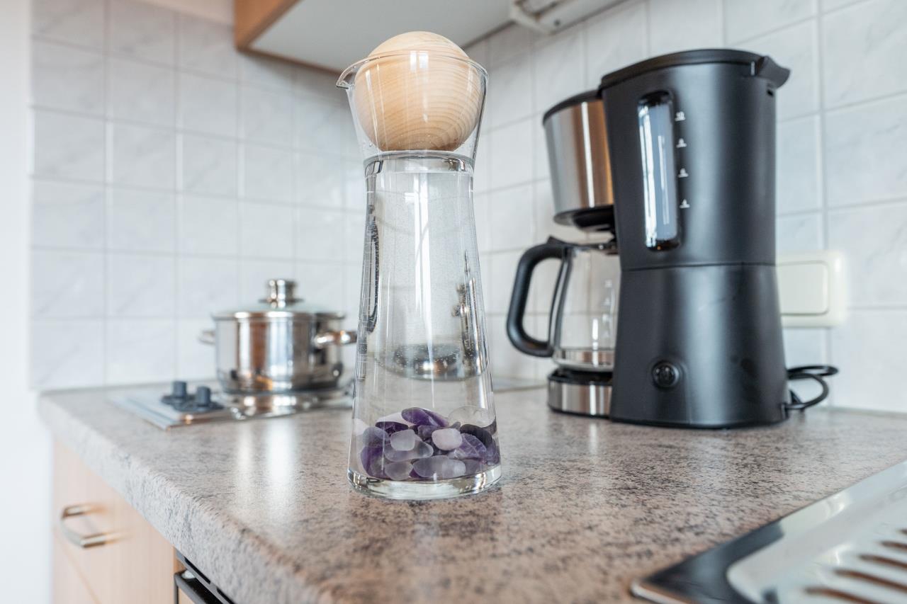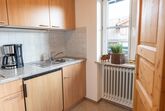 2-Raum Ferienwohnung im 1. Obergeschoss, für 2 Personen, Süd-Ost-Balkon, Du/WC, sep. Küche (2-Platten-Herd, Kaffemachine, Toaster, Wasserkocher), sep. Schlafzimmer mit Doppelbett, Wohnzimmer mit ausziehb. Schlafcouch und Essgelegenheit, Zimmersafe, Flachbild TV, WLAN, Sauna im Haus.