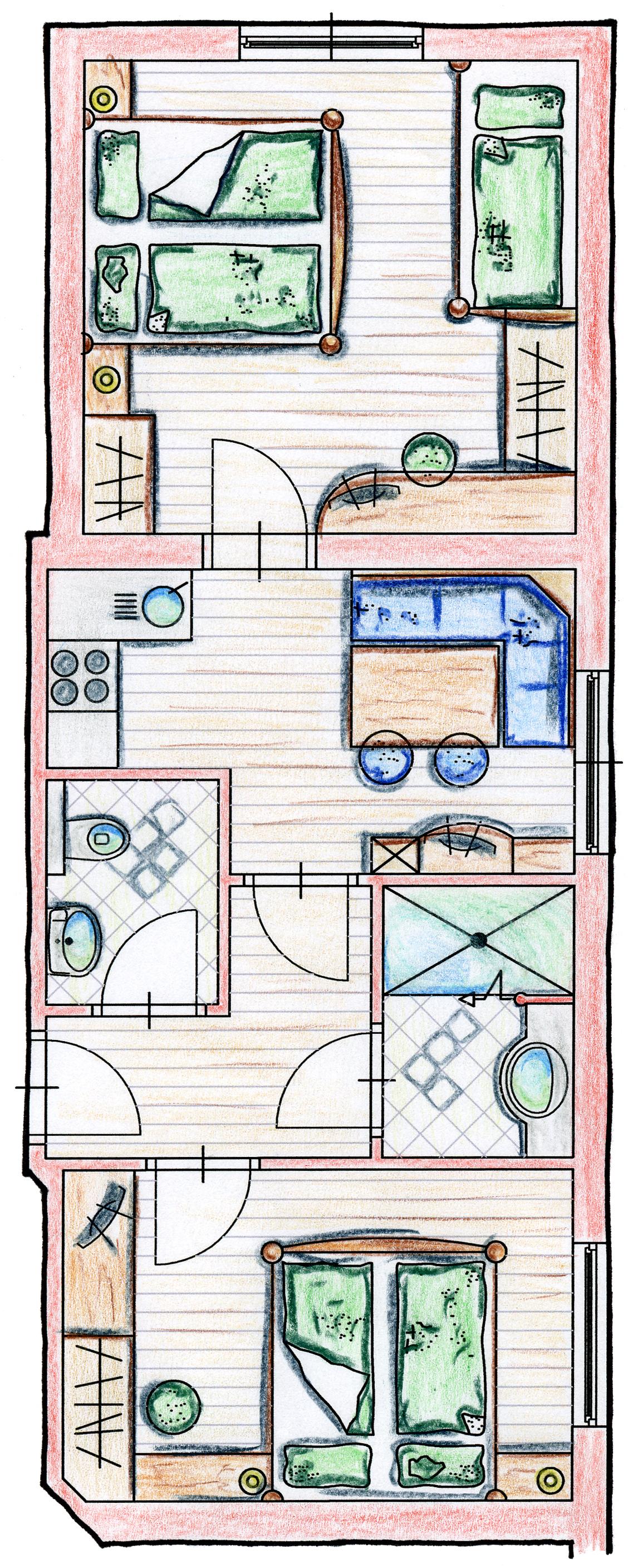 - Im Wellnessbereich: Sauna, Dampfbad, Infrarotkabine, Dusche, Ruhebereich