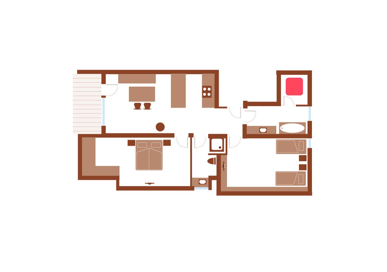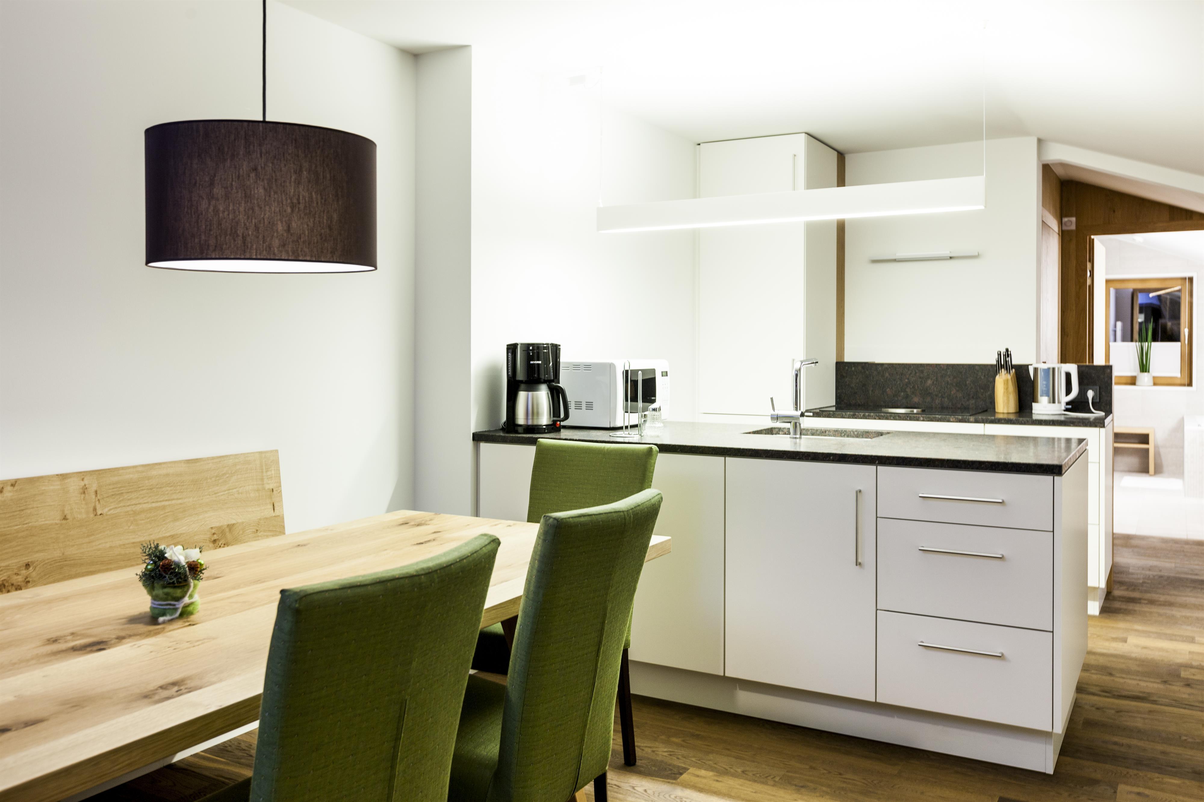 Hier ist der Name Programm:Unser etwas kleineres Appartement mit einem Doppelschlafzimmer und einem Kinderschlafzimmer, mit Dachschräge, ist ideal für Familien. Auch hier steht eine großzügige Wohnküche im Zentrum des Geschehens und bietet viel Platz für gemeinsames Speisen oder vergnügte Spielabende. Falls doch mehr Ruhe gewünscht wird, kann sich jeder in sein eigenes Zimmer zurückziehen.