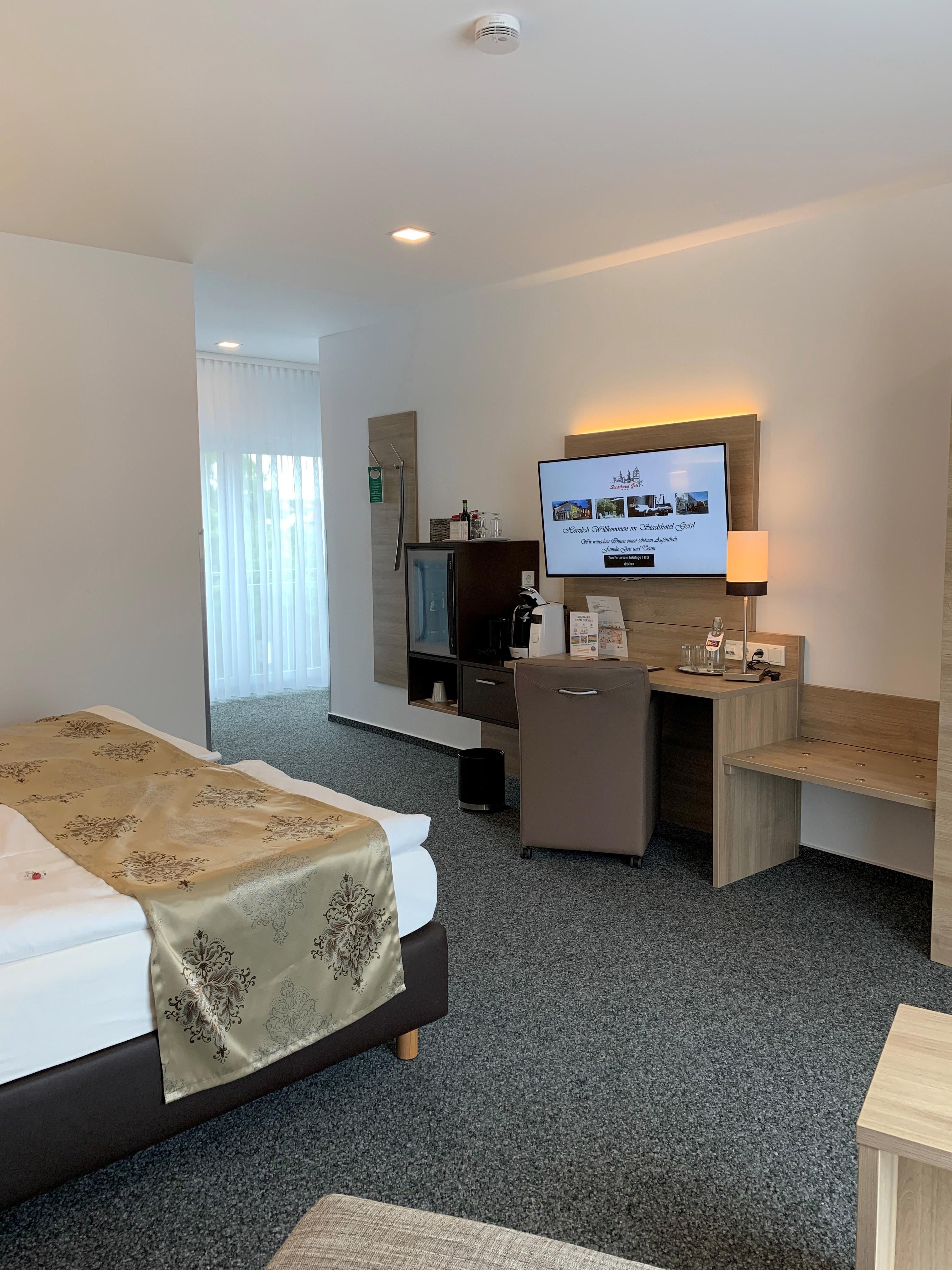 Sehr geehrter Gast, vielen Dank für Ihre Reservierung in unserem Haus! Falls Sie nach 18 Uhr anreisen, bitten wir Sie, uns unter unserer Hotelnummer zu kontaktieren. So können wir Ihnen bei einer eventuellen Spätanreise einen individuellen PIN-Code mitteilen, mit dem Sie Ihren Zimmerschlüssel erhalten. Des Weiteren freuen wir uns, Ihnen mitzuteilen, dass wir alle unsere Doppelzimmer mit Klimaanlagen ausgestattet haben, um Ihnen maximalen Komfort zu bieten. Wir wünschen Ihnen eine angenehme Anreise und freuen uns sehr, Sie bald herzlich in unserem Haus willkommen zu heißen. Ihr Stadthotel Geis