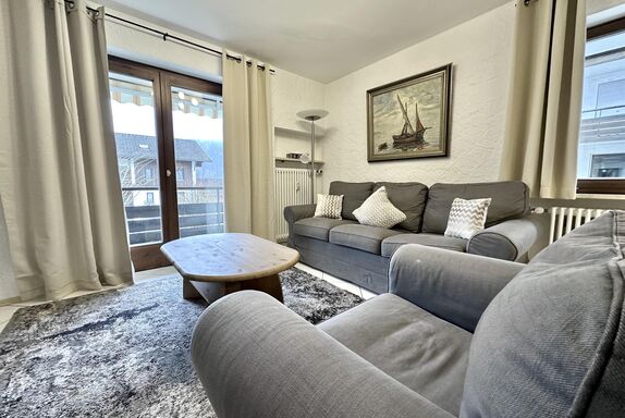 Vom Balkon und aus dem Wohnzimmer hat man einen wunderschönen Blick Richtung Imberger Horn und Hintersteiner Tal.