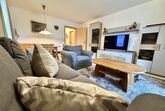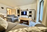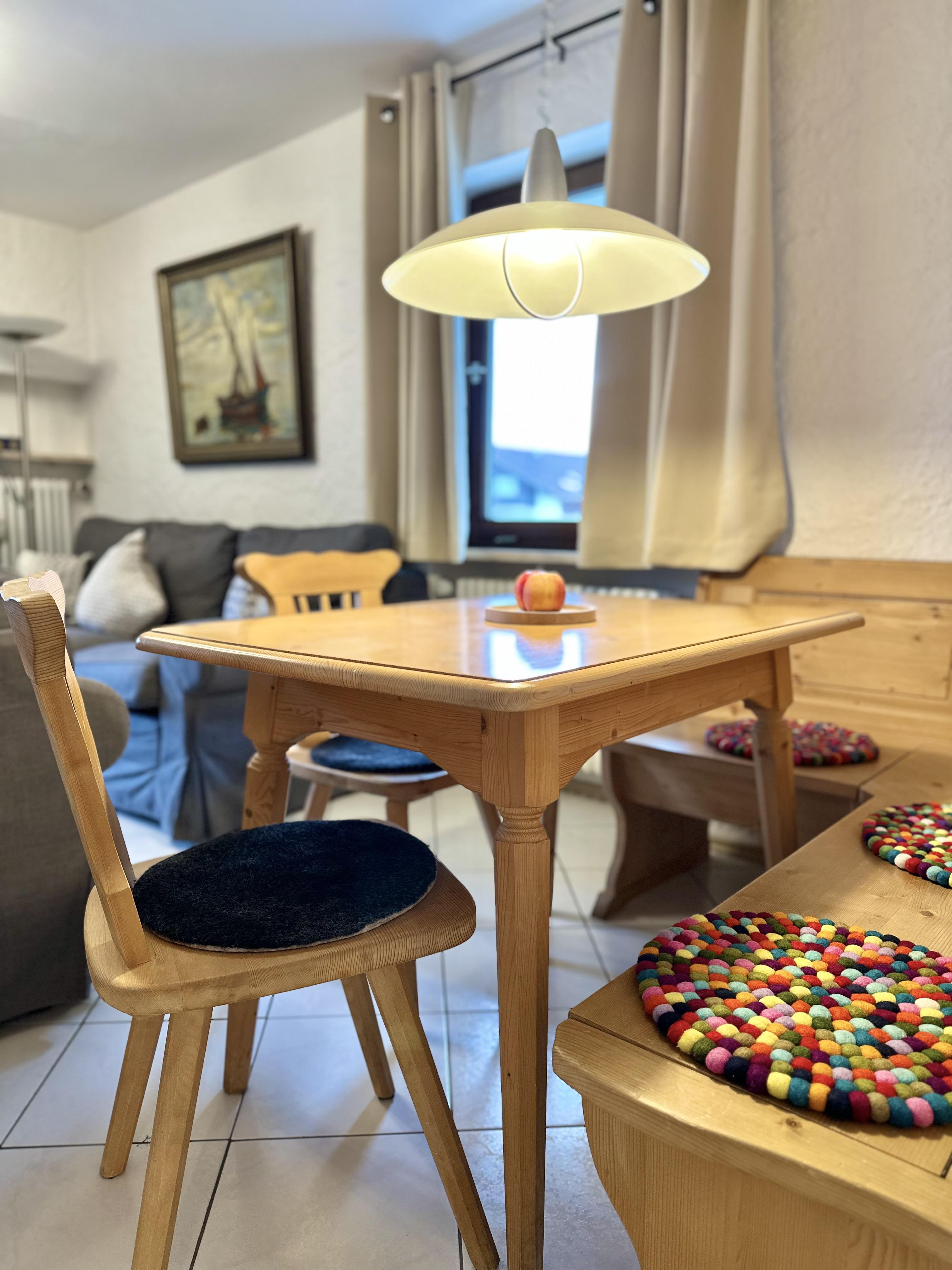 Das Wohnzimmer besteht aus einer Sitzecke, die zum Essen oder auch zum gemütlichen Spielen einlädt. Diverse Gesellschaftsspiele sind vorhanden. Das Sofa ist kuschelgeeignet.Das innenbeleuchtete Regal mit Fernseher gibt dem Raum eine wohlfühlende Atmosphäre.