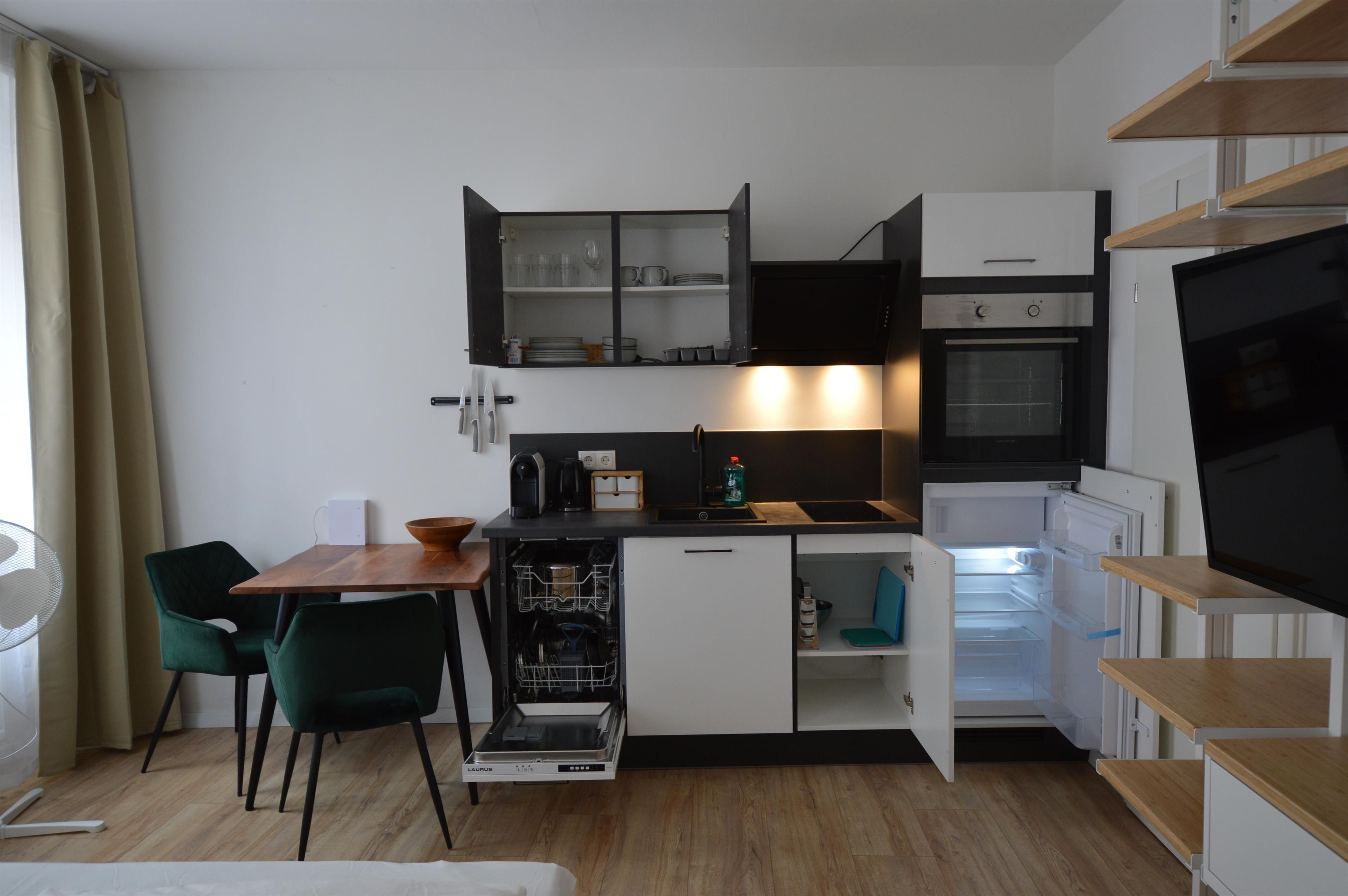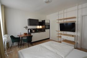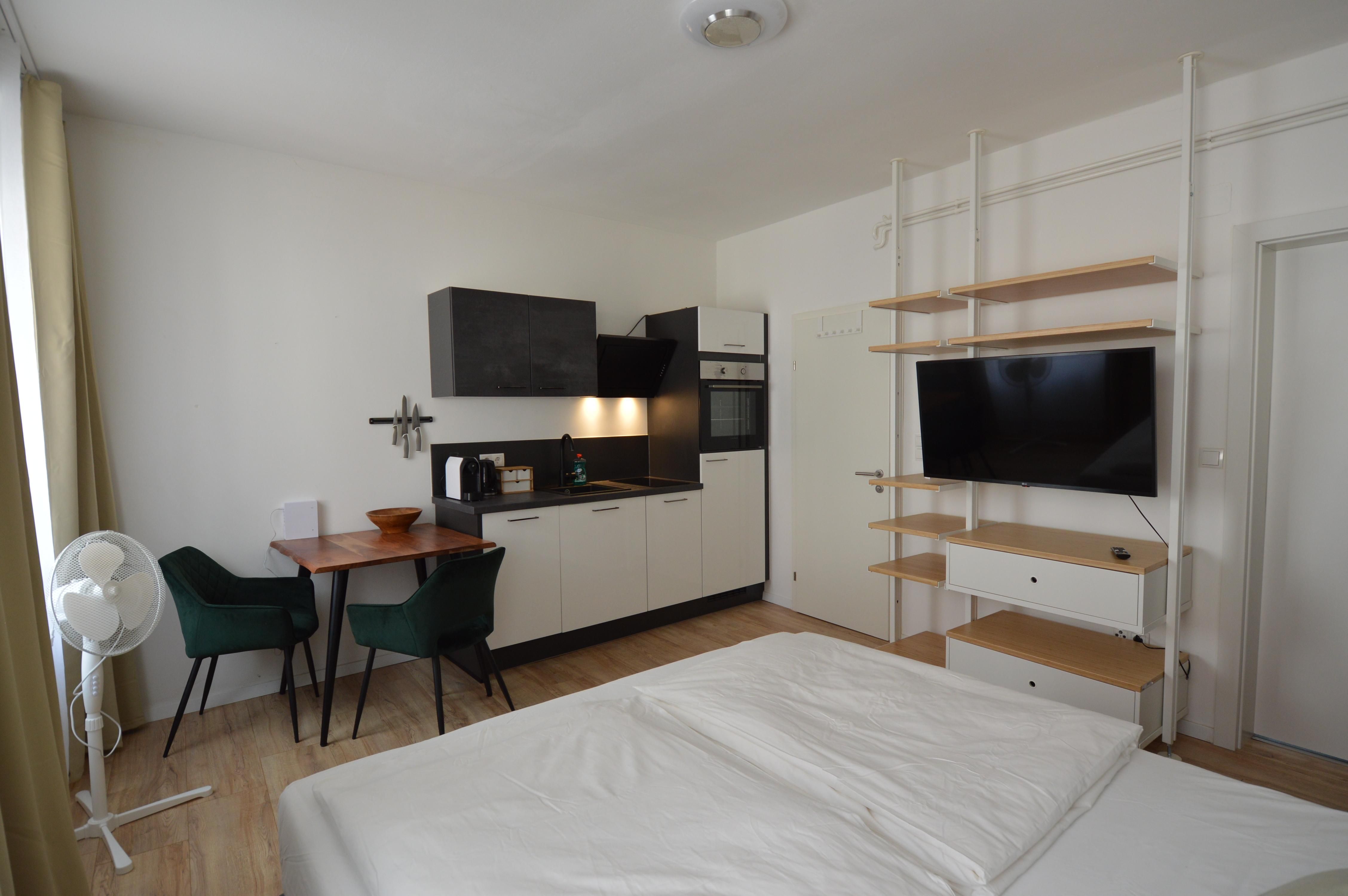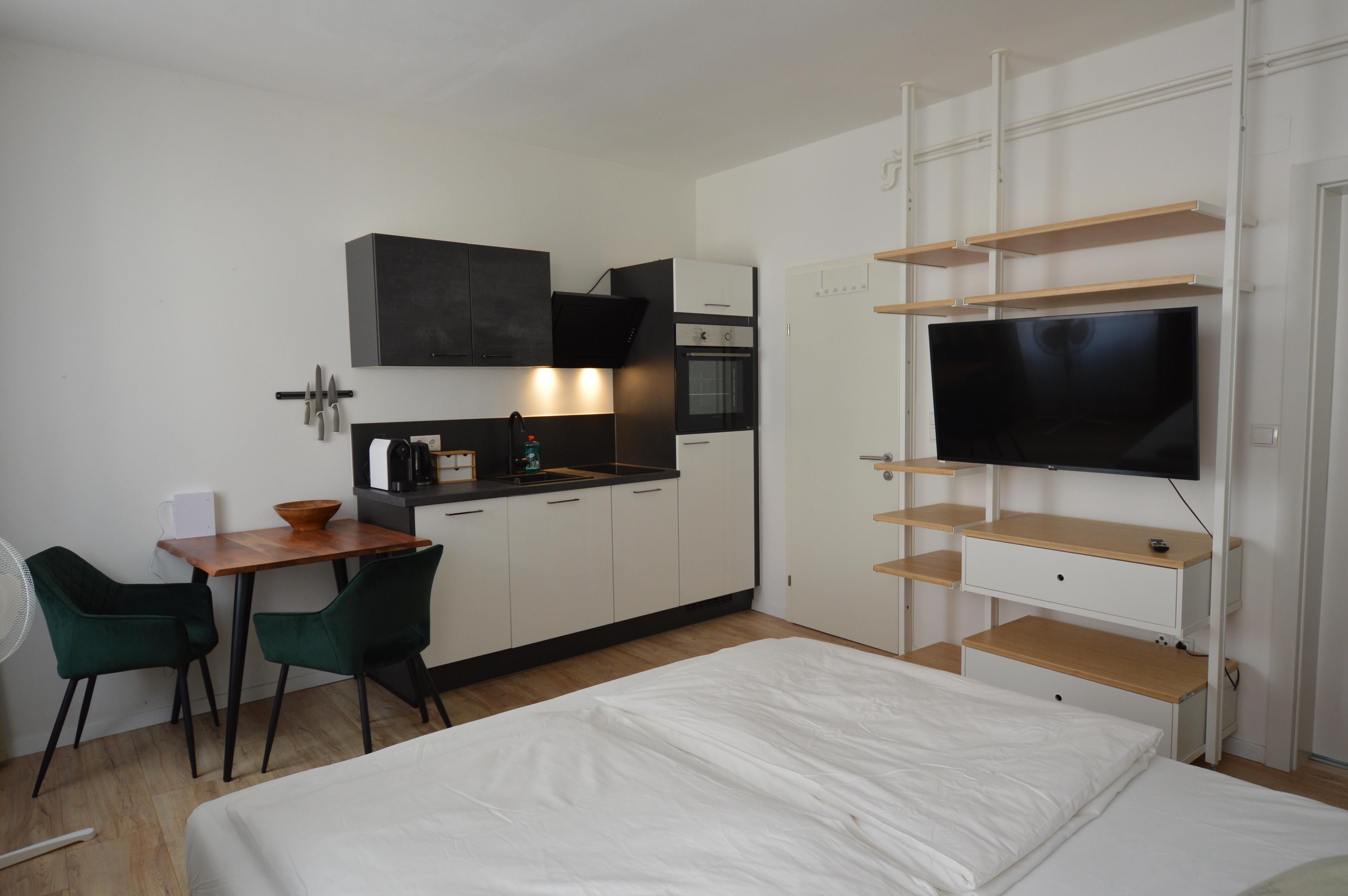 Unser modernes Studio Apartment bietet alles, was Sie für einen komfortablen Aufenthalt benötigen. Die stilvolle Einrichtung sorgt für eine angenehme Atmosphäre, während das bequeme Doppelbett für erholsame Nächte sorgt. Die voll ausgestattete Küche ermöglicht es Ihnen, sich selbst zu versorgen, mit einem Herd, Backofen, Geschirrspüler und einer Kaffeemaschine. Das helle Badezimmer ist mit einer Dusche, einem Einzelwaschtisch und einem Waschtrockner ausgestattet. Zusätzlich stehen Ihnen schnelles WLAN und ein Smart-TV zur Verfügung, sodass Sie sowohl für Arbeit als auch für Unterhaltung bestens ausgestattet sind. Das Apartment bietet somit einen idealen Rückzugsort für Paare, Geschäftsreisende oder Alleinreisende, die eine komfortable und gut gelegene Unterkunft in Graz suchen.