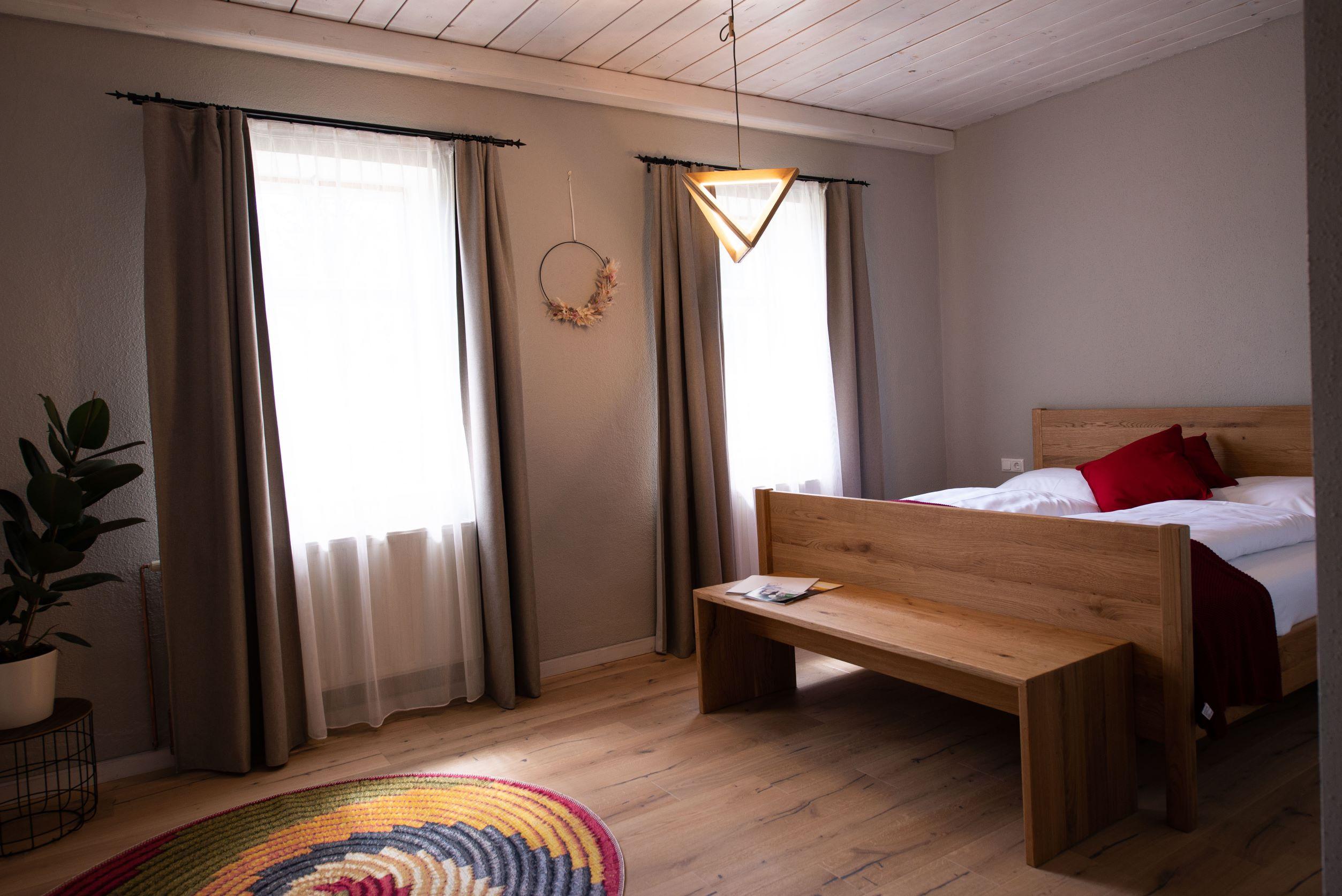 Neben unserer Weinproduktion bieten wir auch eine einzigartige Naturzimmervermietung an. Unsere gemütlichen Zimmer sind Rückzugsorte, die mit viel Liebe zum Detail gestaltet wurden. Hier können Sie sich entspannen und die Ruhe der umliegenden Natur genießen.