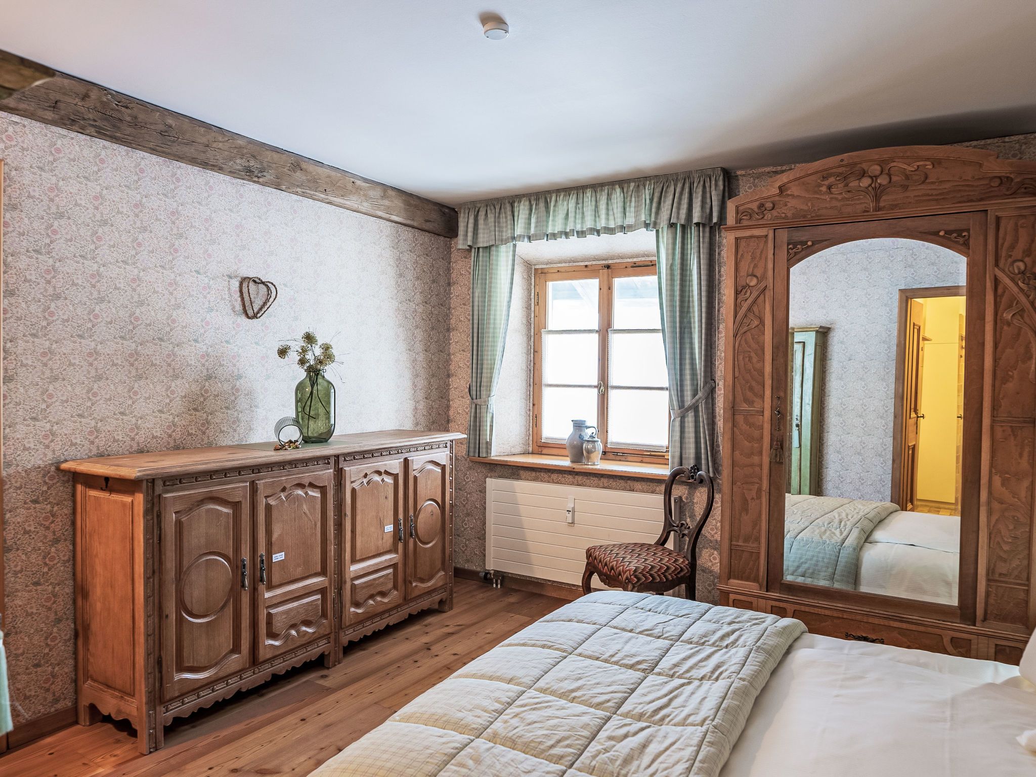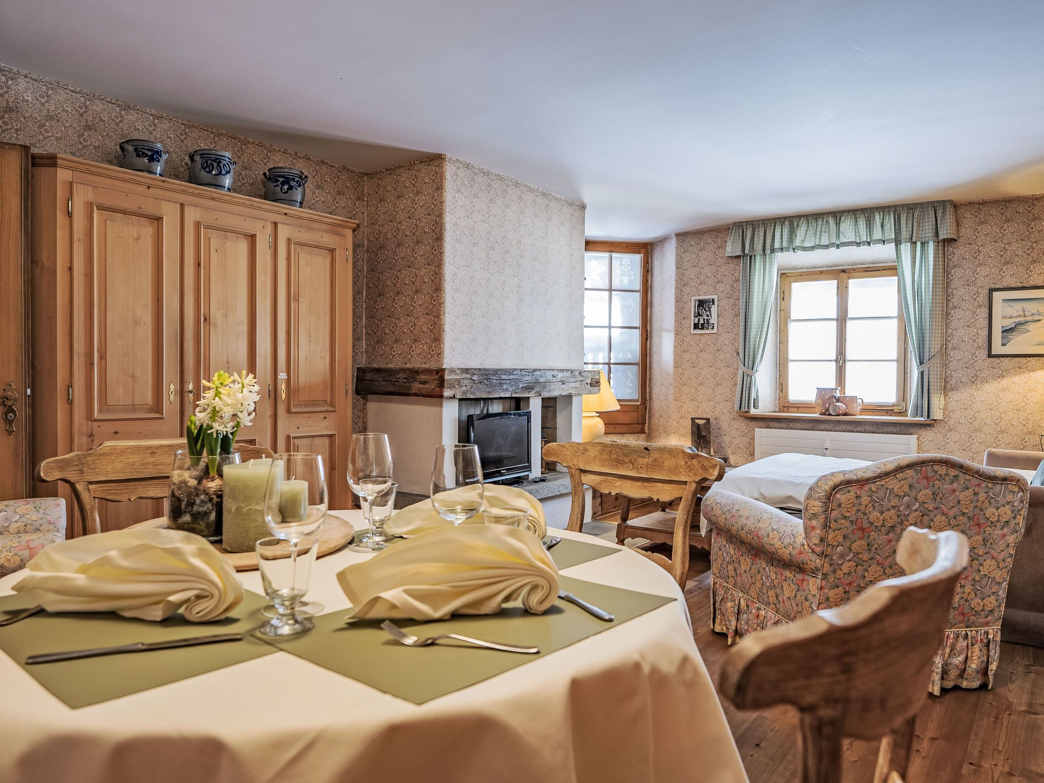Chesa Olgiati 2, 2-Zimmer-Wohnung 45 m2 im 2. Stock. Rustikal und gemütlich eingerichtet: offenes Wohn-/Esszimmer mit 1 Diwanbett (140 cm, Länge 190 cm), TV (Flachbildschirm). Ausgang zum Balkon. 1 Doppelzimmer mit 1 Doppelbett (1 x 160 cm, Länge 190 cm), Dusche/WC. Küche (4 Kochplatten, Backofen, Geschirrspüler, Toaster, Wasserkocher, Tiefkühler, elektrische Kaffeemaschine, Kapseln für die Kaffeemaschine (Nespresso) extra, Racletteofen, Fondue Set (Käse)). Heizung. Kleiner Balkon 2 m2. Balkonmöbel. Eingeschränkte Sicht auf die Berge und die Ortschaft. Zur Verfügung: Haartrockner. Internet (Wireless LAN, gratis). Garage Nr. Giovetto auf dem Grundstück, Höhe 197 cm, Breite 230 cm. Bitte beachten: Nichtraucher-Unterkunft, Nichtraucher-Haus. Kein Fahrstuhl.