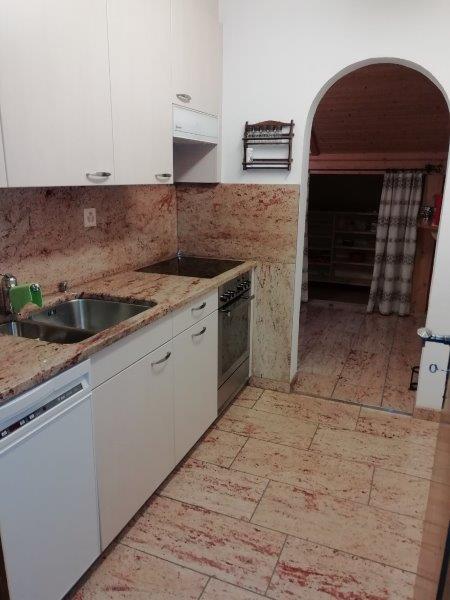 Die Küche ist separat, hinter der Küche befindet sich noch einen kleinen Raum mit Tisch. Die Küche ist mit allem ausgestattet, was einen Urlaub angenehm macht: Spülmaschine, Kühlschrank mit 0°-Fach und Tiefkühlbereich, Kaffeemaschine- und, Tafelgeschirr- und Besteck sowie ausreichend Gläser, Töpfe, Pfannen usw. Der Essecken befindet sich im Wohnraum mit schöner Sicht auf Tschierv. In der Wohnung befinden sich ein komplettes Bad (Wanne/Dusche) sowie ein separate WC mit Dusche.