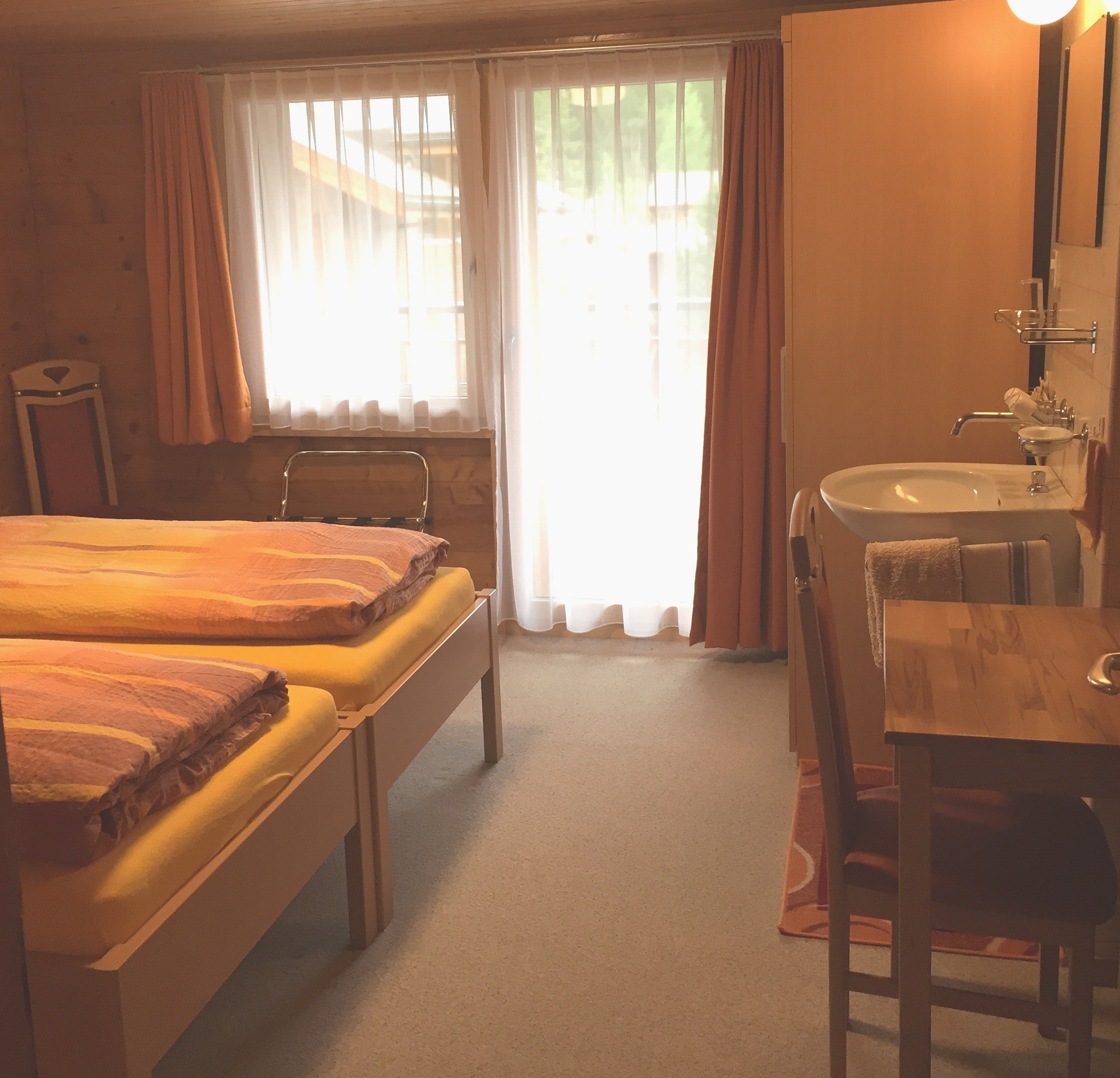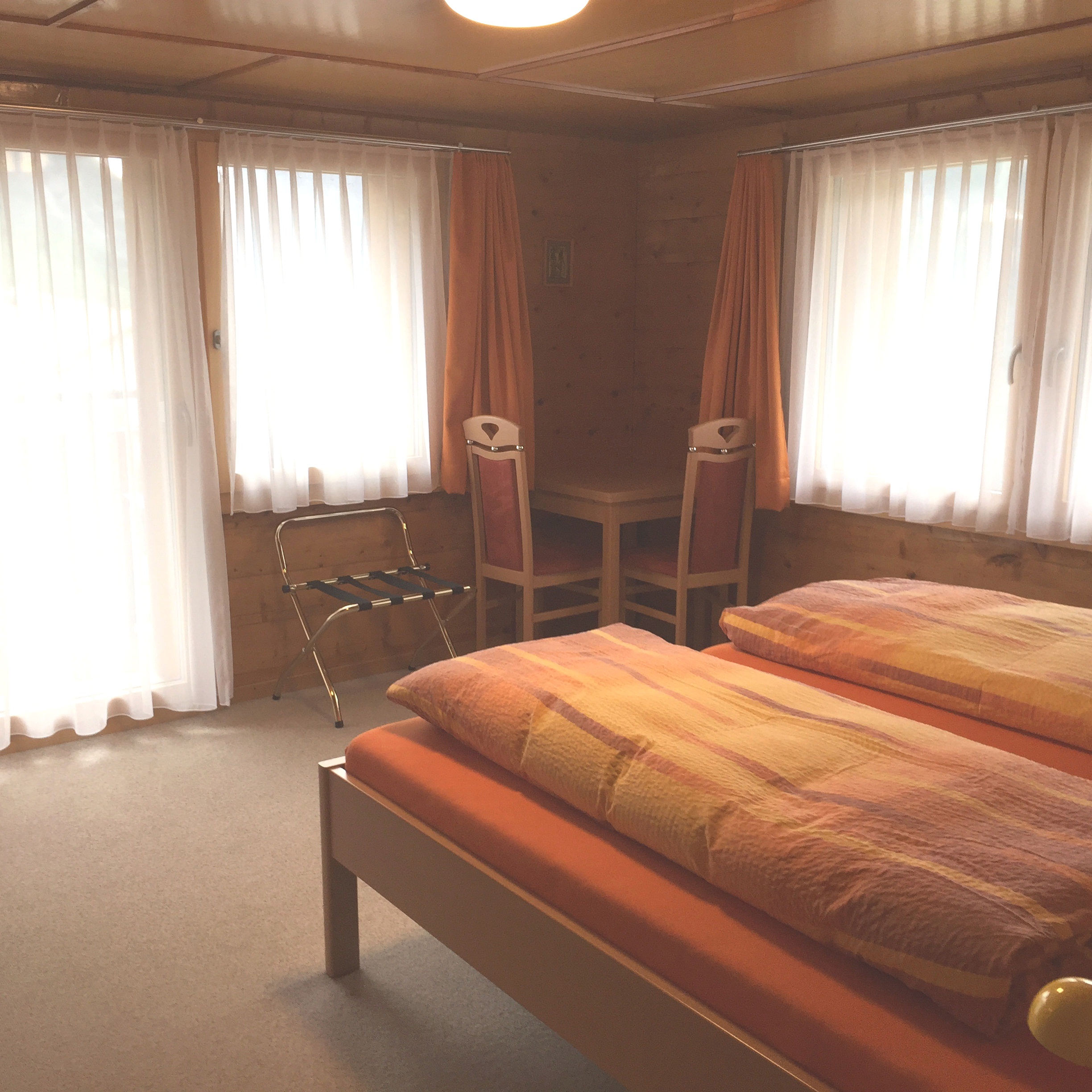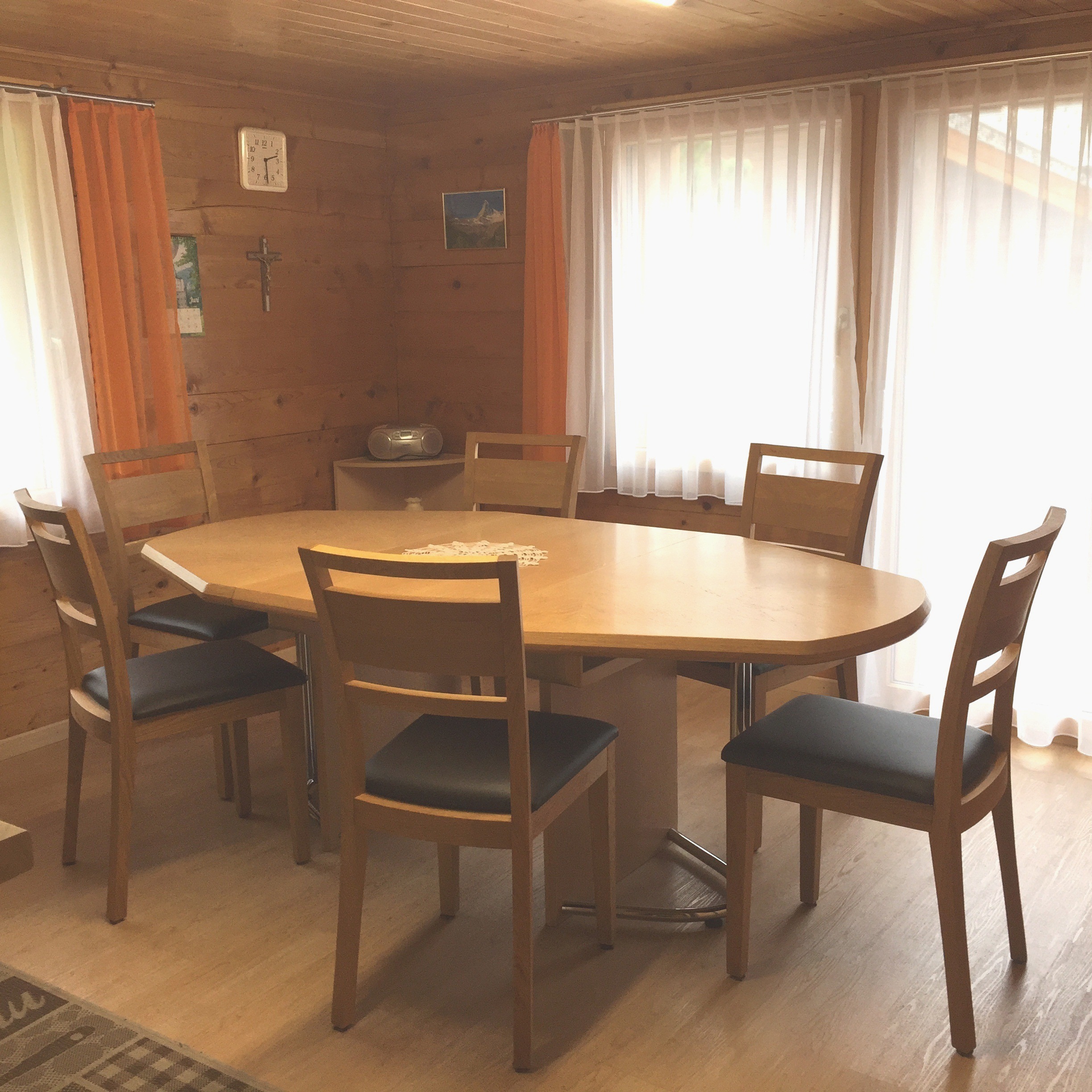 Grosse komfortable 6-Zimmerwohnung im 2. Stock für 2 - 9 Personen. Die Wohnung hat 115 m2 und verfügt über 2 grosse Doppelzimmer mit Waschbecken, 1 kleineres Zweibettzimmer mit Waschbecken, 1 Einzelzimmer mit Waschbecken, 1 Zimmer mit Etagenbett (für Kinder), separates Wohnzimmer mit Flachbild-Swisscom-TV, Radio, Gratis-Internet, DVD-Player, Essküche mit Geschirrspüler und Mikrowelle, WC und Bad getrennt, grosser Südbalkon zum Essen und Verweilen, kleinerer Westbalkon und kleiner Ostbalkon. Für FAMILIEN MIT 3 UND MEHR KINDERN unterbreiten wir gerne spezielle Angebote! Fragen Sie bitte direkt beim Vermieter nach. Haustiere willkommen. Private Parkplätze direkt hinter dem Haus.