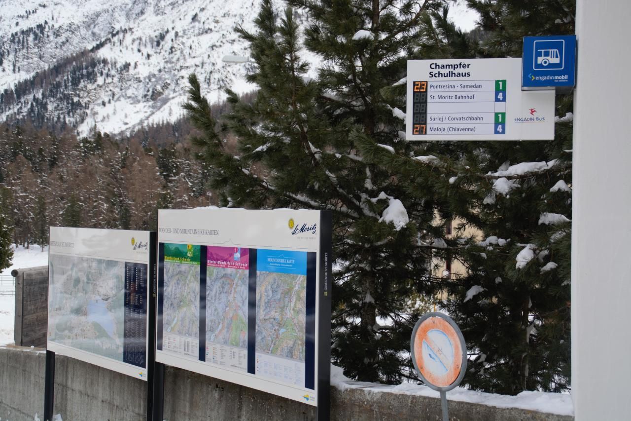 Gegenüber der Wohnung befindet sich die Bushaltestelle Champfèr, Schulhaus mit den Linien 1 und 4. Diese Linien bringen dich ca. alle 20 Minuten überall hin ins Engadin. Zur Bergbahn Signal, welche ins Skigebiet Corviglia führt, dauert es mit dem Auto oder dem Bus 4 Minuten. Zur Corvatsch-Bergbahn dauert es 9 Minuten.