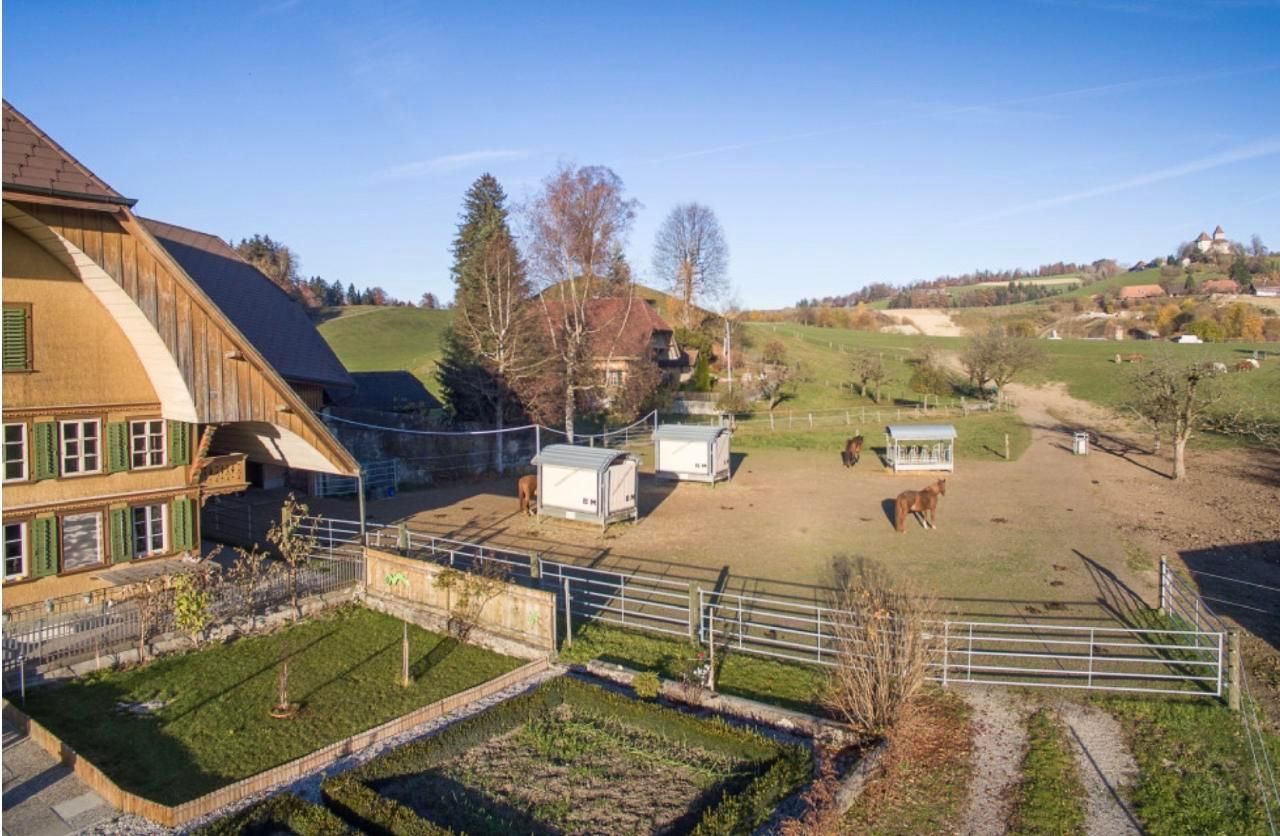 Inmitten des hügeligen Emmentals, wo auf jedem Hügel ein Baum wächst, kann man nach Herzenslust die Seele baumeln lassen. Durch das Möglichkeit das eigene Pferd mitzubringen und auf dem Hof mithelfen zu können, ist ausserdem für Abwechslung gesorgt. Es können maximal 3 Pferde im zugehörigen Gruppenstall eingestellt werden.