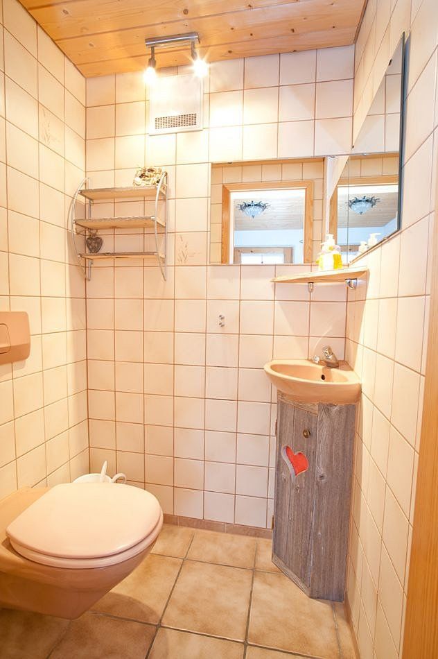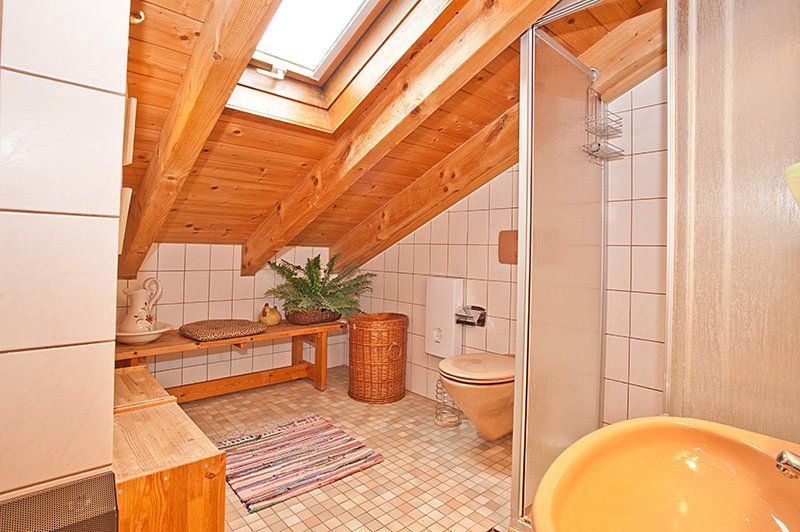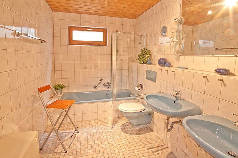 Das Obergeschoss verfügt über zwei helle Schlafzimmer und ein Bad mit Dusche/WC. Ein weiteres Schlafzimmer sowie ein Badezimmer mit Badewanne, Dusche und Doppelwaschbecken befinden sich im Untergeschoss. Alle Badezimmer sind mit einem Fön ausgestattet.