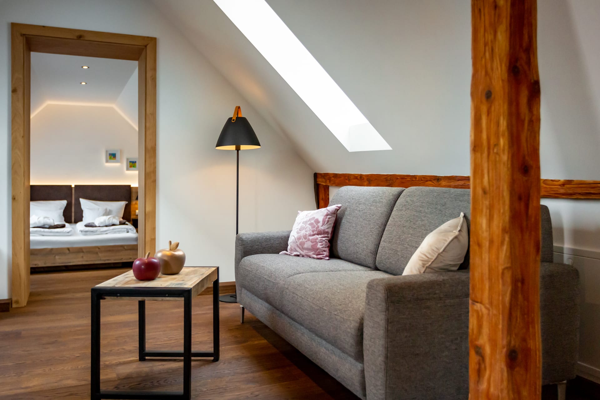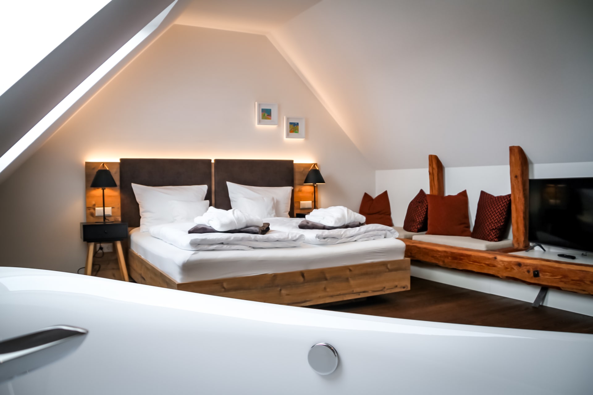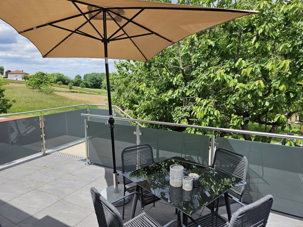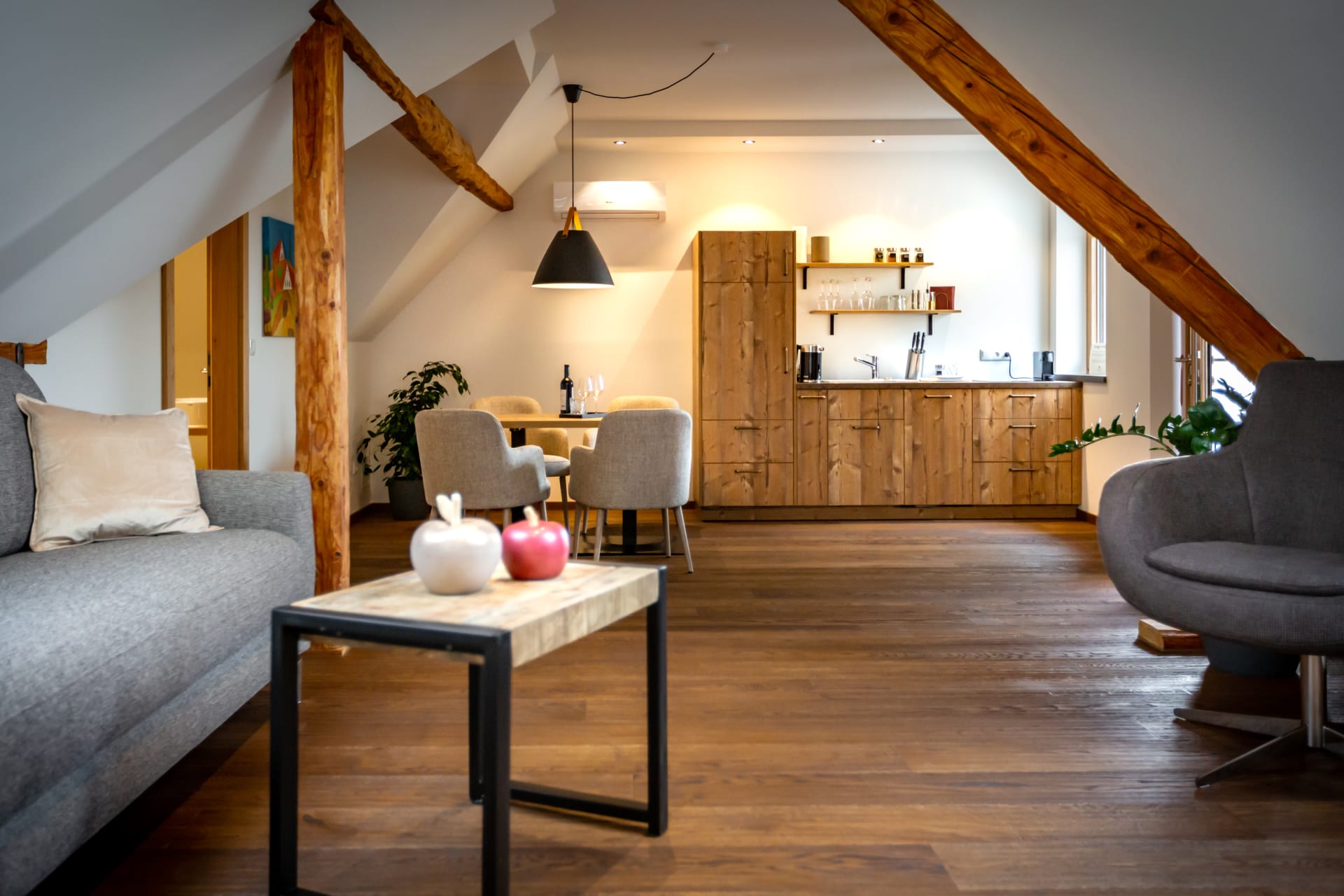 Das Appartment hat einen eigenen Zugang, vollausgestattete Küchenzeile, eigenen Wohnraum, Badezimmer mit Dusche, Badewanne mit ausgewählten Biopflegeprodukten, bequemes Doppelbett mir Premium Matratze, Privatterrasse oder Balkon mit Blick ins Grüne auf unsere Streuobstwiesen. Sie finden individuelle Rückzugsorte mit Liegestühlen und Sitzecken. Ein Rückzugsort, der Ruhe und Geborgenheit ausstrahlt und gleichzeitig ein Ort der Begegnung. Modern ohne kühl zu sein.
