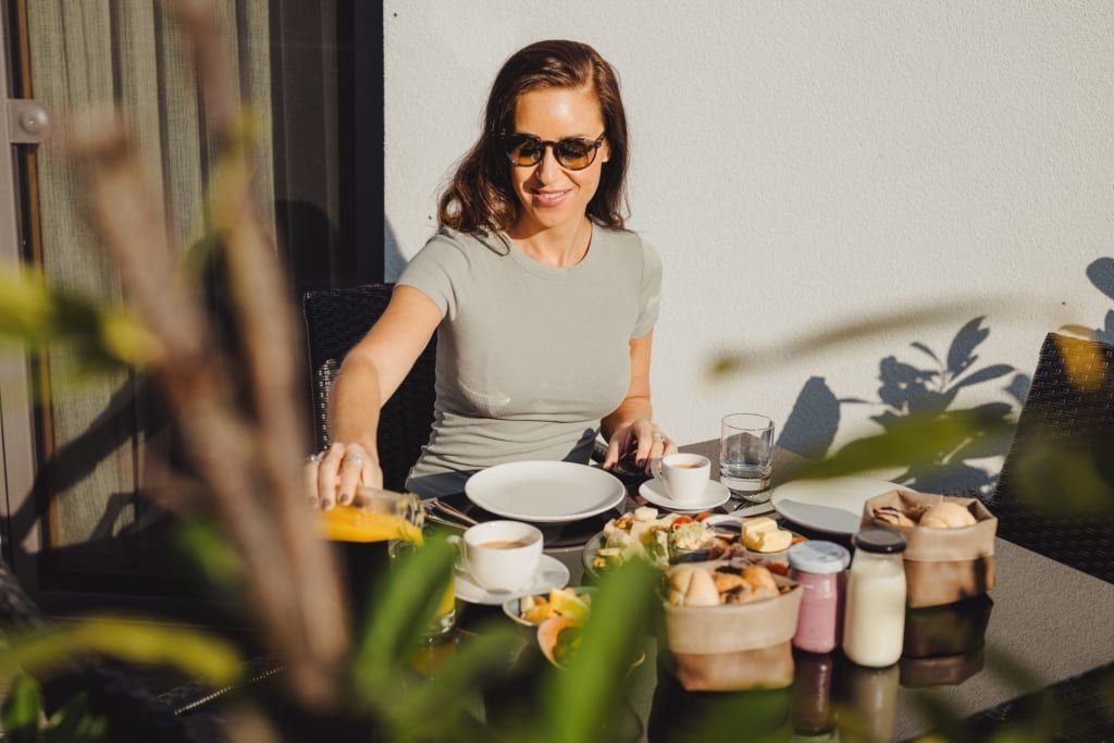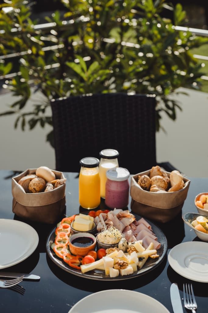 Klarer Morgen, warme Räume, ein Frühstückskorb voller Bio-Genuss direkt ins Appartement.