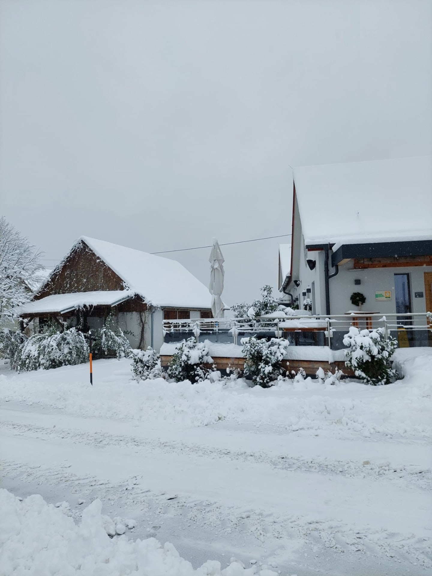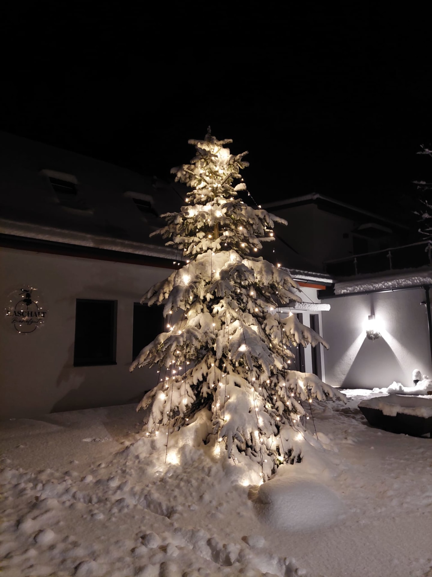 Draußen Stille, drinnen Geborgenheit – ein heißes Bad, Zeit für sich, der Blick ins winterliche Grün.