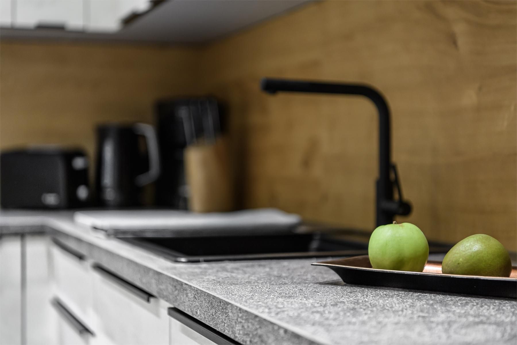 Die komplette Kücheneinrichtung, Fußbodenheizung und Glasfaserinternet sind Standard (Kinder & Babybetten auf Anfrage)