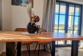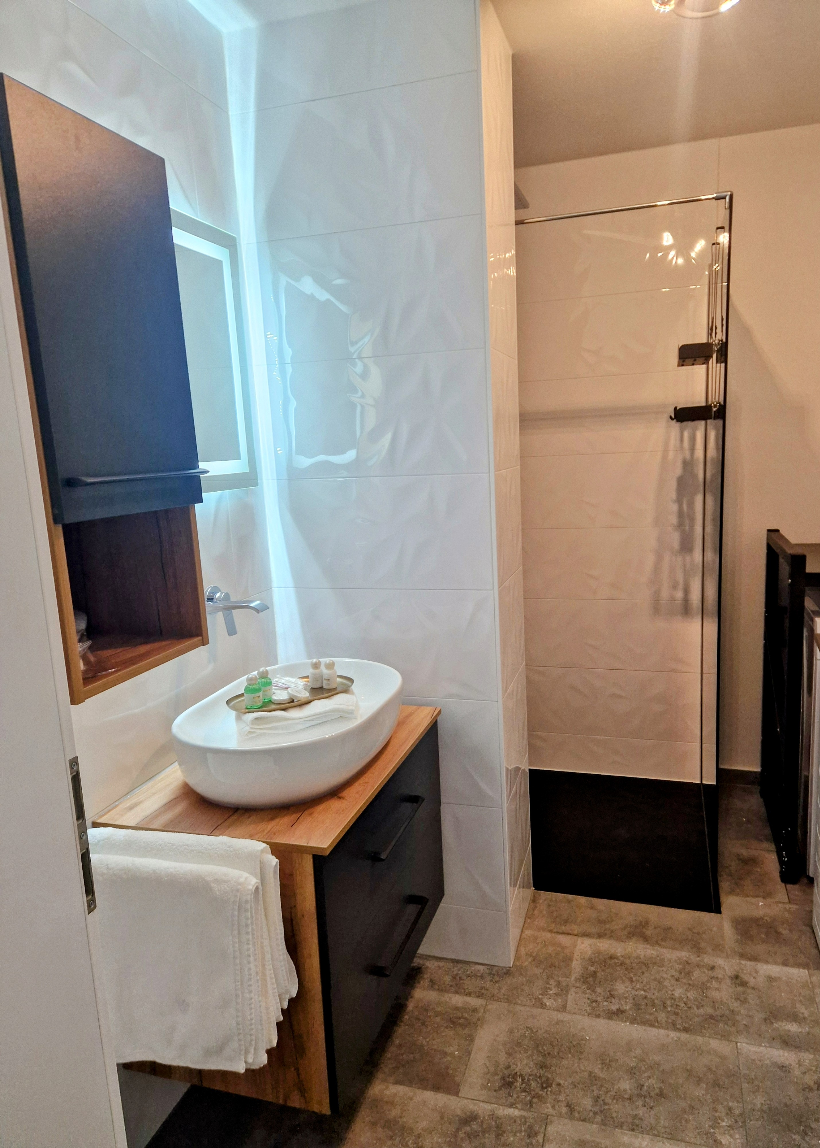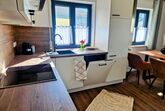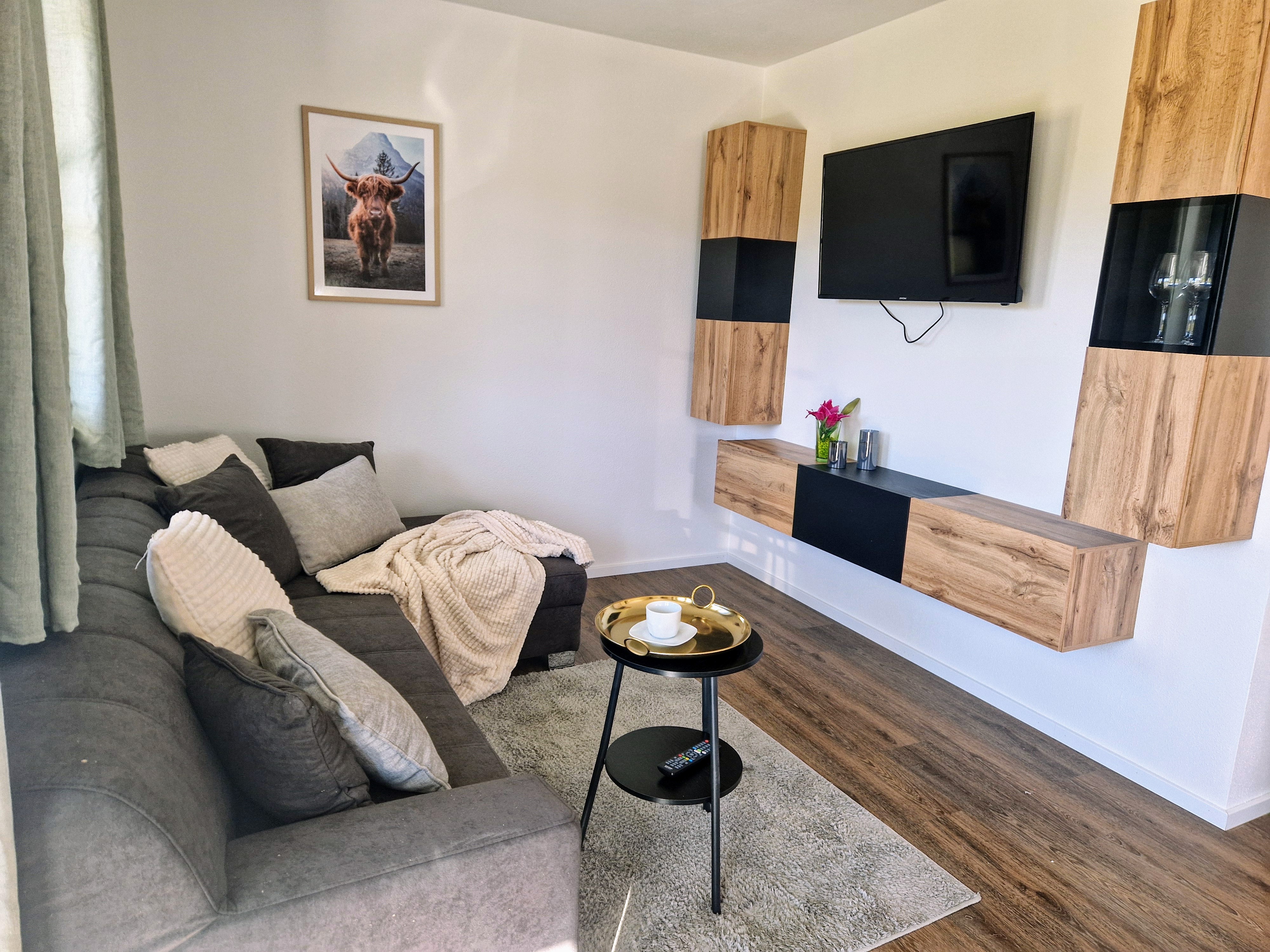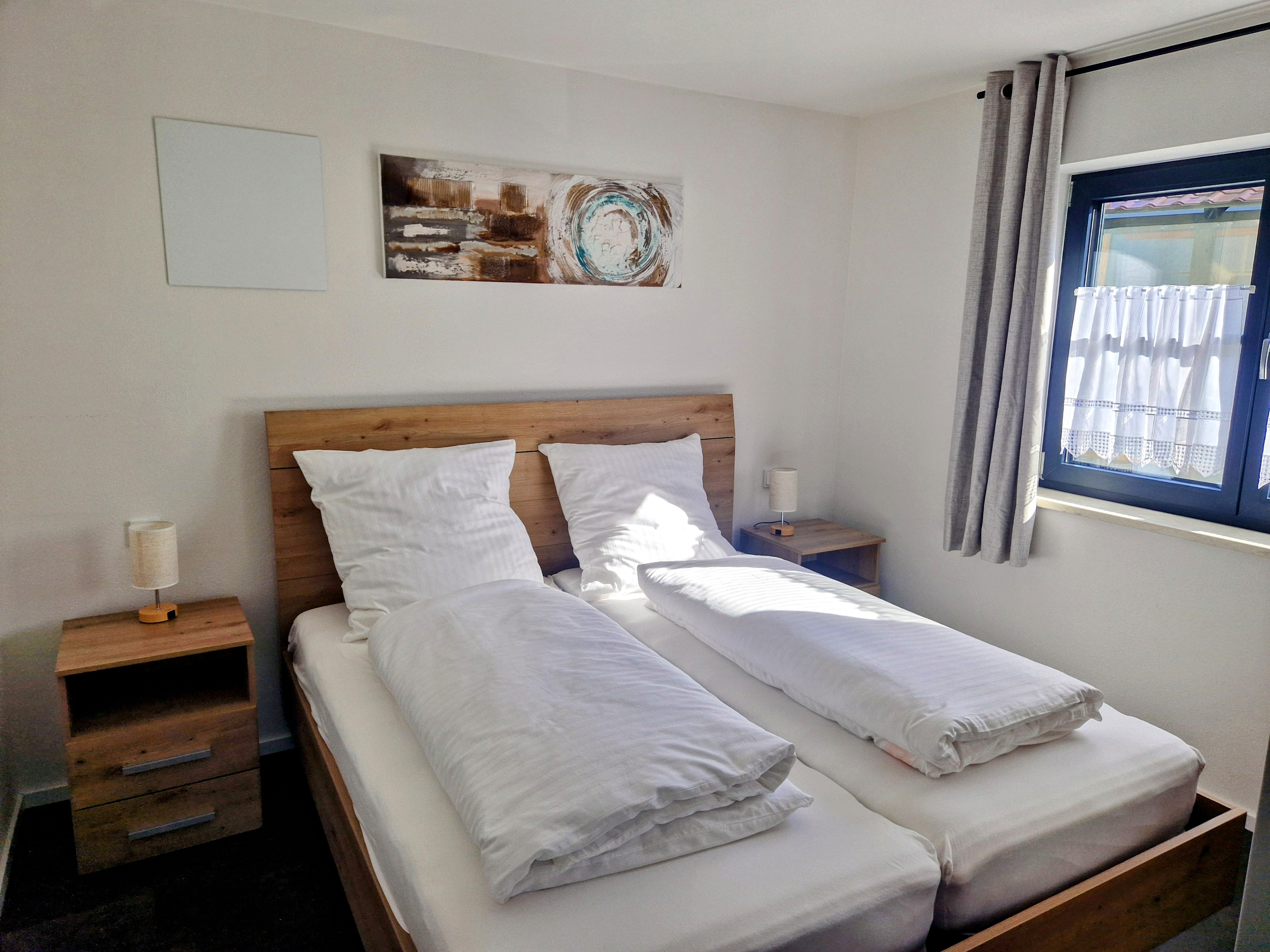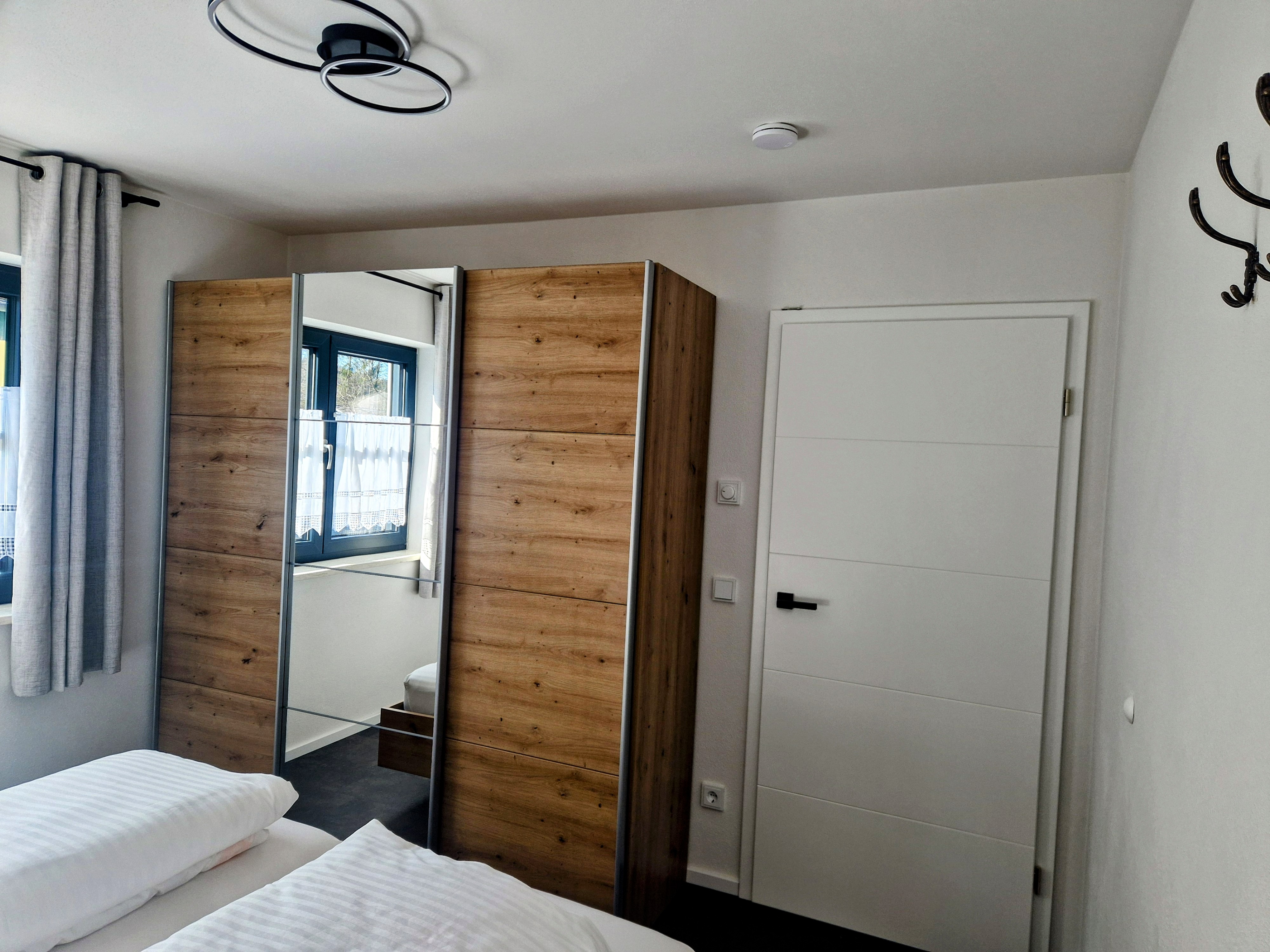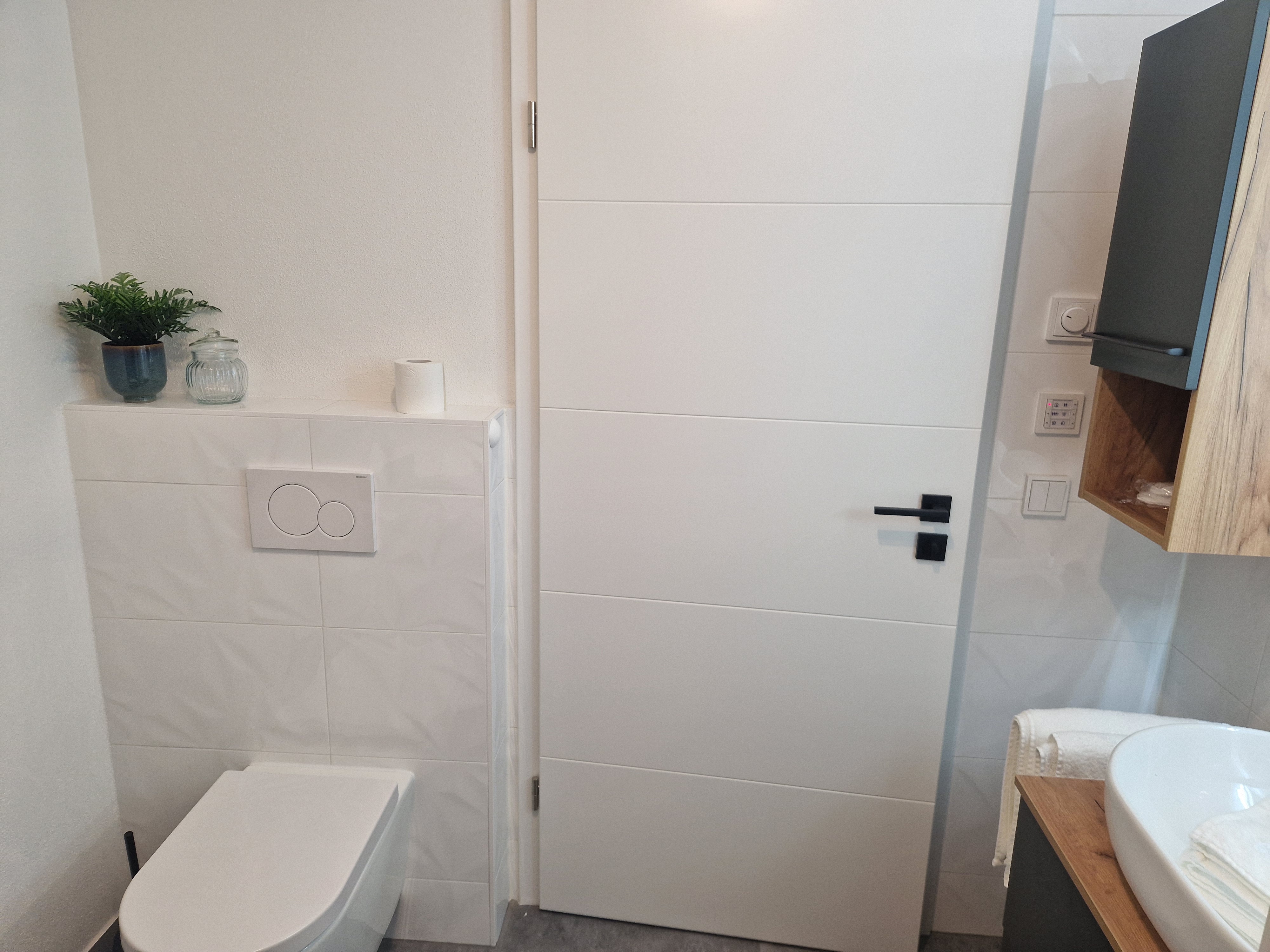 Die charmante Ferienwohnung erstreckt sich über 50 qm und bietet Platz für bis zu vier Personen. Sie verfügt über zwei einladende Zimmer, darunter ein Schlafzimmer mit einem komfortablen Doppelbett und einen großzügigen Schrank für Ihre persönlichen Dinge. Im hellen Wohnraum finden Sie eine moderne Küche, eine gemütliche Schlafcouch, einen Esstisch sowie einen Fernseher, der für entspannte Abende sorgt. Das Badezimmer ist mit einer ebenerdigen Dusche, einer Waschmaschine, einem Trockner, Föhn, Handtüchern und einer Toilette ausgestattet. Besonders hervorzuheben ist der Zugang zur eigenen Terrasse, ideal für entspannte Stunden im Freien. Die Wohnung ist eine Nichtraucherunterkunft und überzeugt durch ihren modernen Neubau-Charakter. Ihr Auto können Sie bequem direkt vor der Tür parken, und der eigene Zugang zur Wohnung sorgt für zusätzliche Privatsphäre und Komfort.
