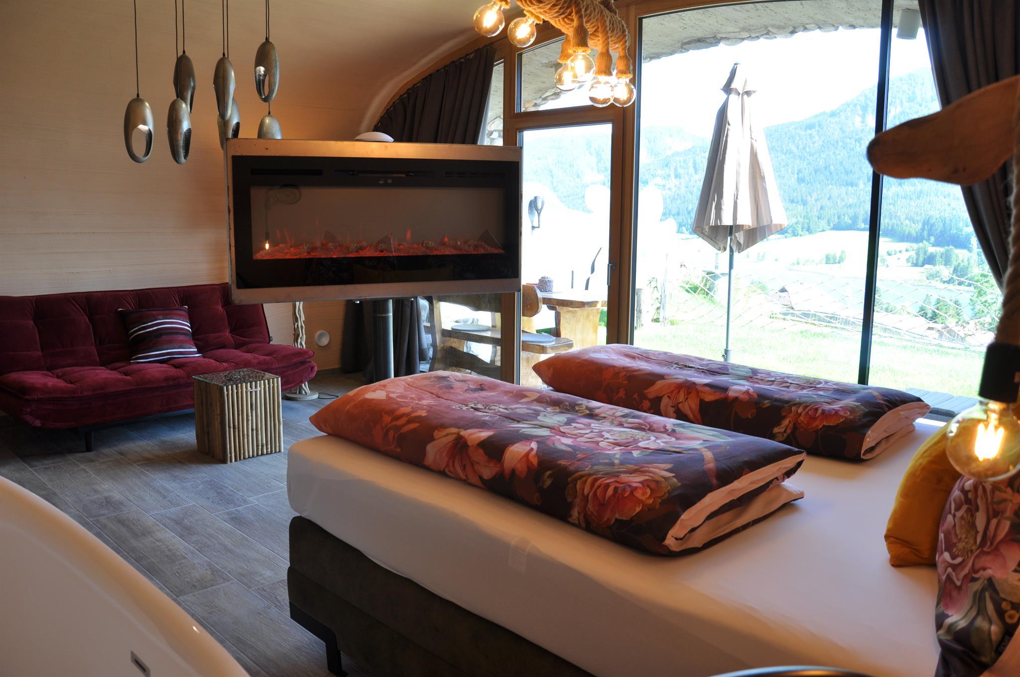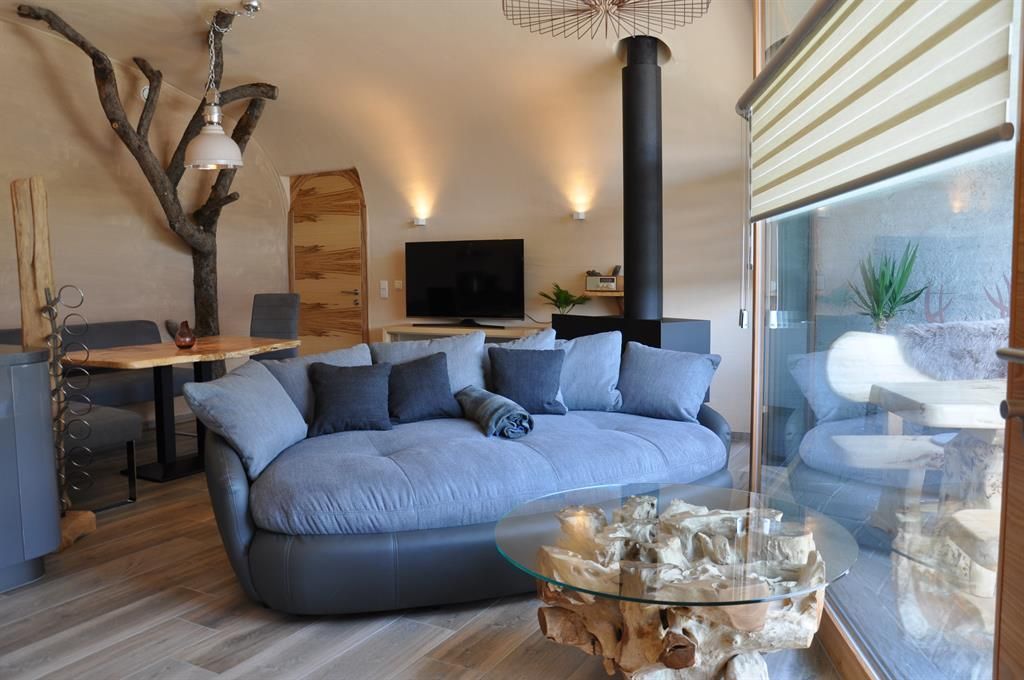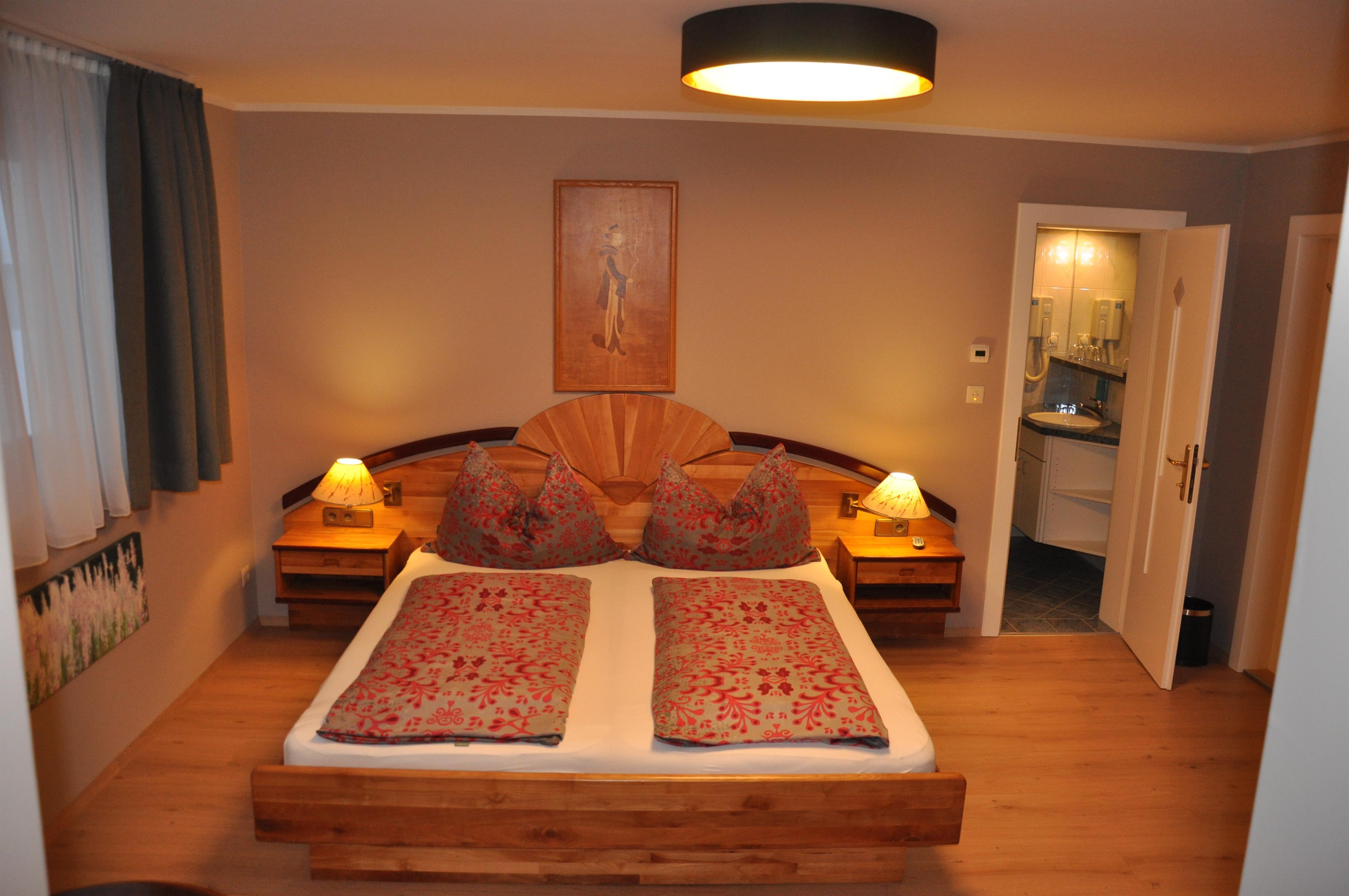 Die Wohnung Margerite liegt im ersten Stock des Haupthauses und bietet eine gemütliche, gut ausgestattete Rückzugsoase mit liebevollen Details. Das separate Schlafzimmer ist mit einem Doppelbett und Sat-TV ausgestattet, während der neu gestaltete Wohnraum mit Esstisch, Sat-TV und ausziehbarer Komfort-Couch zum Entspannen einlädt. Eine Schiebetür sorgt für Privatsphäre zwischen Wohn- und Schlafbereich – ideal auch, wenn Kinder mitreisen.