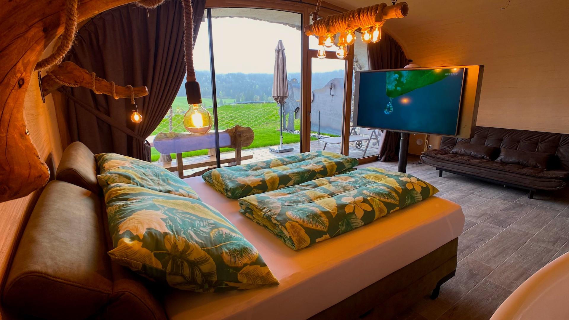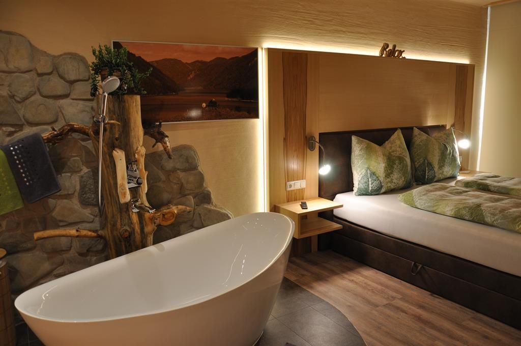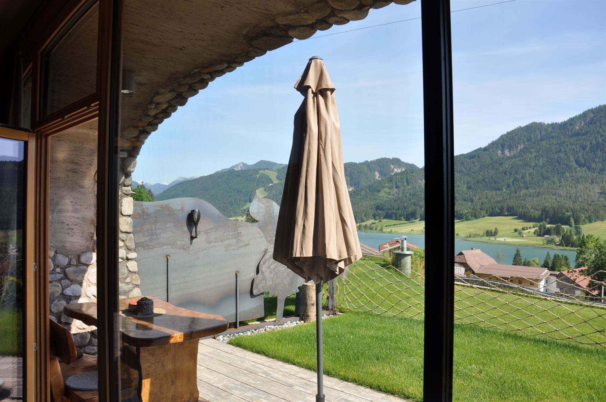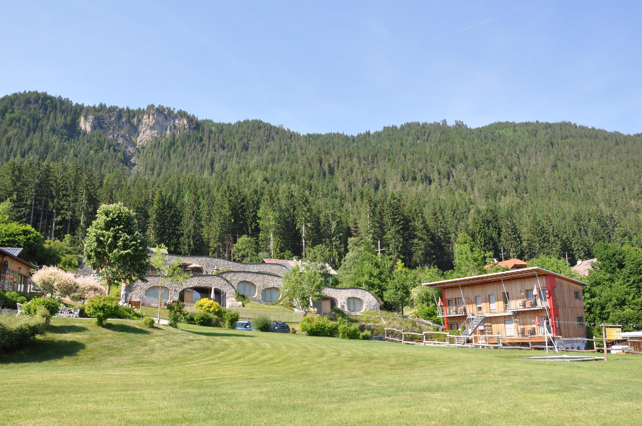 Urlaub mit Seen-Sucht – in exklusiver Alleinlage am Weissensee. Unsere klassifizierten TOP 3-Sterne-Ferienwohnungen sind hochwertig ausgestattet und bieten viel Raum zum Entspannen und Genießen. Die Himmelsbogen Natur-Chalets und Suiten fügen sich harmonisch in die Landschaft ein. Außergewöhnlich, gemütlich und modern zugleich. Fast alle Wohneinheiten bieten Seeblick und werden mit belebtem Granderwasser versorgt. Umgeben von duftenden Wiesen, Wäldern, Bergen und dem kristallklaren See liegt unser kleines Urlaubsdorf inmitten einer natürlichen Erlebniswelt mit großzügiger Spiel- und Sportwiese, Fischteich, Naturgarten und liebevoll gestalteten Kraftplätzen. Am privaten Badestrand erwarten dich flaches Wasser für Kinder, eine Rutsche, ein Ruderboot, Liegen, Sonnenschirme, gekühlte Getränke, Kaffee, Grill, ein WC und ein Sprungbrett – alles, was Sommertage unvergesslich macht. Im Haus selbst sorgen Sauna, Solarium, Infrarotkabine, Hydro-Jet-Massage, Billard und Tischtennis sowie eine gemütliche Hausbar und eine gut sortierte Vinothek für Erholung und Geselligkeit. Ein kleines Restaurant für besondere Anlässe steht dir exklusiv zur Verfügung. WLAN ist im gesamten Haus kostenlos nutzbar.