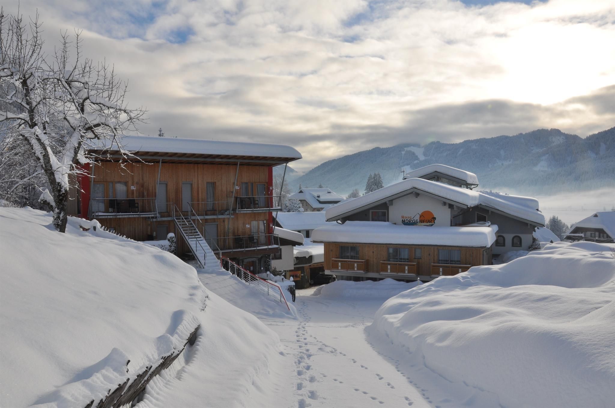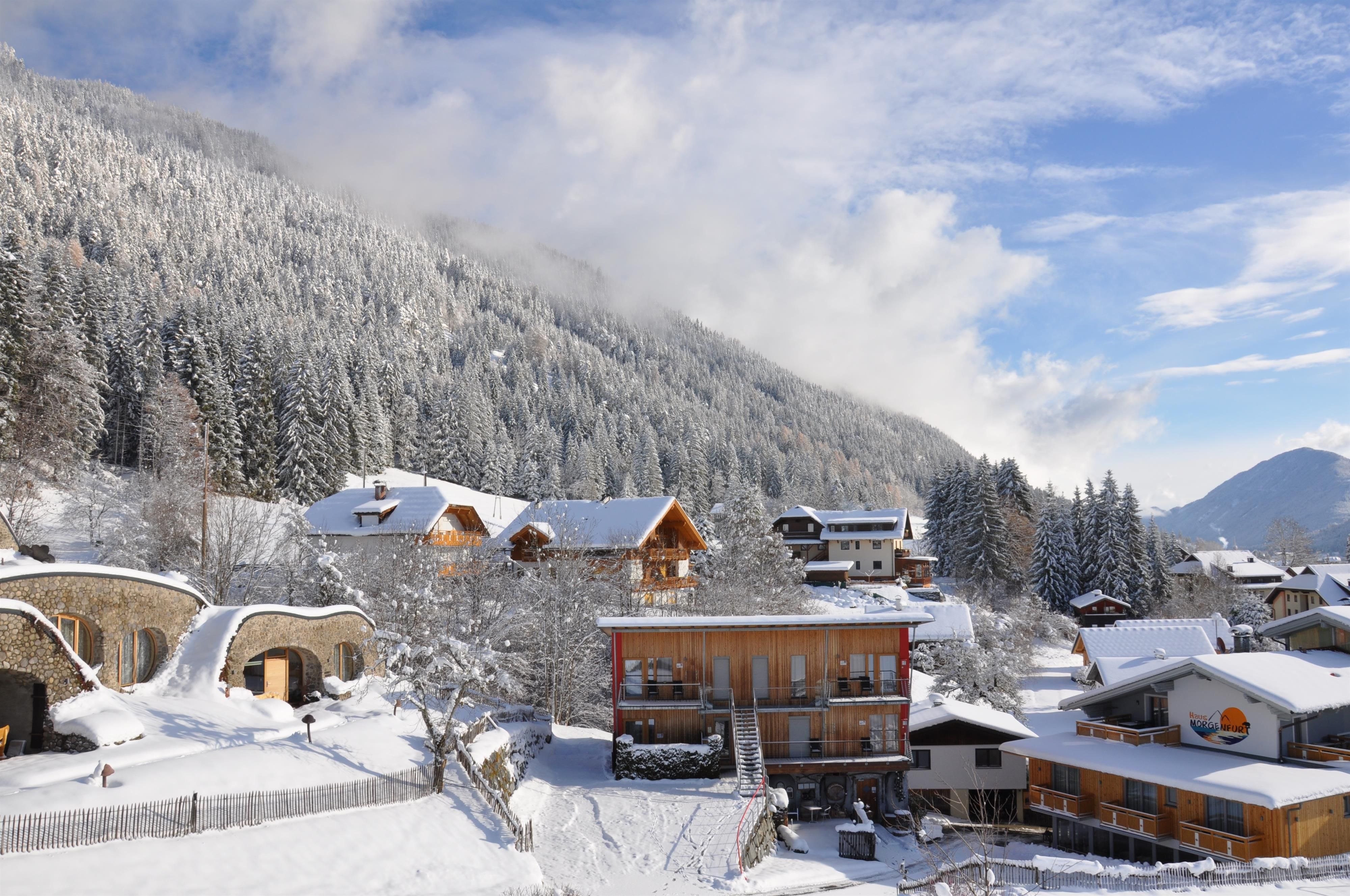 Urlaub mit Seen-Sucht – und das in traumhafter Alleinlage. Unsere klassifizierten 3-Sterne-Ferienwohnungen sind sehr gut ausgestattet und bieten alles, was du für entspannte Tage brauchst. Die Himmelsbogen Natur-Chalets und Suiten fügen sich harmonisch in die Landschaft ein – umgeben von Wiesen, Wäldern, Bergen und dem kristallklaren Weissensee. Im Winter erwartet dich ein besonderes Extra: Die Sauna ist inklusive, Rodel und Eisstöcke stehen bereit, und die Schibus-Haltestelle befindet sich direkt beim Haus. Nur zwei Gehminuten trennen dich vom zugefrorenen See und der Langlaufloipe. Direkt am See findest du unser eigenes Buffet mit warmen und kalten Getränken, kleinen Speisen, Kuchen und Kaffee – dazu ein beheiztes WC für deinen Komfort. Im Haus sorgen Sauna, Infrarotkabine, Solarium, Hydrojet-Überwassermassage und belebtes Granderwasser für dein Wohlbefinden. WLAN steht dir selbstverständlich kostenlos zur Verfügung.