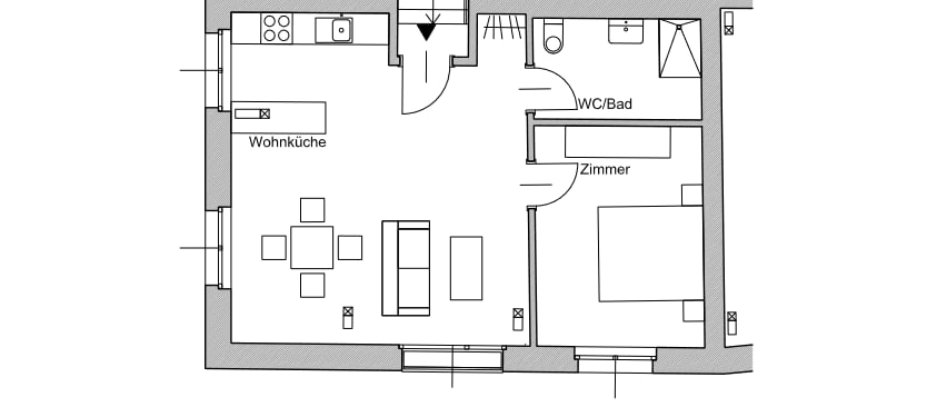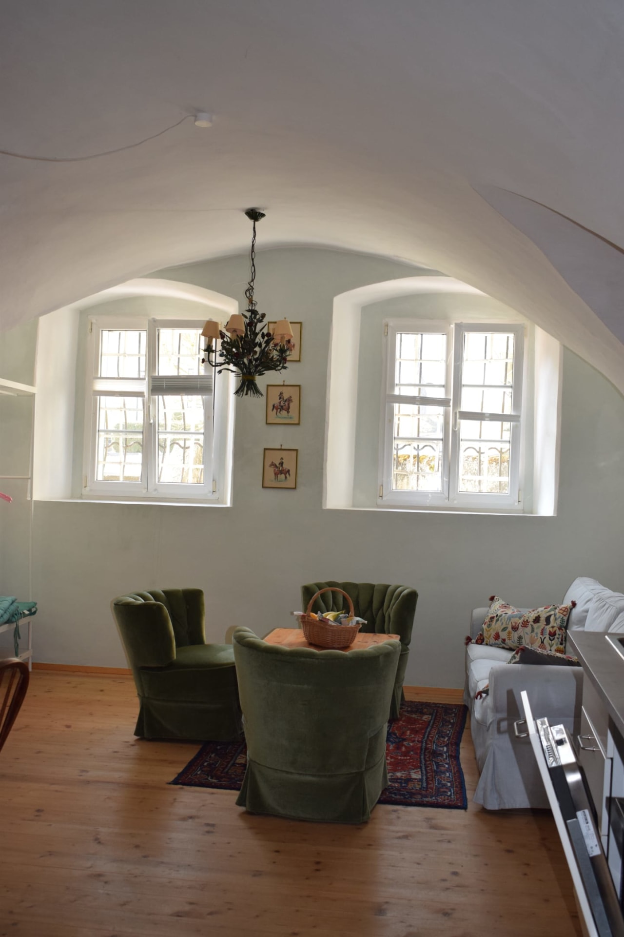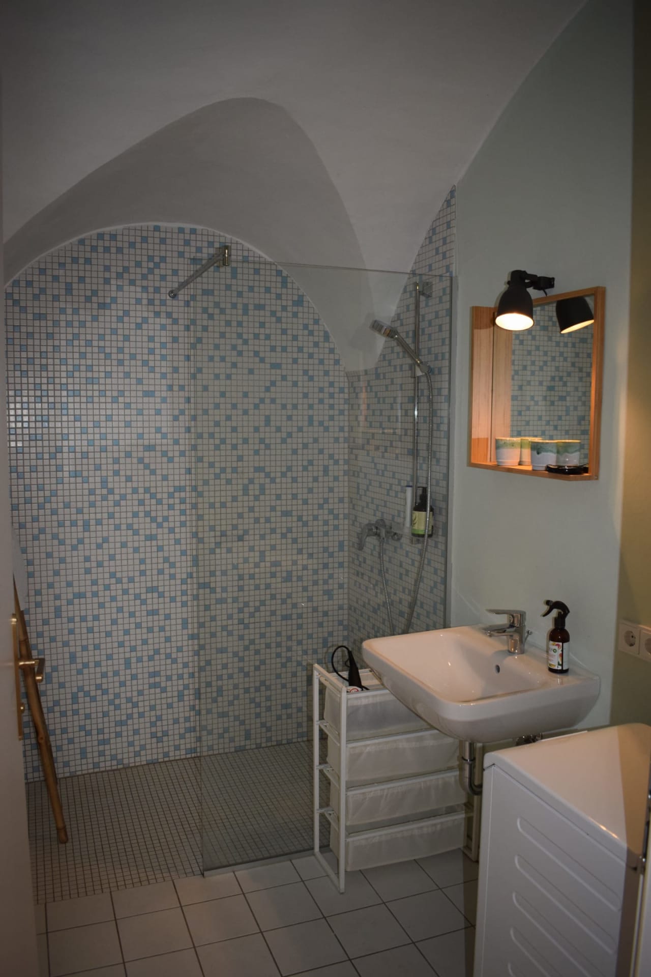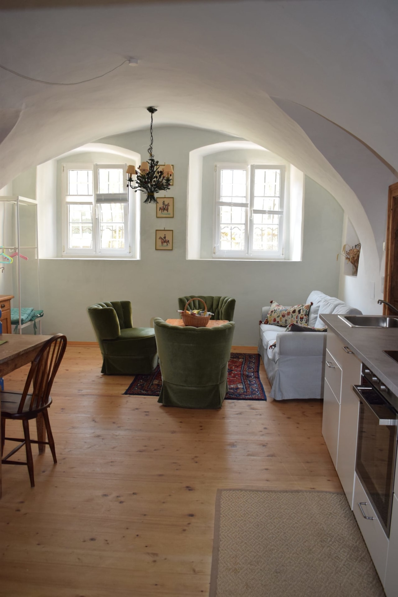 (ehemalige Hofküche) – ca. 60 m² im EG Gewölbe, 3 Betten, 2 Zimmer, Wohnküche, Dusche, WC, Waschmaschine