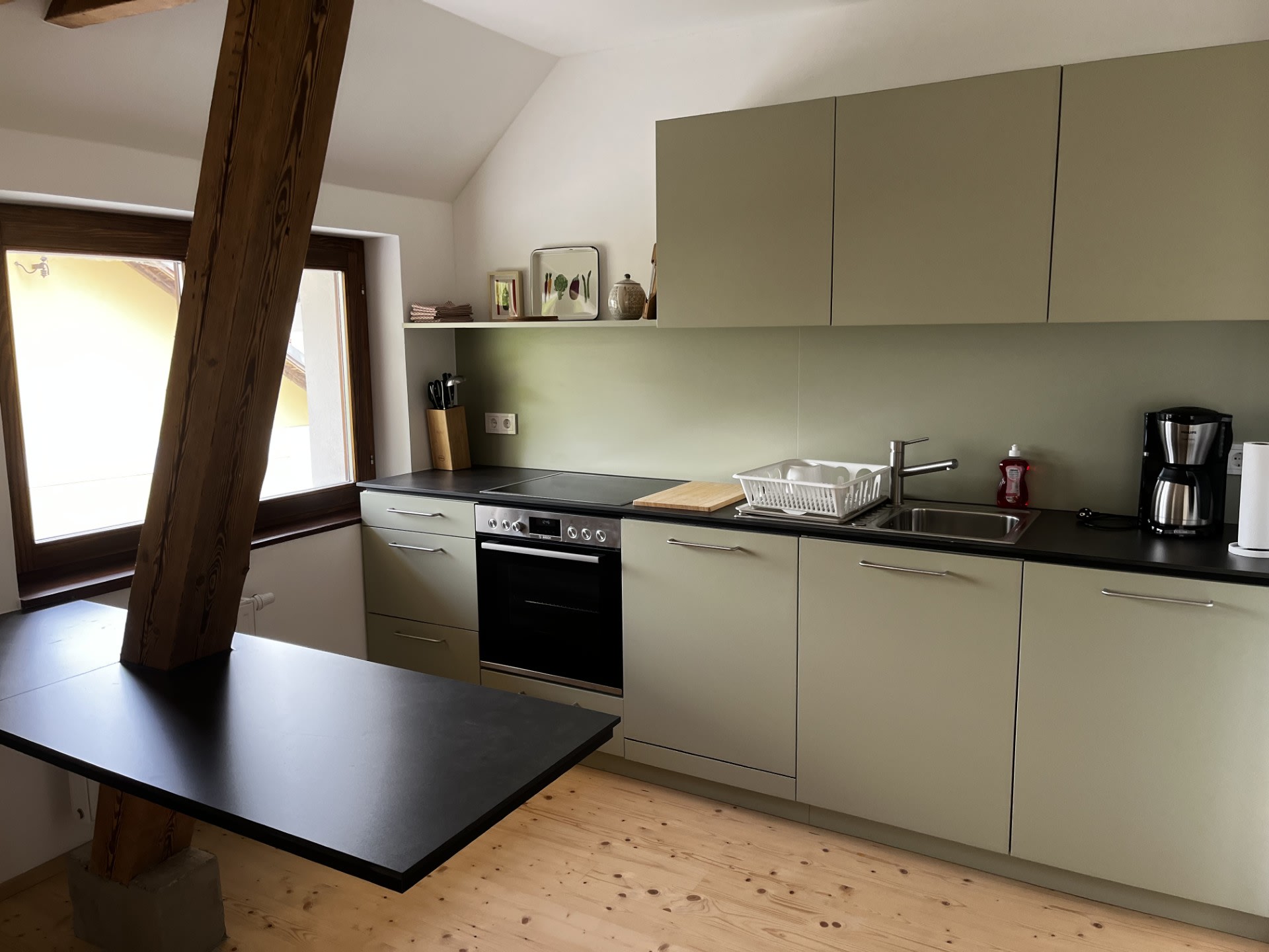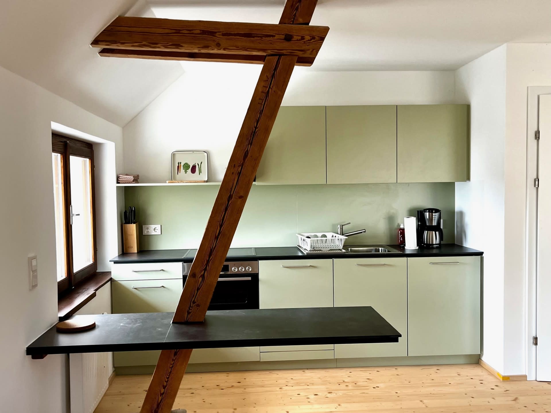 (alter Schüttboden) – ca. 50 m², 1 OG, 2 Betten, 1 Zimmer, Wohnküche, Dusche/WC, Waschmaschine