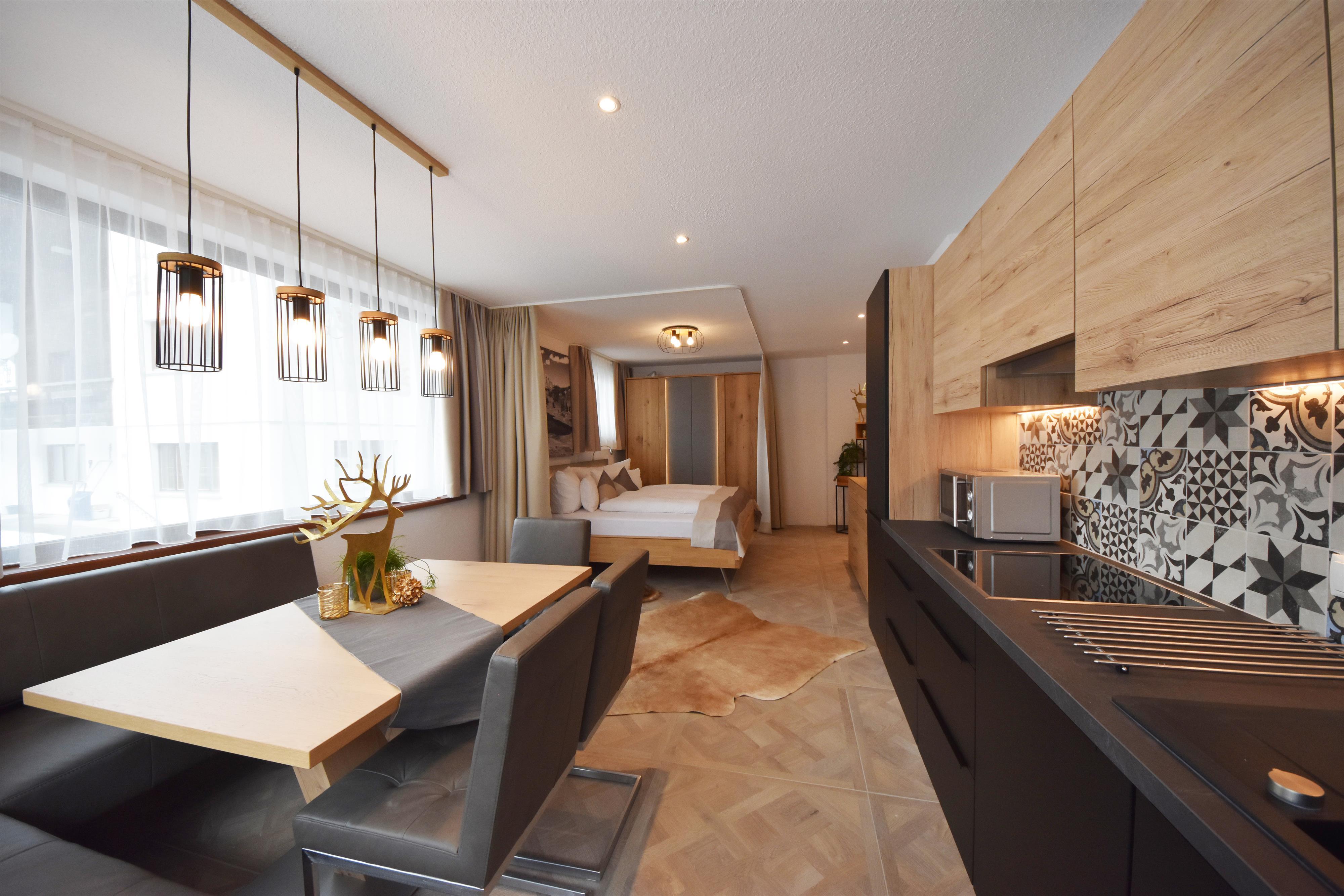 Drei exklusive, komplett neu gestaltete Appartements, unterschiedlicher Größe, bieten Ihnen in Klösterle am Arlberg, ab Dezember 2021, die perfekte Unterkunft für Ihren Urlaub. Die K-Appartements finden Sie direkt im Ortskern der wunderschönen Gemeinde Klösterle am Arlberg. Der Gratisskibus (gleich neben der Haustüre), brint Sie in nur 10 Minuten zum Skigebiet Arlberg und 5 Minuten ins Skigebiet Sonnenkopf. Ein gut ausgestatteter Skikeller und Fahrradabstellraum mit E-Bike-Ladestation offerieren genügend Platz für Ihre Ausrüstung. Die massive Wildeiche der Möbel in den Zimmern, verleiht den Appartements einen natürlichen Charakter und ureigenen Charme. Mit den passenden Accessoires erleben Sie ein angehmes Raumklima. Auch die Wohnküchen punkten mit ihrer stilvollen Einrichtung. Geldautomat, Bäckerei und Lebensmittelmarkt sind nur ca. 300 m entfernt.