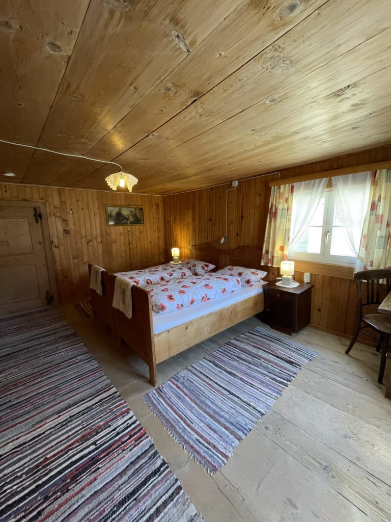 Unser Doppelzimmer ist mit traditionellen Holzmöbeln eingerichtet, welche die typische Wälder Gemütlichkeit ausmachen und einladen ins „Älpler-Leben“ einzutauchen.