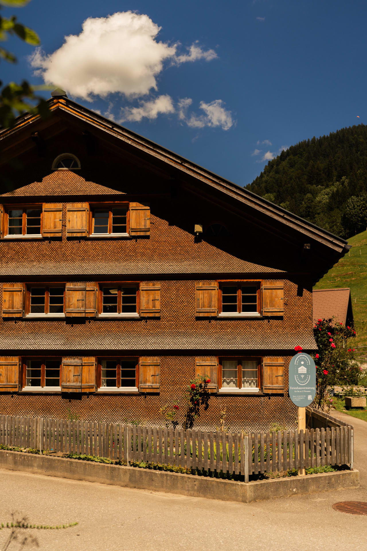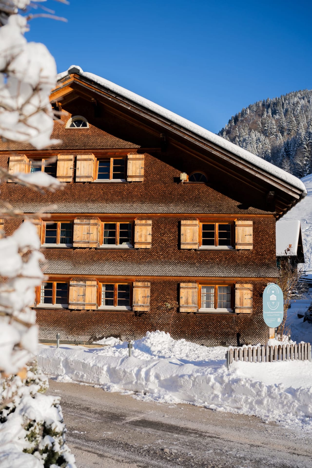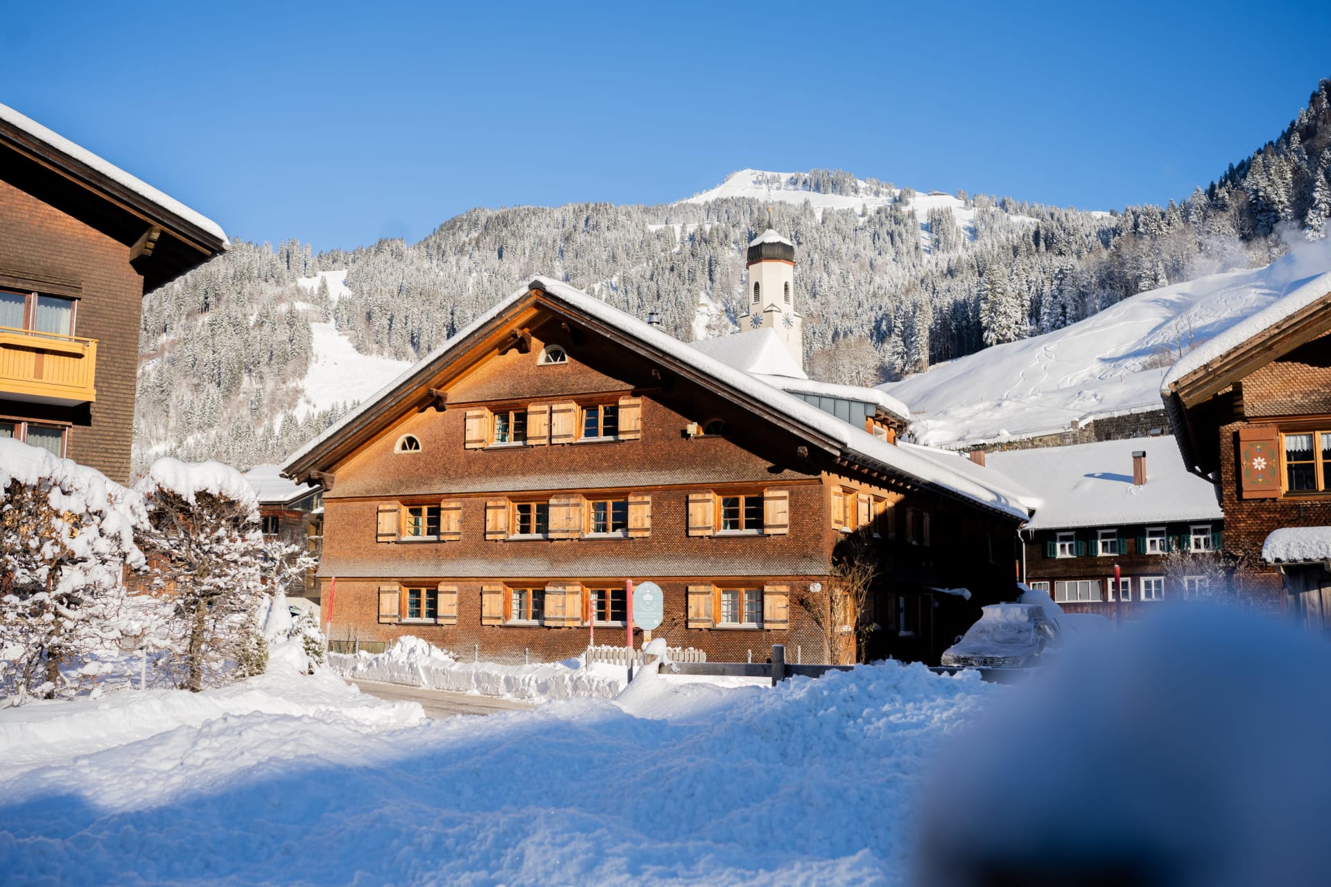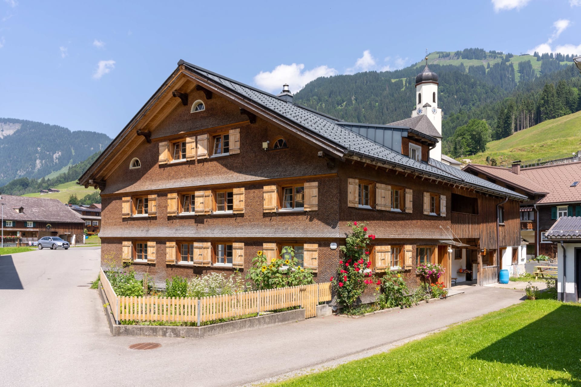 Unser Ferienhaus mit seinen 252m² Wohnfläche ist über 200 Jahre alt und das ehemalige Gemeindehaus in Schoppernau. Es befindet sich abseits der Straße, mitten im Dorf und ca. 80m vom Bauernhof entfernt. Die Zimmer befinden sich im ersten und zweiten Stock des Hauses. Für Raucher gibt es eine groszügige Veranda.