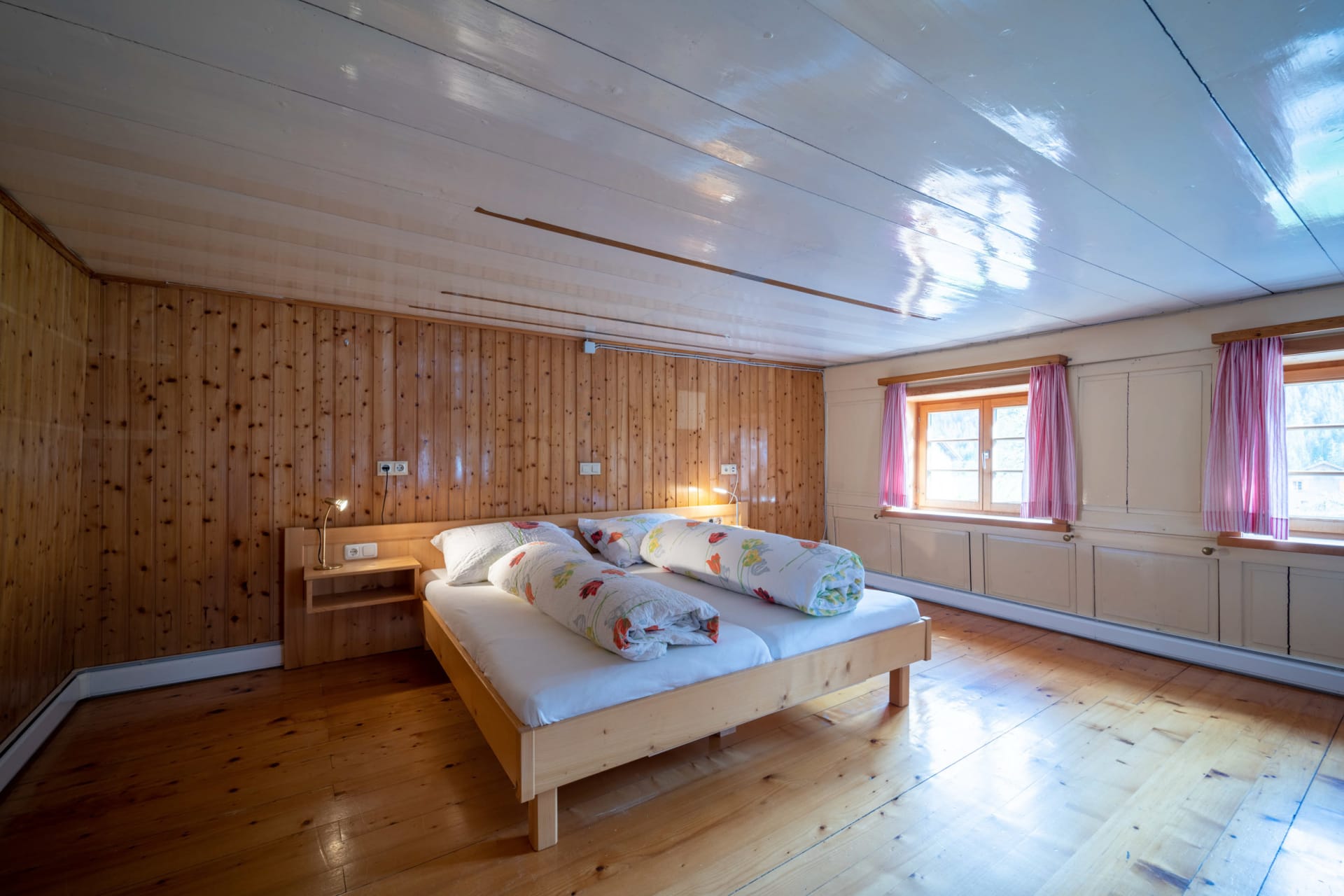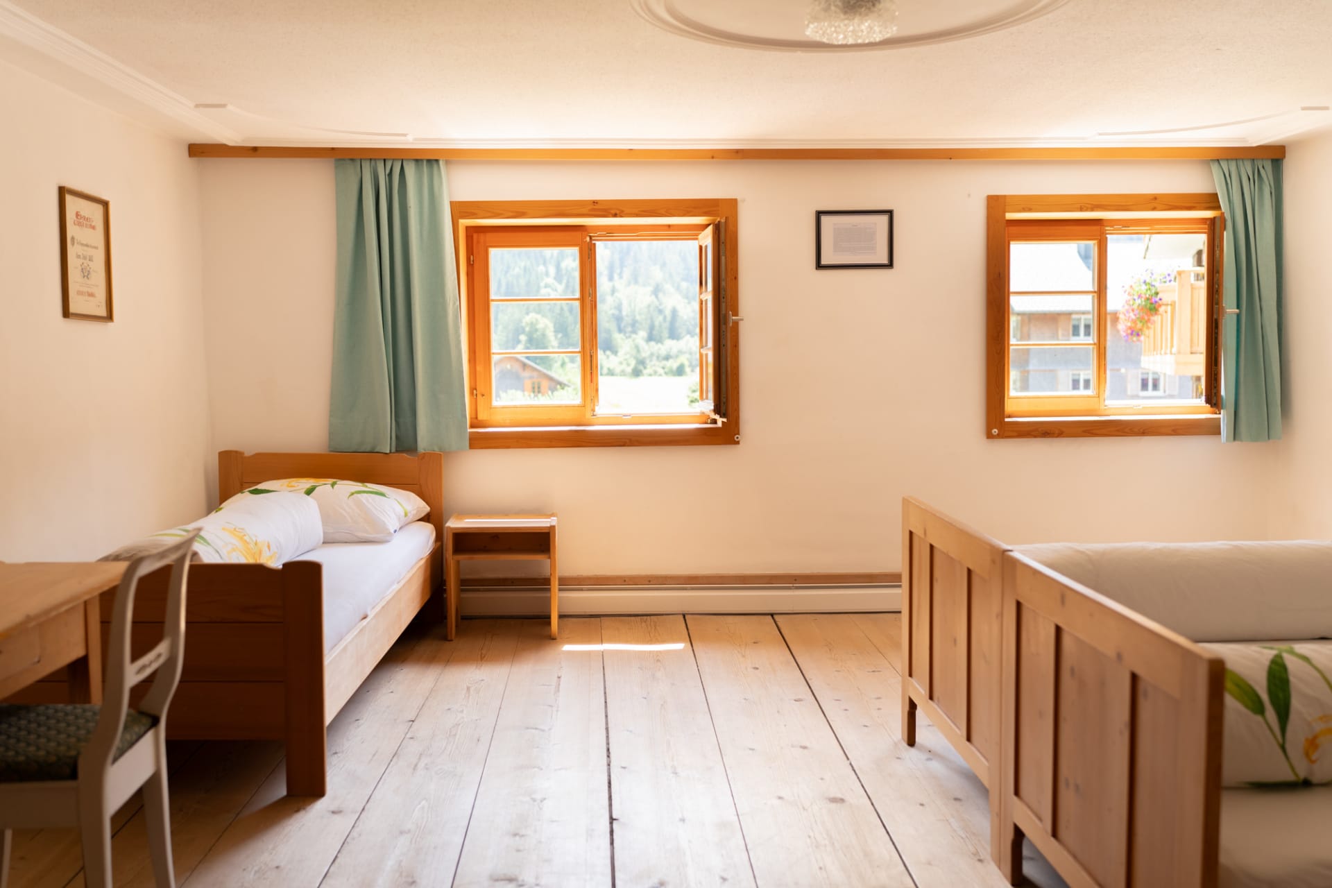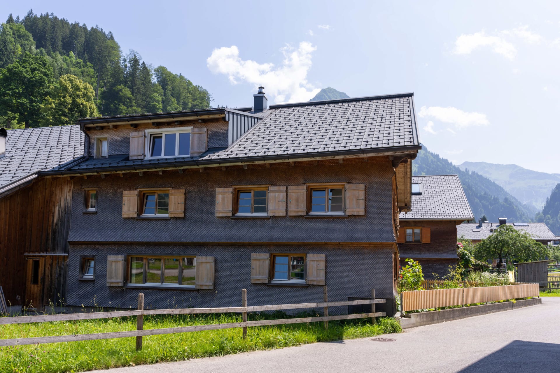 Unser Ferienhaus mit seinen 252m² Wohnfläche ist über 200 Jahre alt und das ehemalige Gemeindehaus in Schoppernau. Es befindet sich abseits der Straße, mitten im Dorf und ca. 80m vom Bauernhof entfernt. Die Zimmer befinden sich im ersten und zweiten Stock des Hauses. Für Raucher gibt es eine groszügige Veranda.