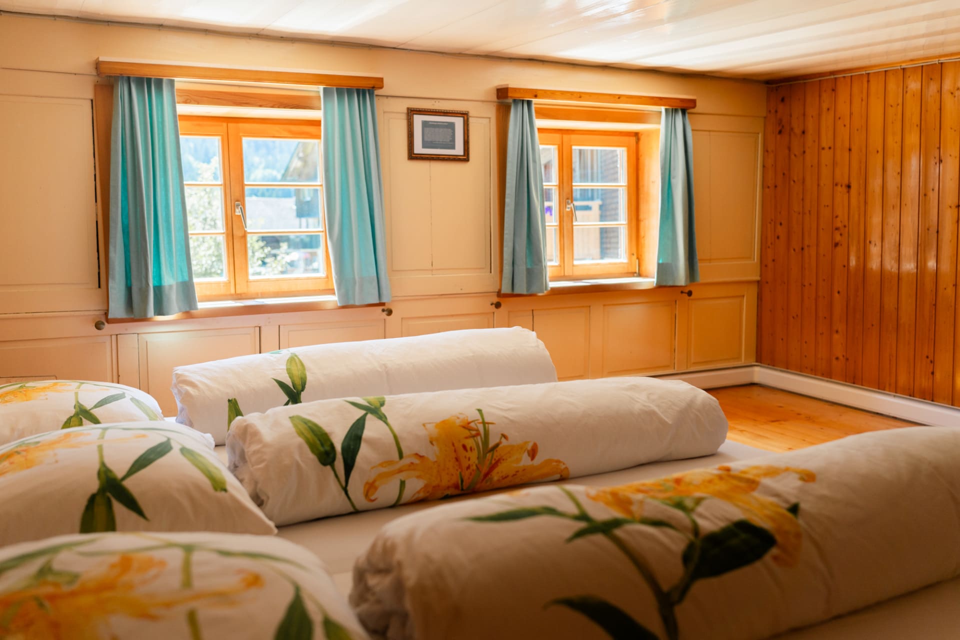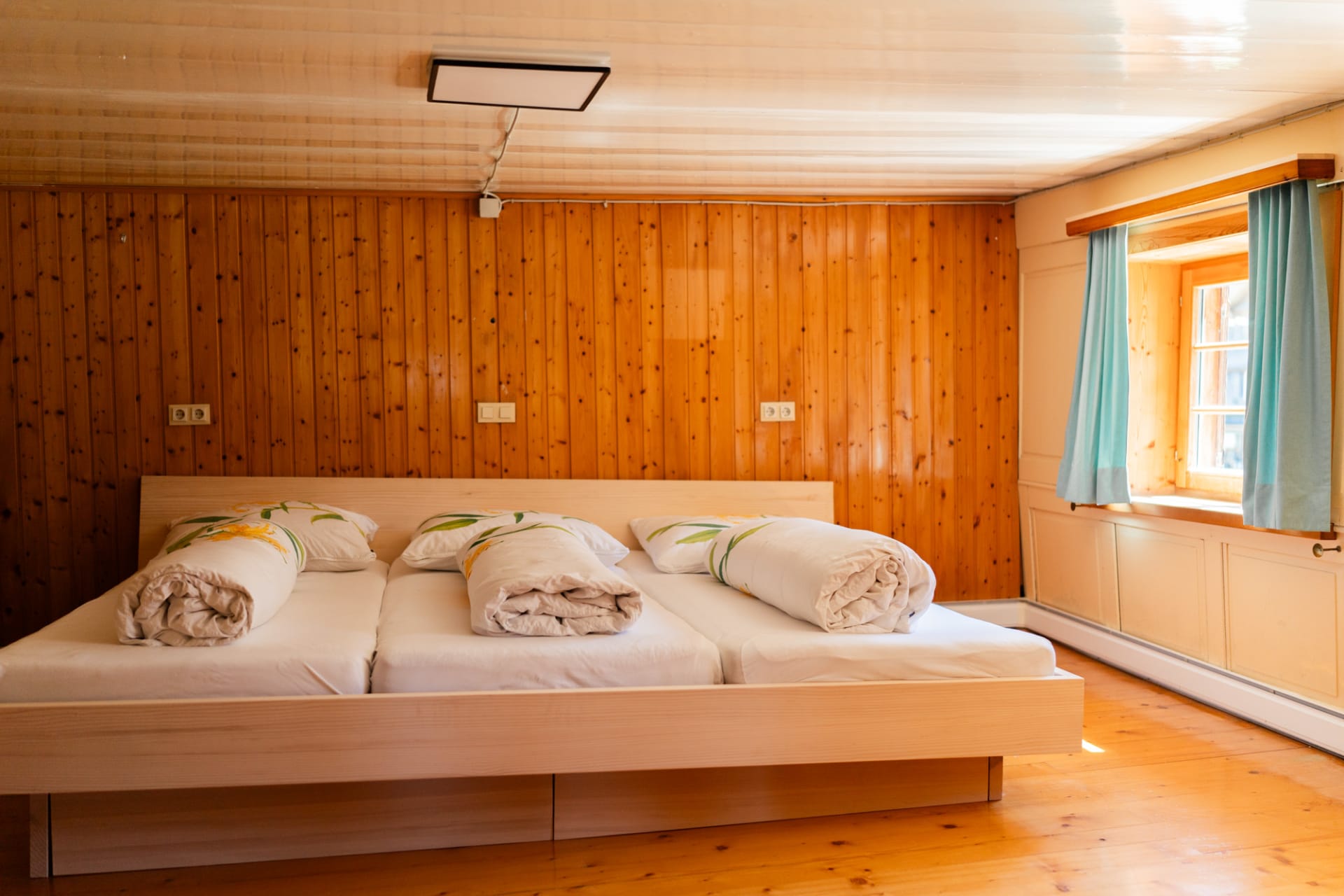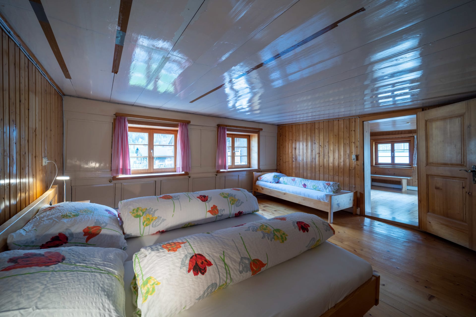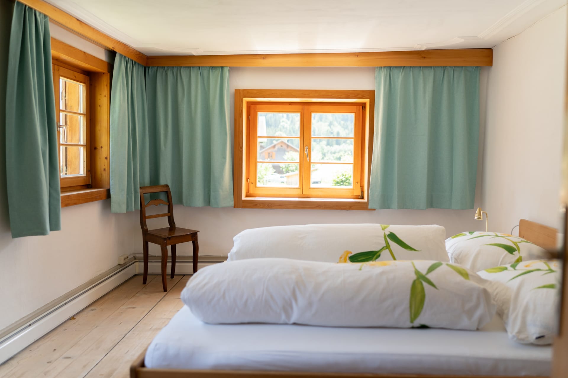 Unser Ferienhaus mit seinen 252m² Wohnfläche ist über 200 Jahre alt und das ehemalige Gemeindehaus in Schoppernau. Es befindet sich abseits der Straße, mitten im Dorf und ca. 80m vom Bauernhof entfernt. Die Zimmer befinden sich im ersten und zweiten Stock des Hauses. Für Raucher gibt es eine groszügige Veranda.