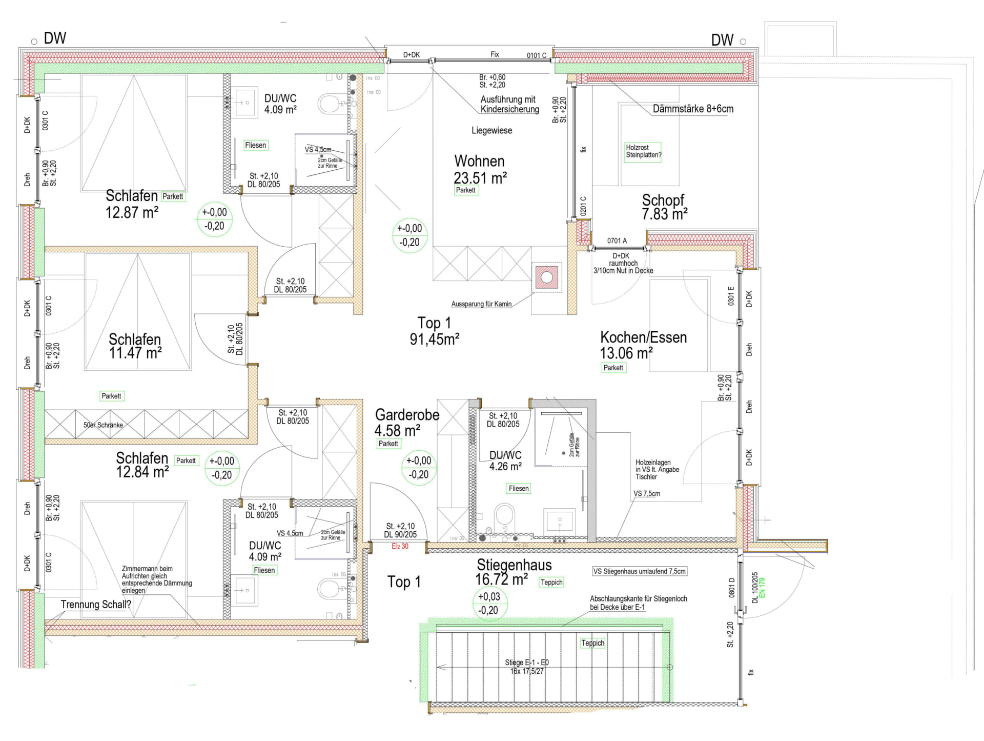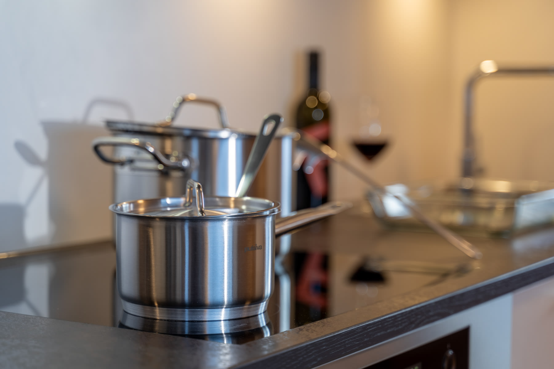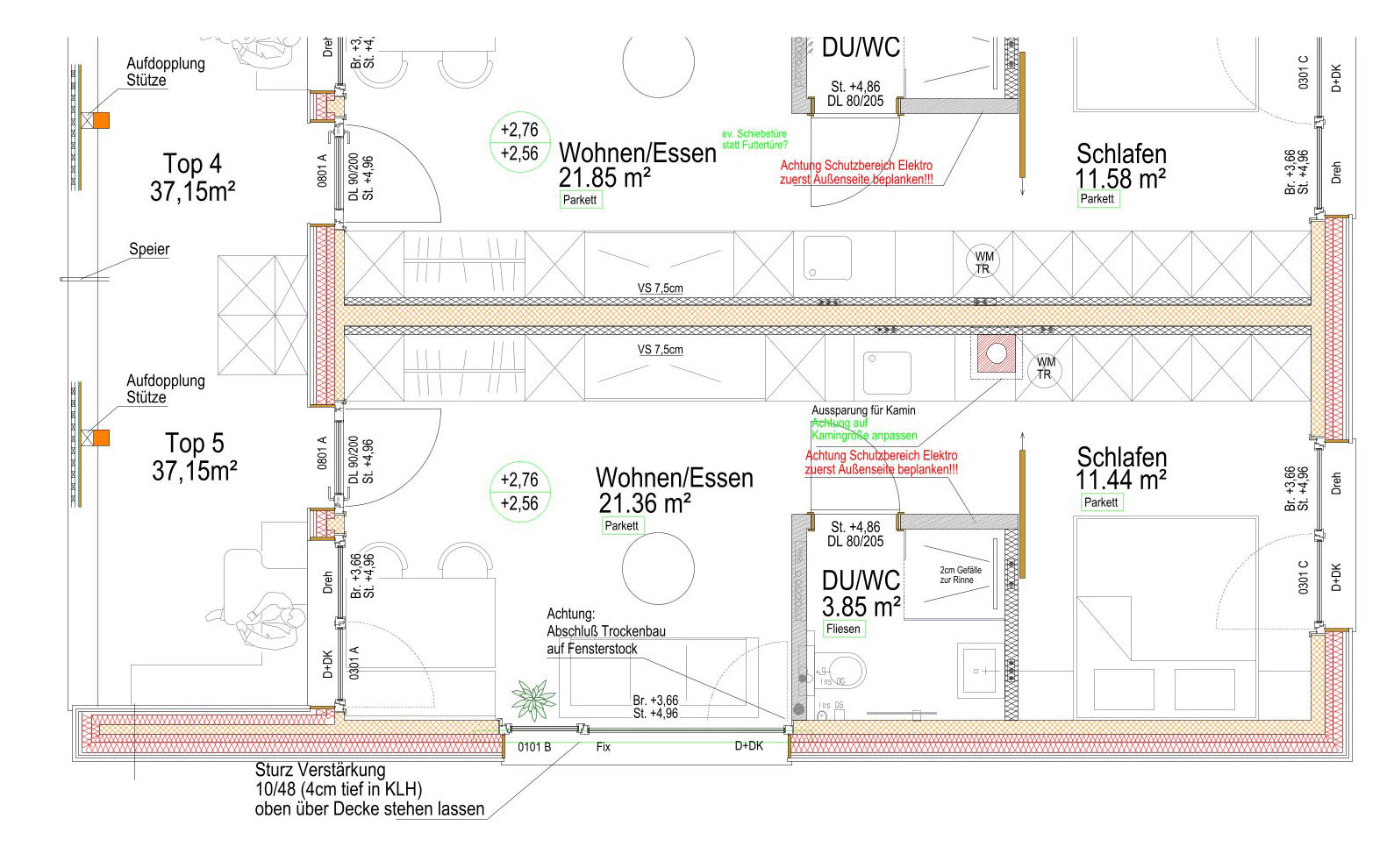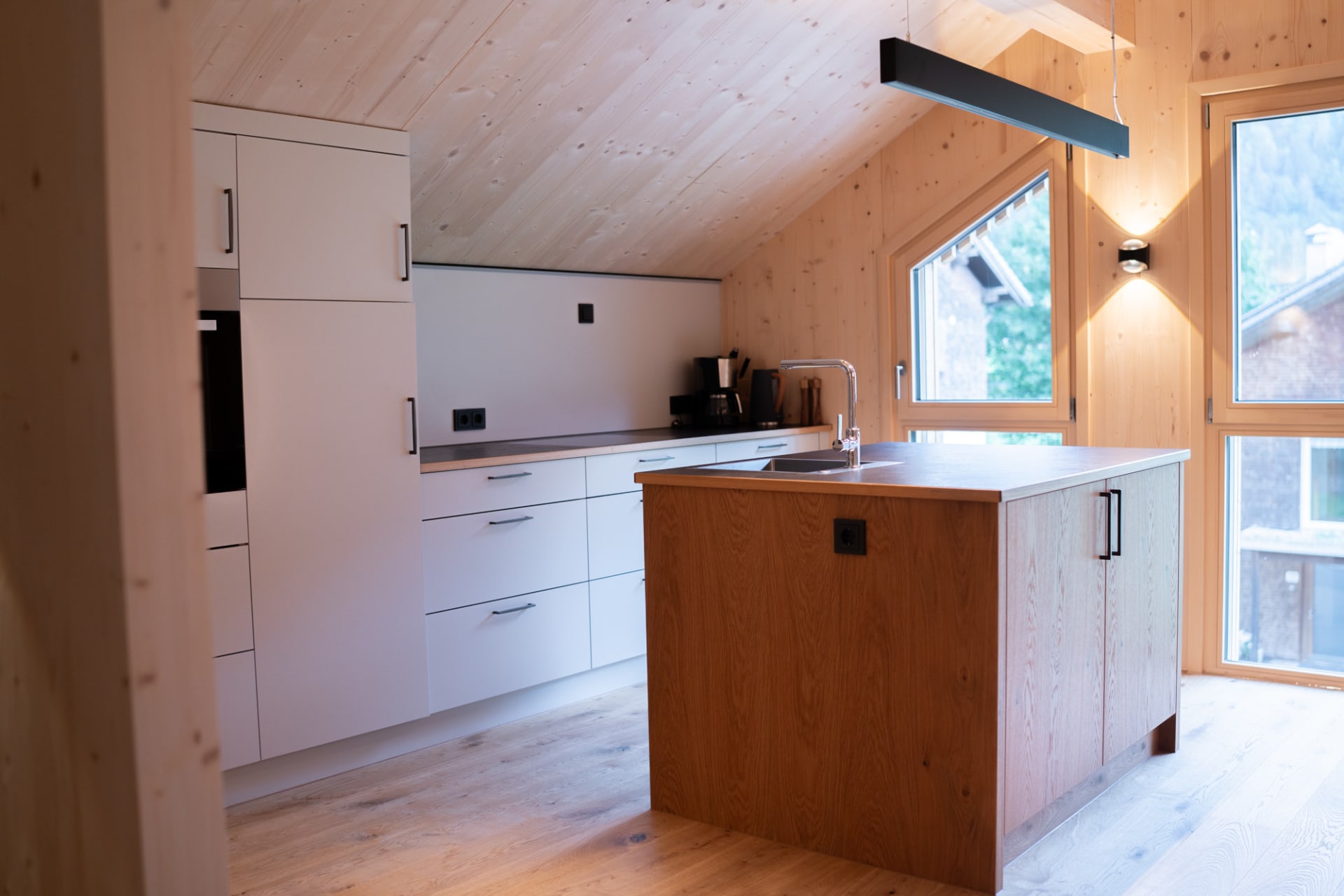 Die Appartements 406/2 bis 406/5 sind mit 37,15 m² gleich groß und bieten Platz für maximal 4 Personen wobei für 2 Personen eine Ausziehcouch besteht. Sie befinden sich im ersten Stock und sind mit der Terrasse 8 m² nach Westen ausgerichtet auf welcher sich auch der Zugang befindet. Schlafzimmer und Duche/WC sind separat. Die moderne Wohnküche ist komplett ausgestattet.