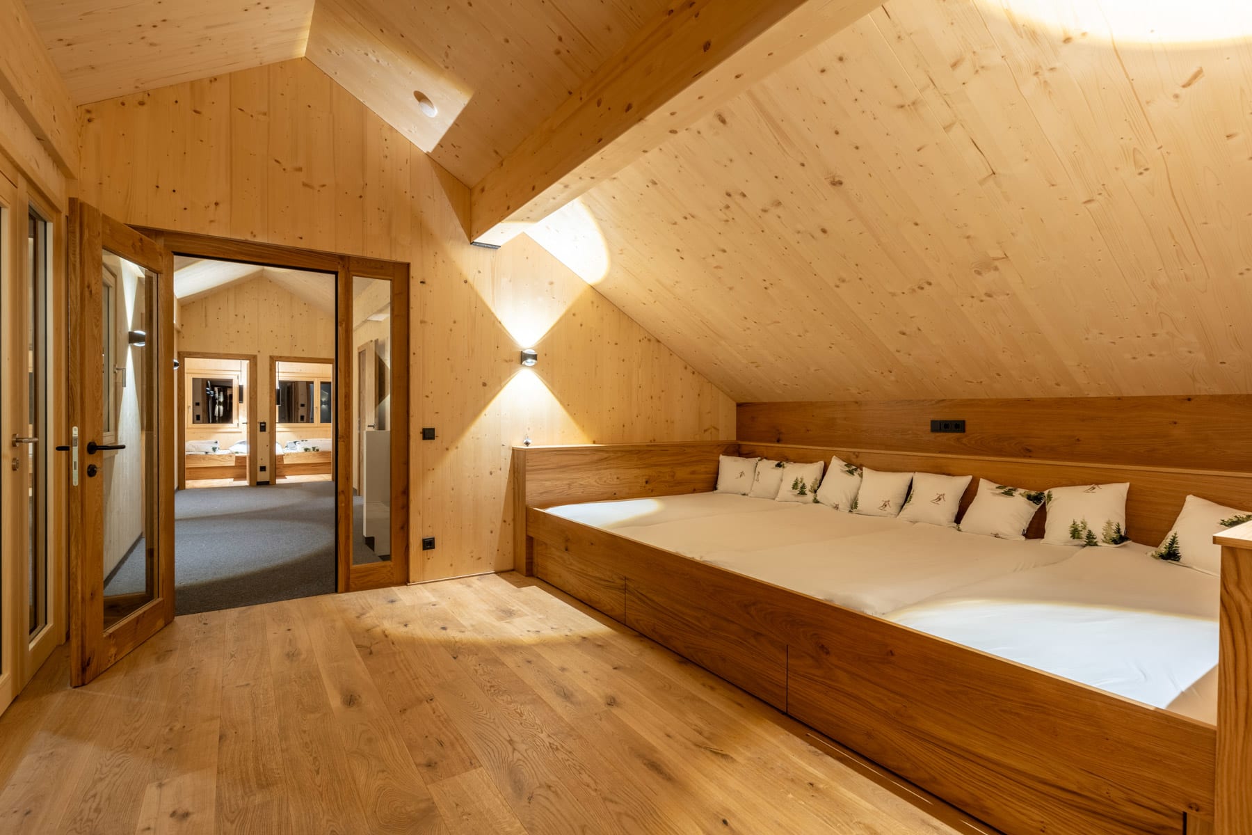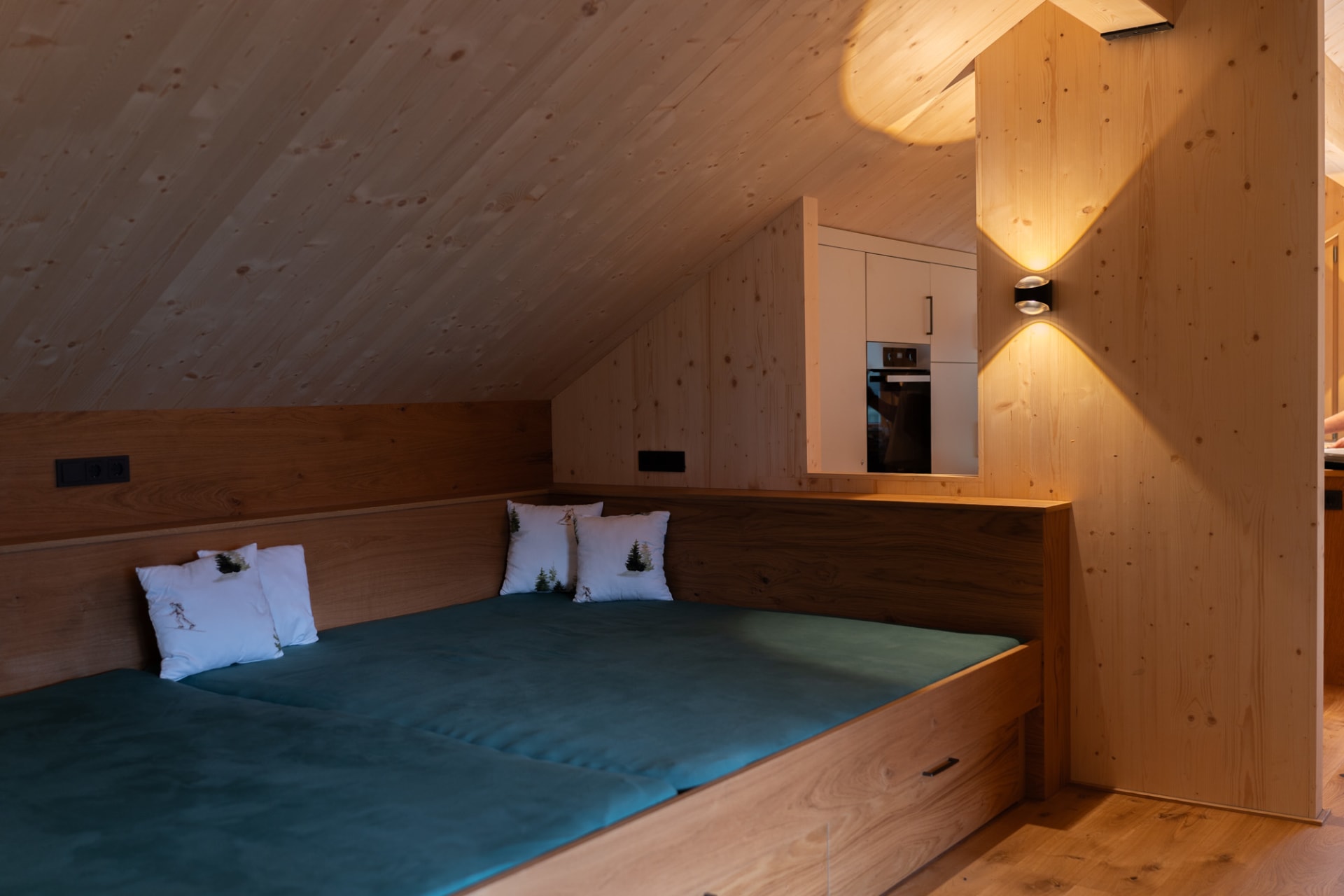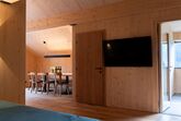 Das Appartemet 406/6 mit seinen 125,22 m² Fläche ist einzigartig, hell, gemütlich und bietet Platz für bis zu 12 Personen. Es befindet sich im Dachgeschoss mit drei Schlafzimmern und drei separaten Duschen/WC. Eine Wohnküche mit kompletter Ausstattung sowie ein großzügig dimensionierter Wohnraum und eine Terrasse steht zur Verfügung.