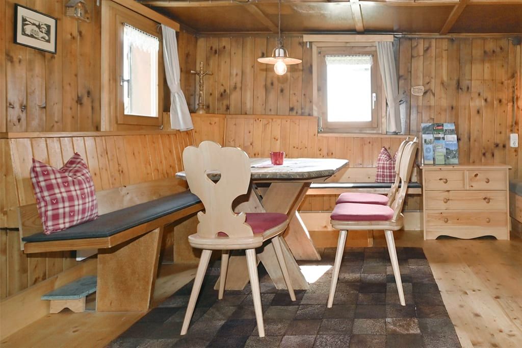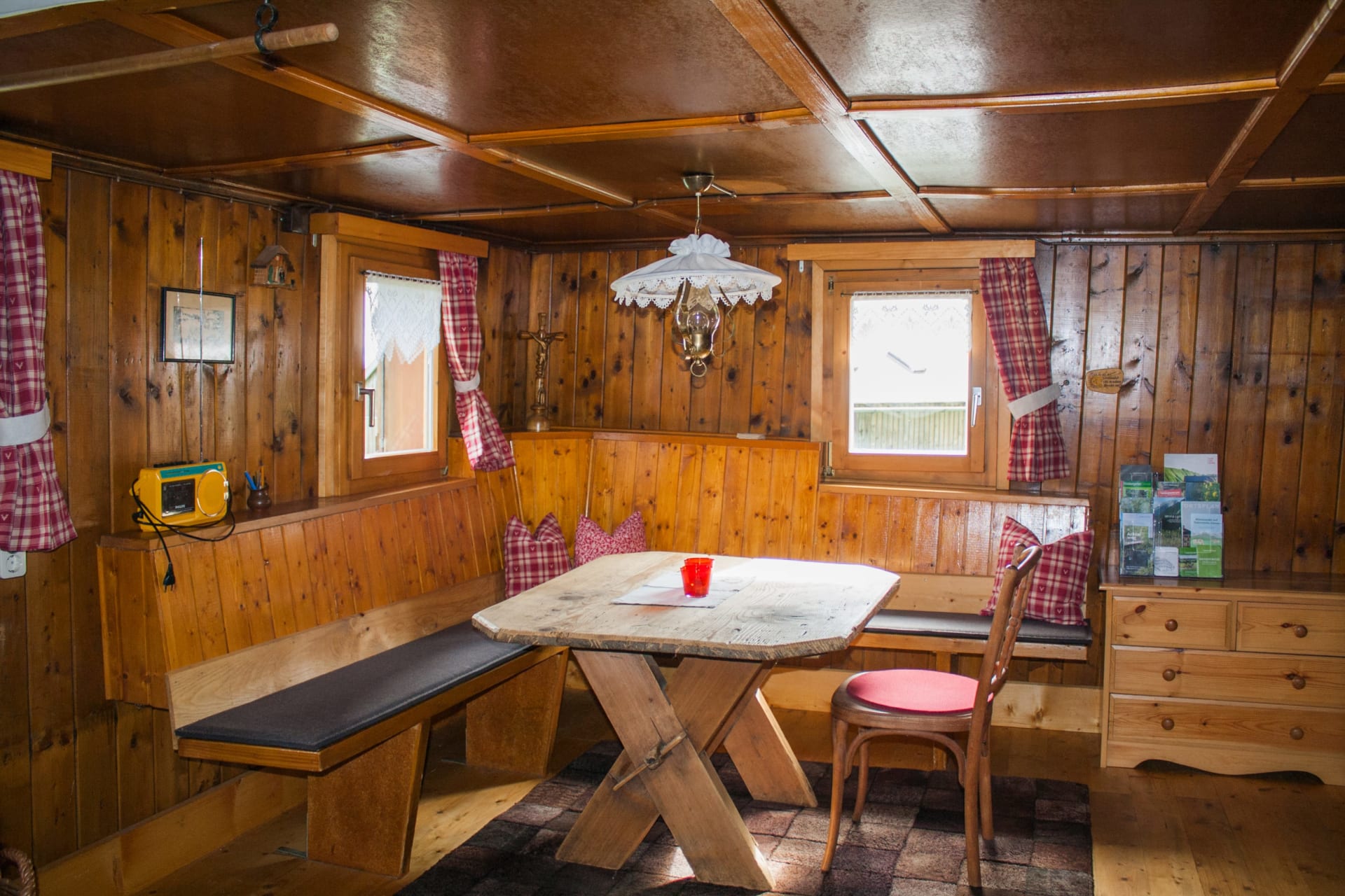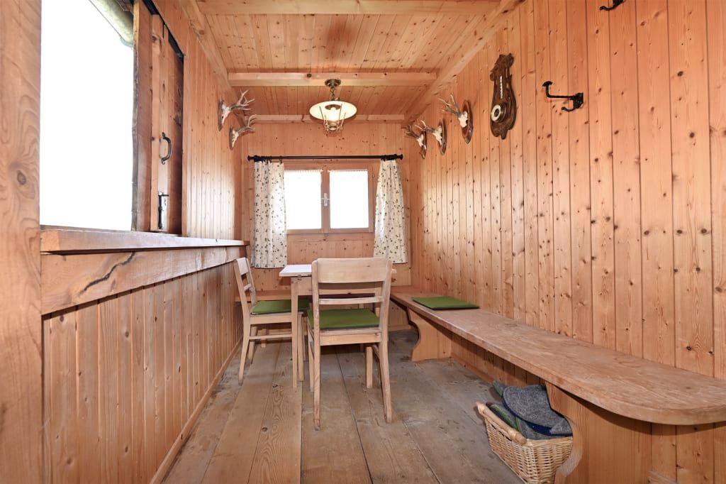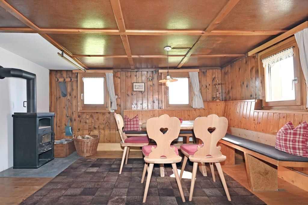 Knarrende Dielenböden, niedrige Raumhöhen, warme Holzwände und ein knisternder Schwedenofen machen die Stube zum perfekten Rückzugsort nach einem erlebnisreichen Tag in den Bergen.
