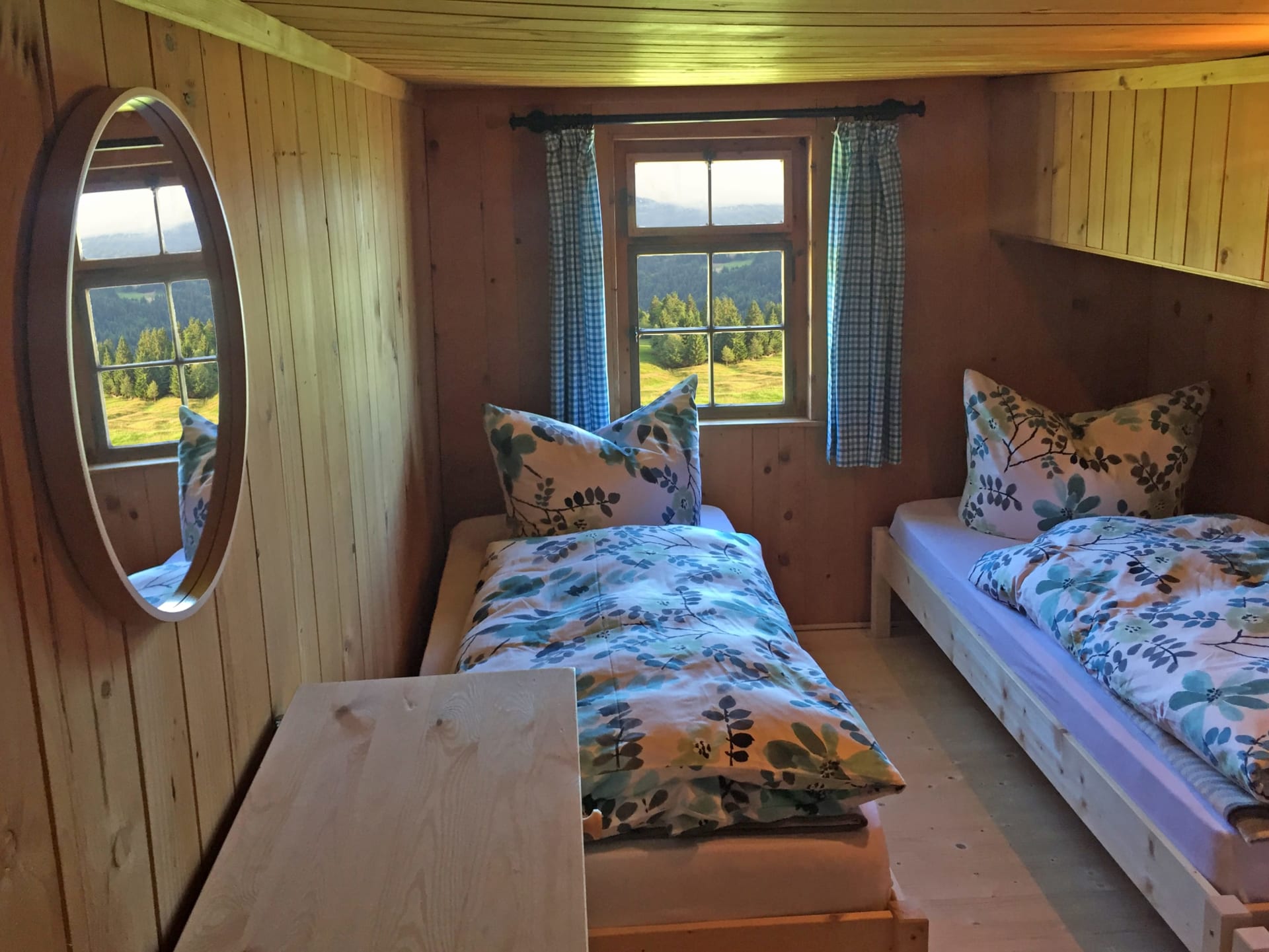 Genießen Sie Ihren Urlaub in unserer urig gemütlichen Vorsäßhütte (Almhütte) mit herrlichem Weitblick auf die Berge und die wunderschöne Landschaft des Bregenzerwaldes. Die Hütte liegt direkt im Wandergebiet auf ca. 1150 m Seehöhe und ist über eine ca. 4 km lange, einspurige Bergstraße von Schwarzenberg aus erreichbar. Auf zwei Ebenen befinden sich / eine gemütliche Stube mit Schwedenofen und Schlafkanapee / eine voll ausgestattete Küche / ein Schlafzimmer mit Doppelbett / ein Schlafzimmer mit drei Einzelbetten / ein Bad mit Dusche und WC / ein Schopf. Grill und Gartenmöbel für draußen sind ebenfalls vorhanden.