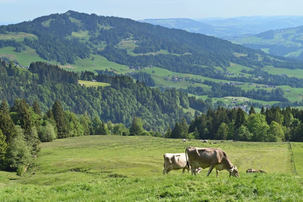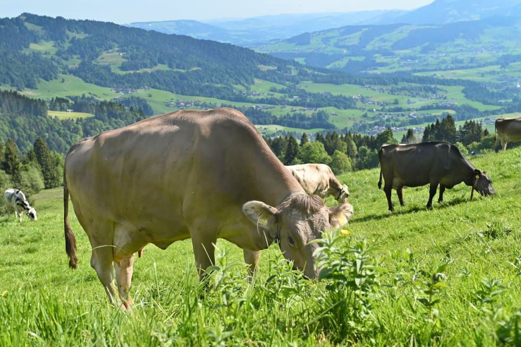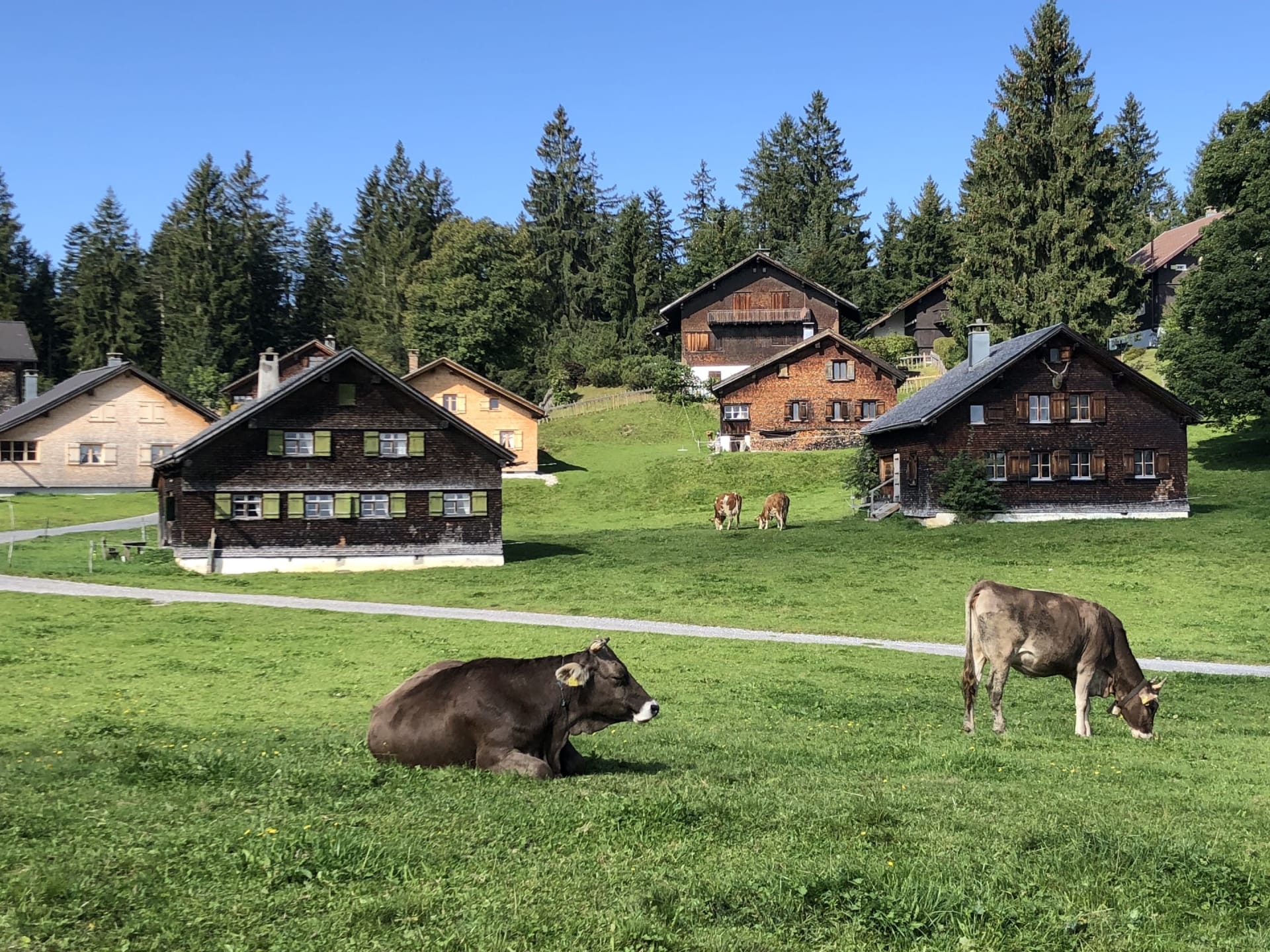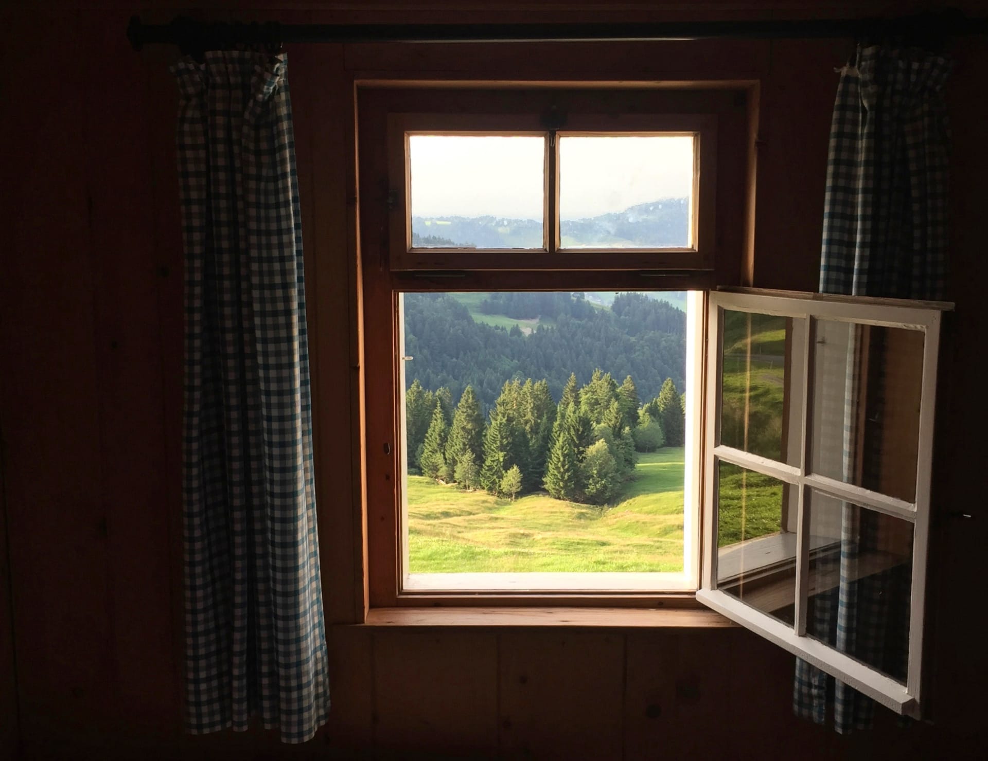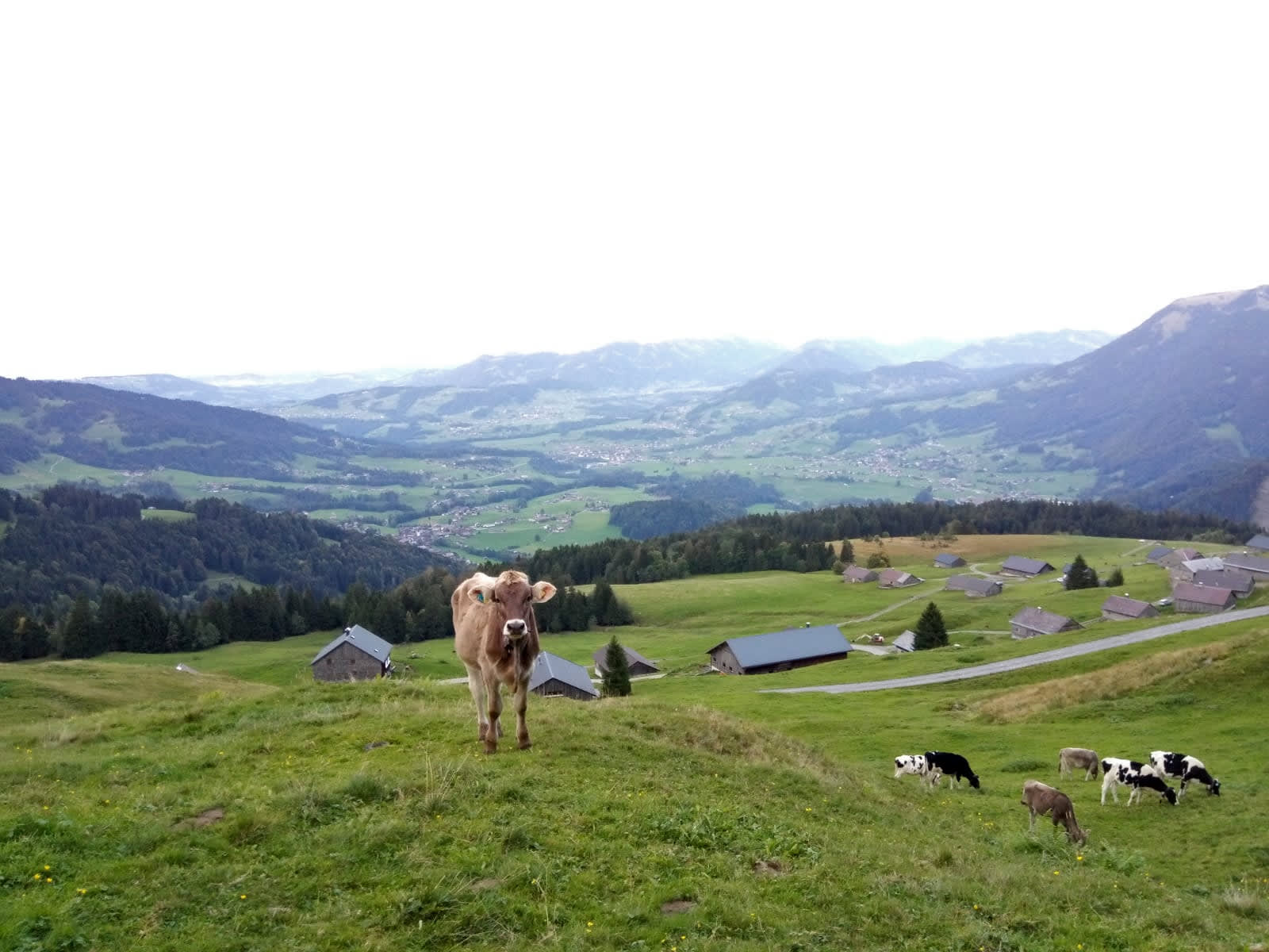 Genießen Sie die Ruhe und Weite der umliegenden Wälder, Wiesen und Gipfel – mit einer traumhaften Aussicht auf die Bergwelt des Bregenzerwaldes.