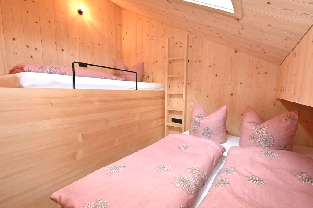 Eine dritte Etage mit Aufenthaltsraum, Schlafzimmer mit Doppelbett und Hochbett und Badezimmer steht zusätzlich zur Verfügung.
