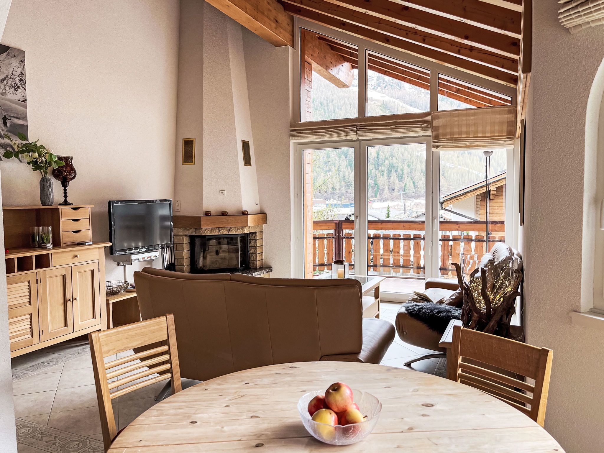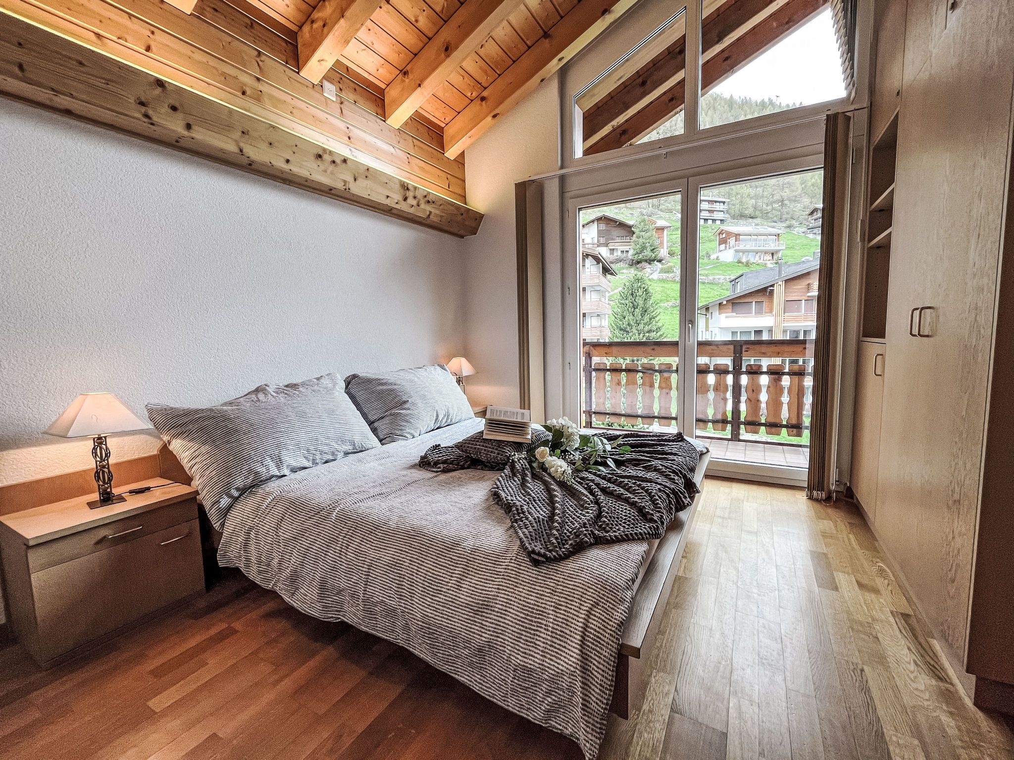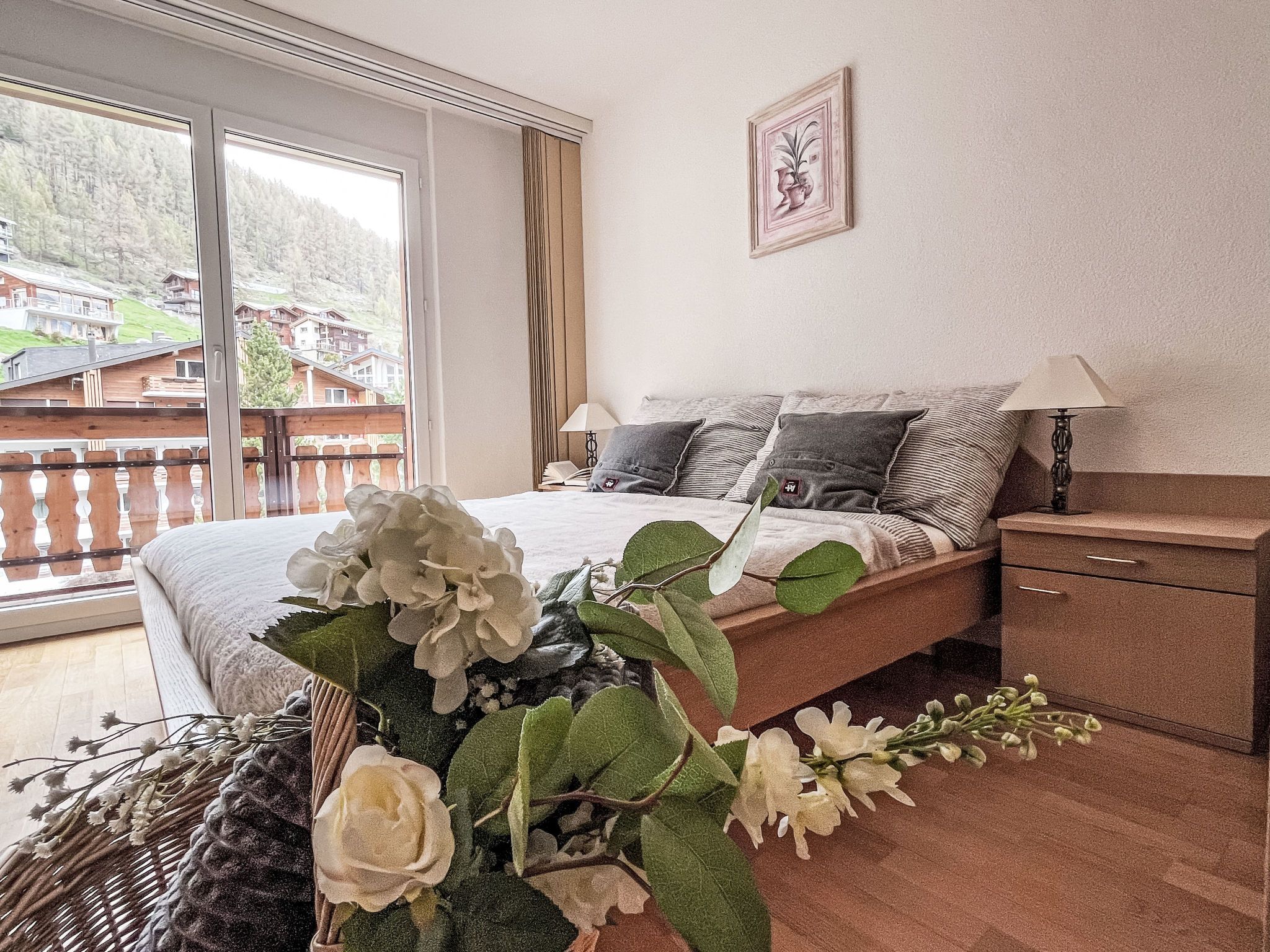 Apartment Allalin, 3-Zimmer-Wohnung 85 m2 im 3. Stock. Schön und geschmackvoll eingerichtet: Wohn-/Esszimmer mit Esstisch und Kabel-TV. Ausgang zum Balkon. 2 Doppelzimmer, jedes Zimmer mit 1 Doppelbett (160 cm, Länge 200 cm). Offene Küche (Backofen, Geschirrspüler, 4 Glaskeramikplatten, Toaster, Wasserkocher, elektrische Kaffeemaschine). Bad/WC, Dusche/WC. Balkon. Balkonmöbel. Sicht auf die Berge. Zur Verfügung: Haartrockner. Internet (Wireless LAN, gratis). Bitte beachten: Nichtraucher-Unterkunft.