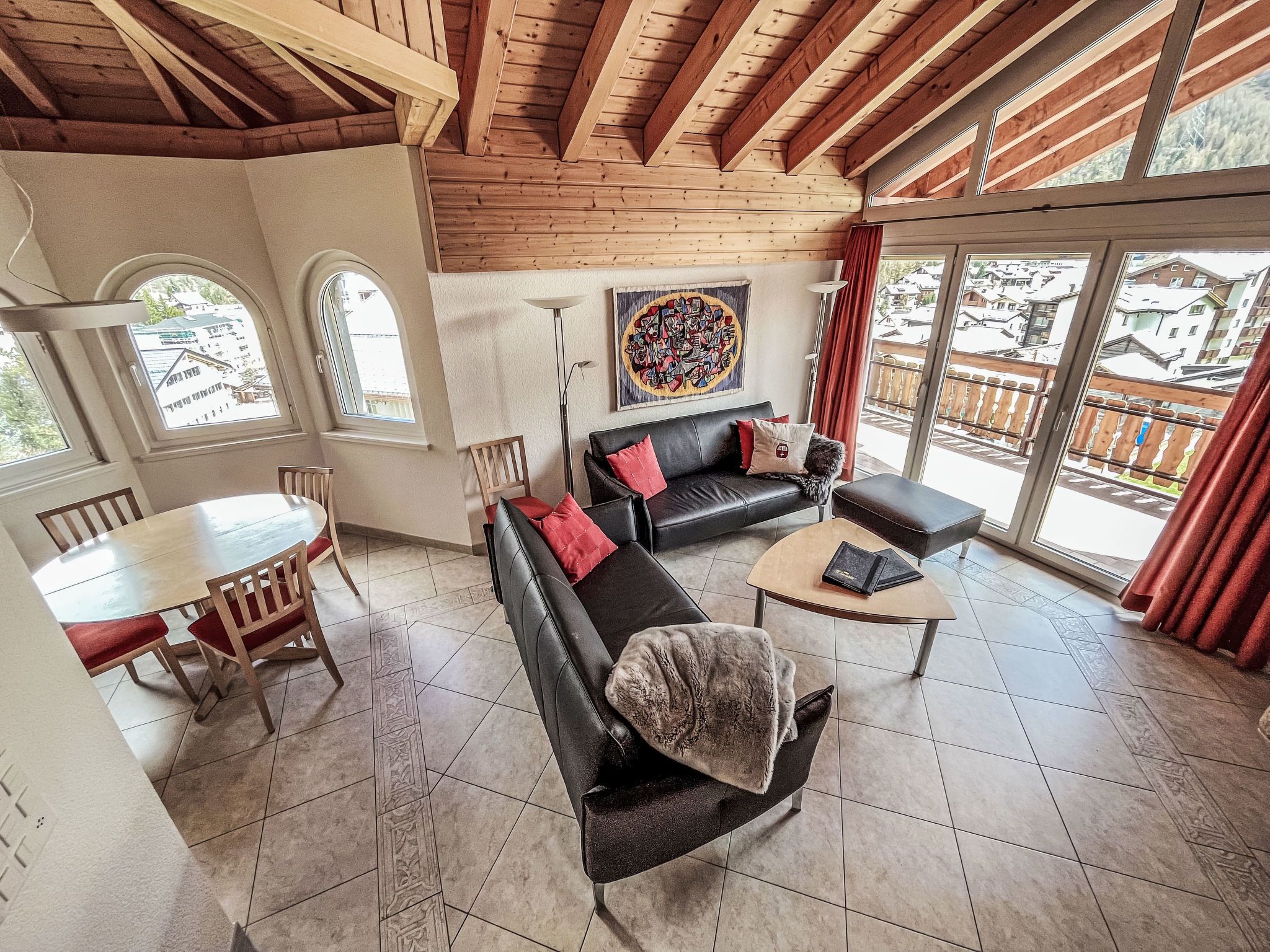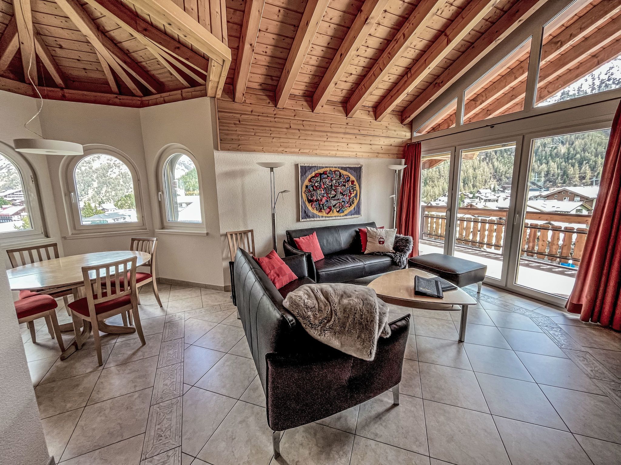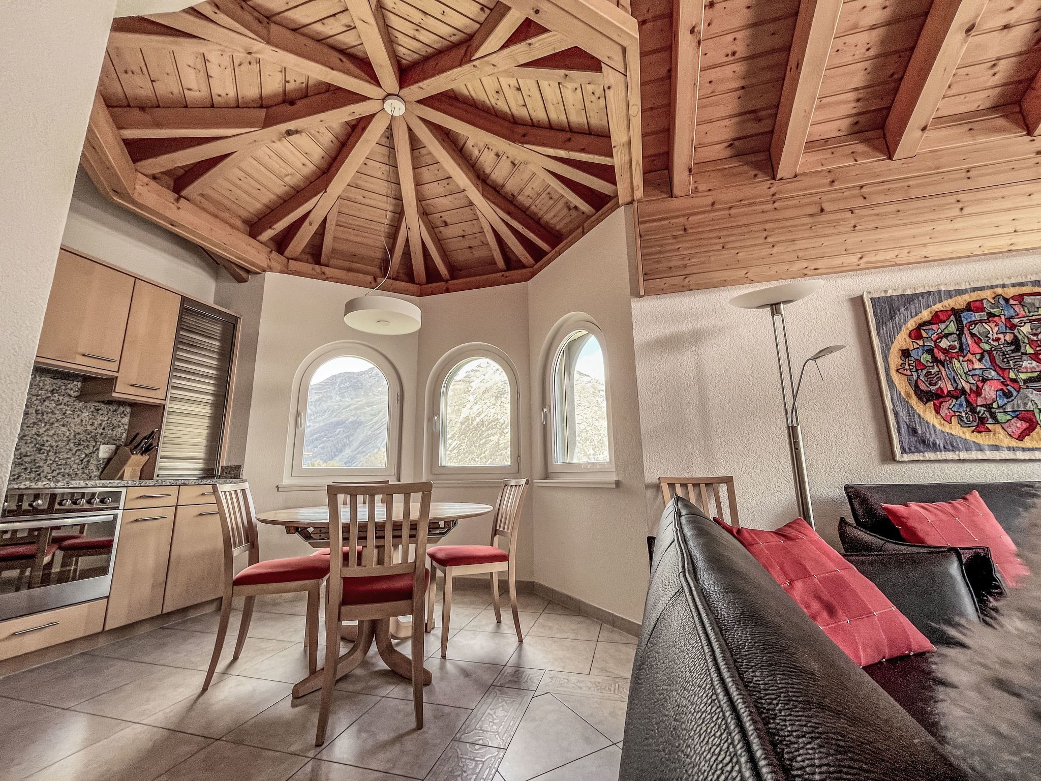 Apartment König der Berge, 4-Zimmer-Wohnung 100 m2 im 3. Stock. Hell, schön und gemütlich eingerichtet: Wohn-/Esszimmer mit Schwedenofen und Kabel-TV. Ausgang zum Balkon. 3 Doppelzimmer, jedes Zimmer mit 1 Doppelbett (160 cm, Länge 200 cm). Offene Küche (Backofen, Geschirrspüler, 4 Glaskeramikplatten, Toaster, Wasserkocher, Tiefkühler, elektrische Kaffeemaschine). Bad/WC, Dusche/WC, sep. WC. Balkon. Balkonmöbel. Sicht auf die Berge. Zur Verfügung: Haartrockner. Internet (Wireless LAN, gratis). Bitte beachten: Nichtraucher-Unterkunft.