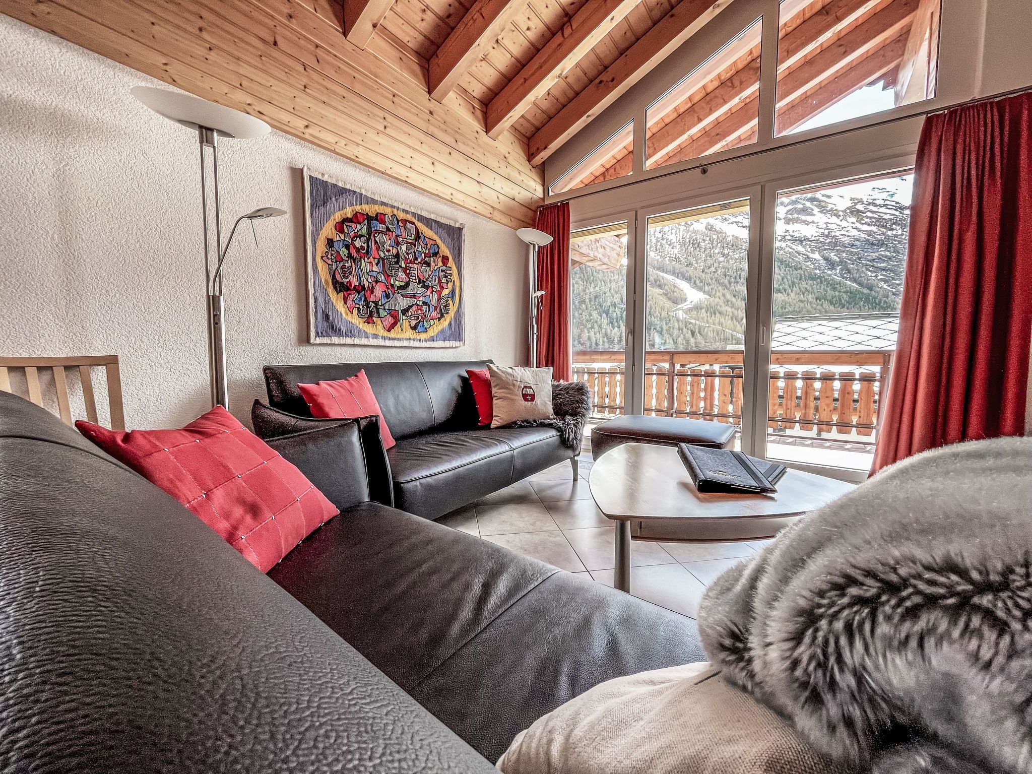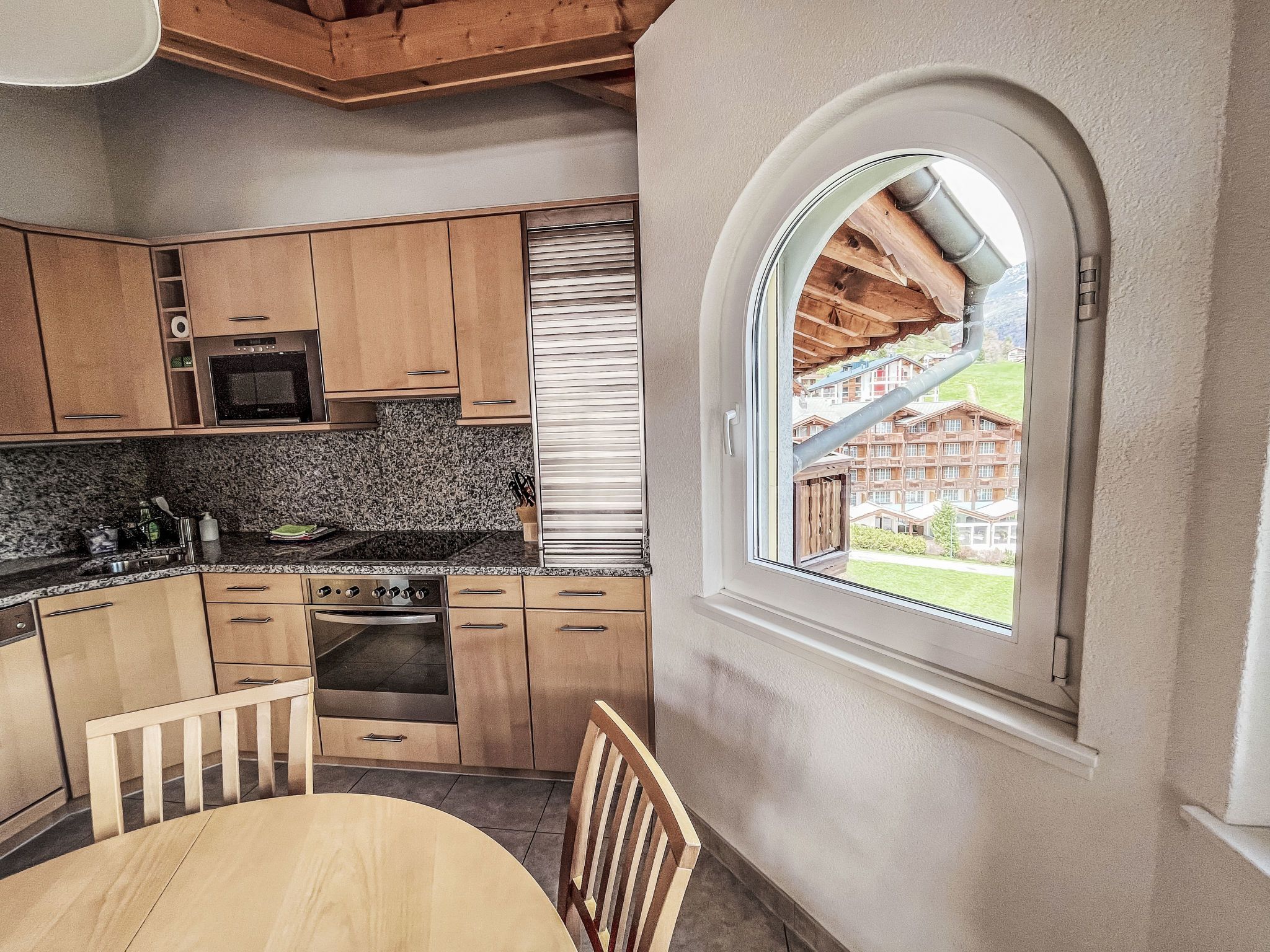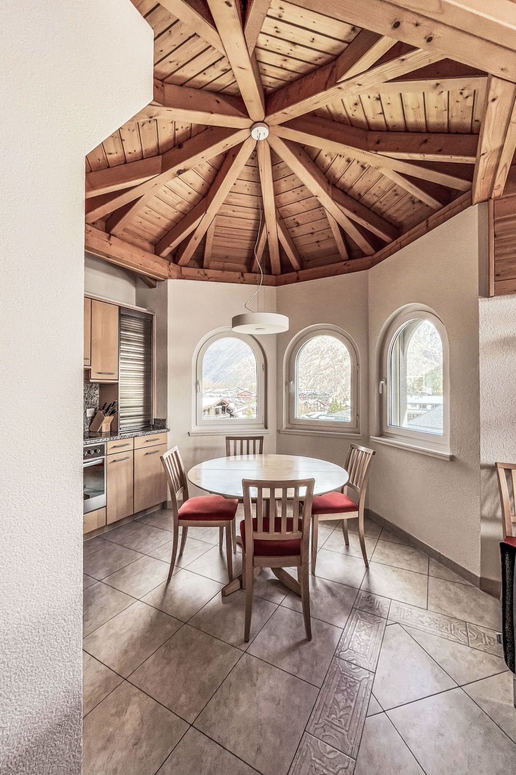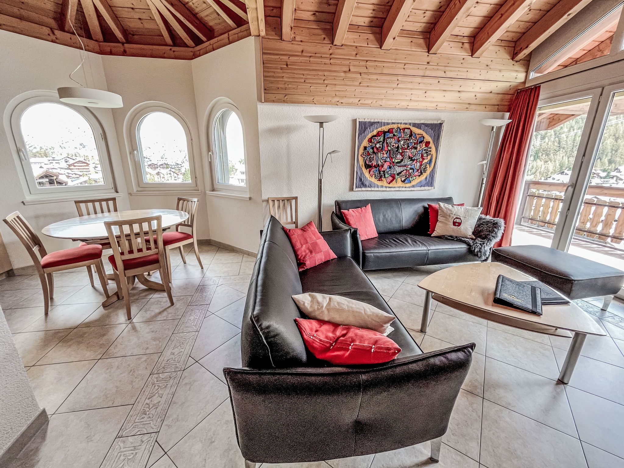 Apartment König der Berge, 4-Zimmer-Wohnung 100 m2 im 3. Stock. Hell, schön und gemütlich eingerichtet: Wohn-/Esszimmer mit Schwedenofen und Kabel-TV. Ausgang zum Balkon. 3 Doppelzimmer, jedes Zimmer mit 1 Doppelbett (160 cm, Länge 200 cm). Offene Küche (Backofen, Geschirrspüler, 4 Glaskeramikplatten, Toaster, Wasserkocher, Tiefkühler, elektrische Kaffeemaschine). Bad/WC, Dusche/WC, sep. WC. Balkon. Balkonmöbel. Sicht auf die Berge. Zur Verfügung: Haartrockner. Internet (Wireless LAN, gratis). Bitte beachten: Nichtraucher-Unterkunft.
