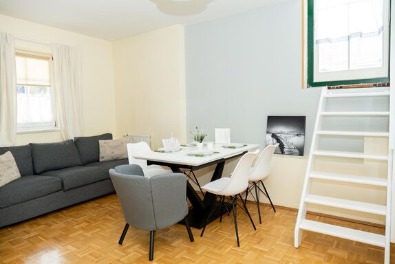 Die Lage der BergZeit Apartments ist perfekt für alle, die Natur lieben und dennoch eine gute Anbindung an die nähere Umgebung suchen. Für ski- und snowboardbegeisterte Gäste befindet sich die Stuhleckbahn (Talstation) in unmittelbarer Nähe (Gehzeit ca. 10 min). Die Unterkunft ist auch ein idealer Ausgangspunkt für viele weitere Freizeitaktivitäten in der Region. Gleich neben dem Apartmentshaus befindet sich ausserdem alles, was Sie im Alltag benötigen, wie z.B. Nah&Frisch Supermarkt, Fleischerei, Trafik. Weitere Informationen stellen wir den Gästen in unserer Willkommensbroschüre bereit.