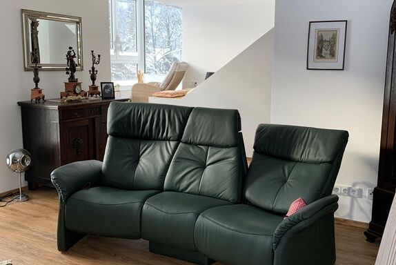 Das Wohnzimmer mit Vitrinen/Sideboards, TV Liegesessel, Kaminofen, Wintergarten